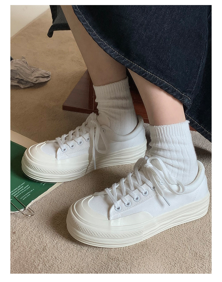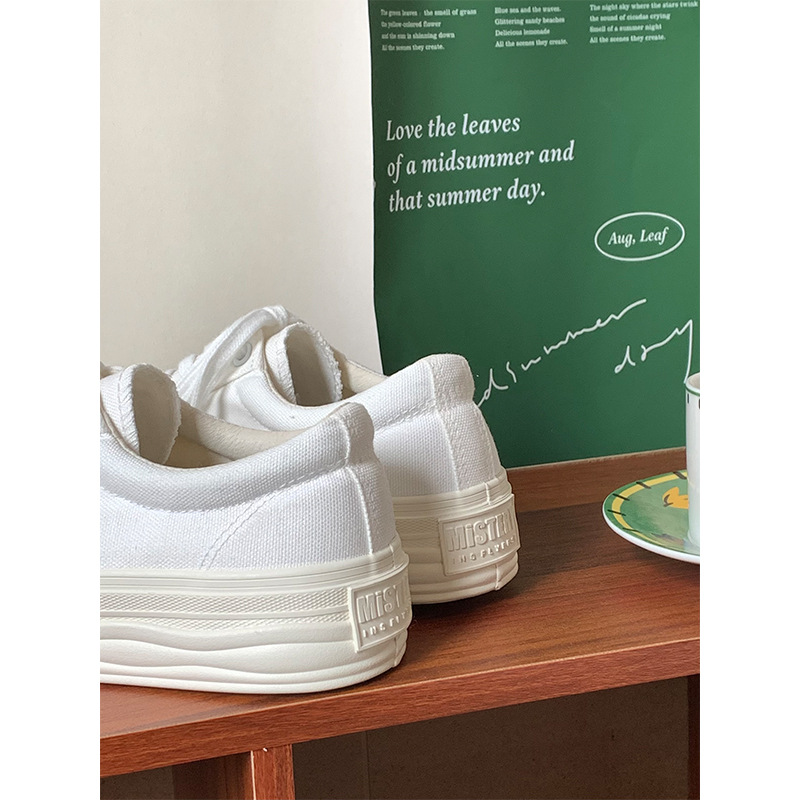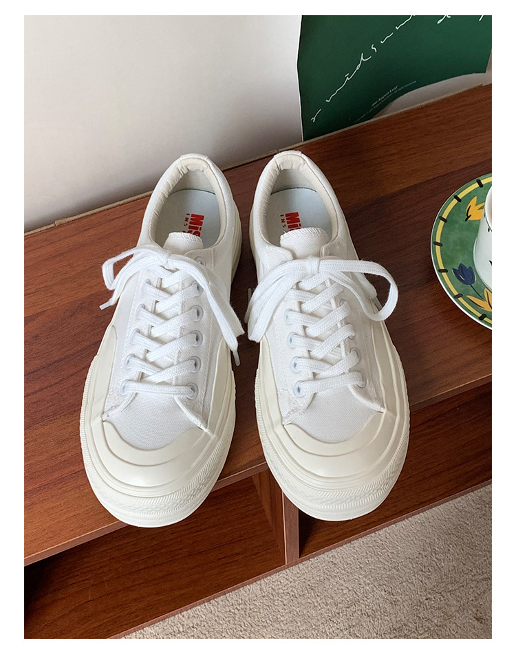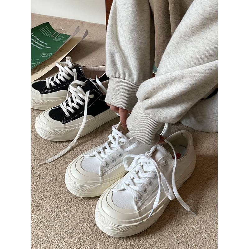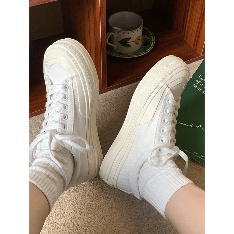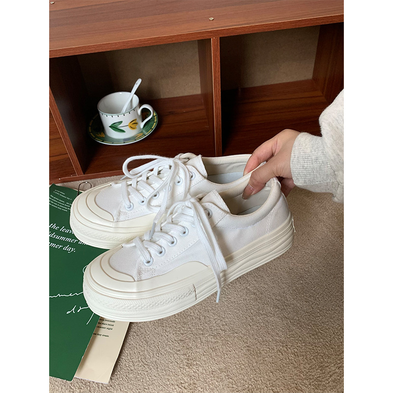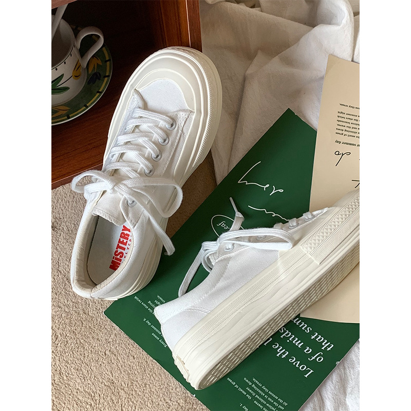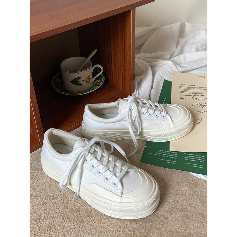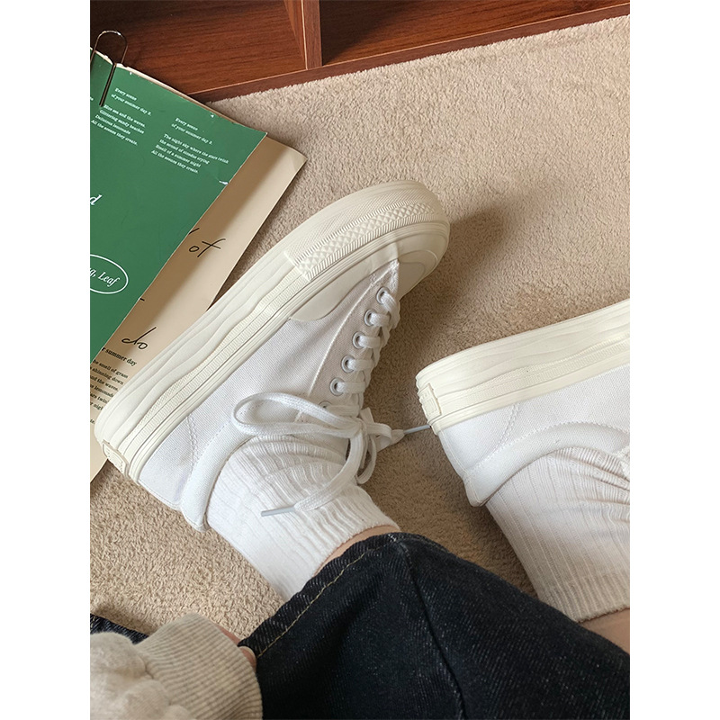 플랫폼 캔버스 신발 여성 용해 신발 귀여운 일본 스타일 큰 머리 신발 2025 봄 새로운 도착 올매치 화이트 신발 학생 여성