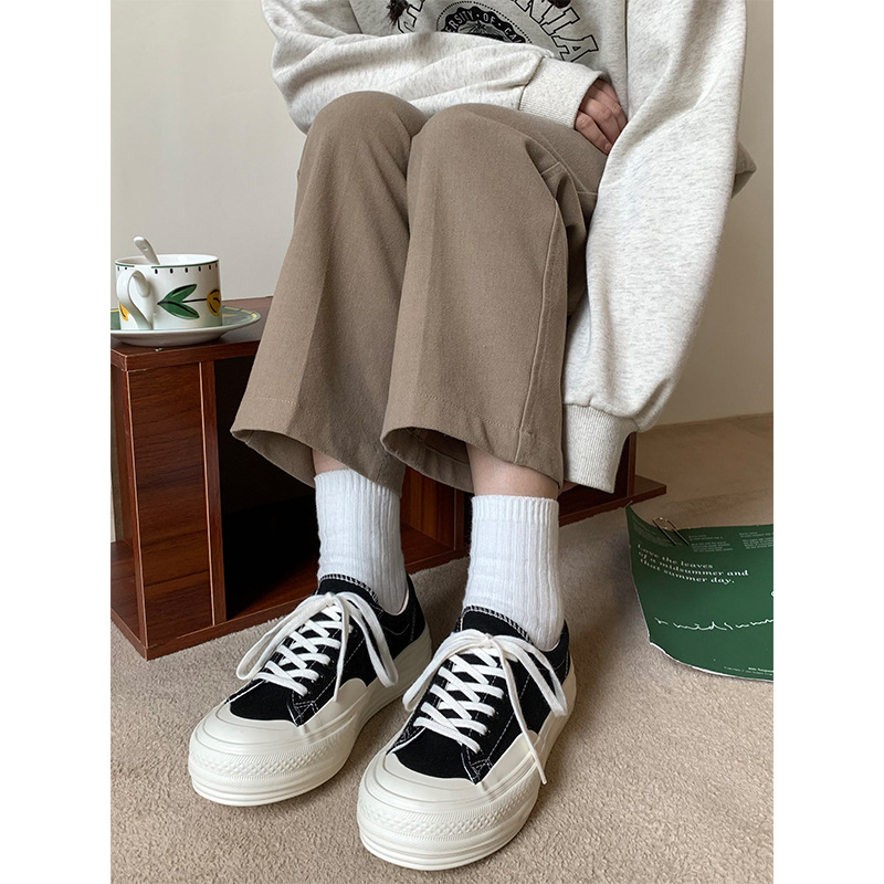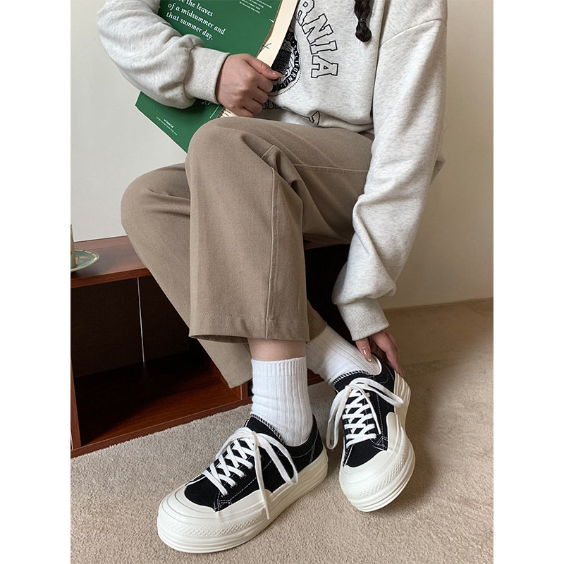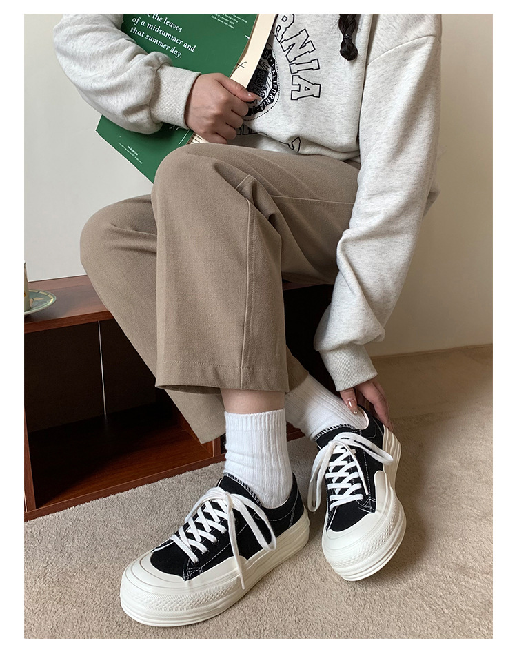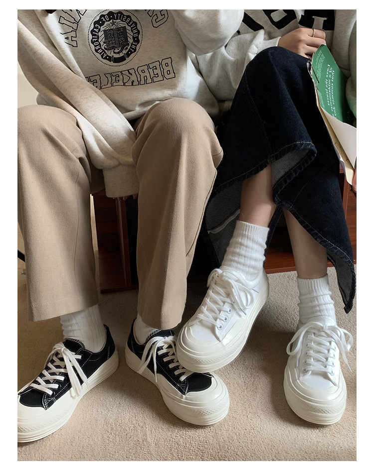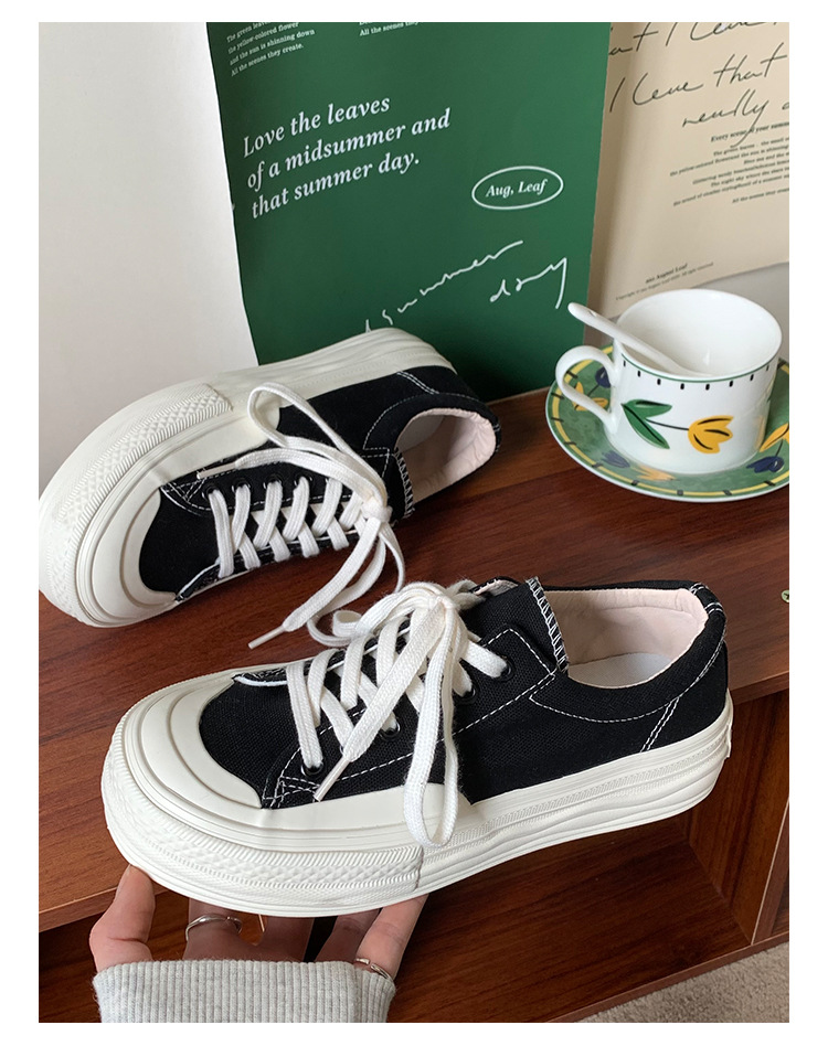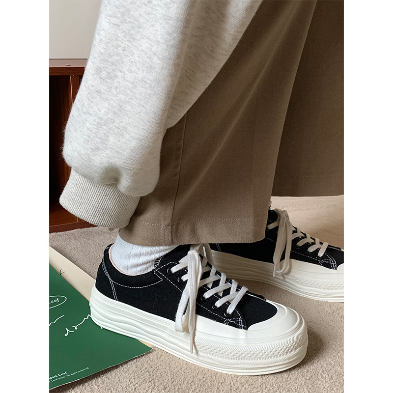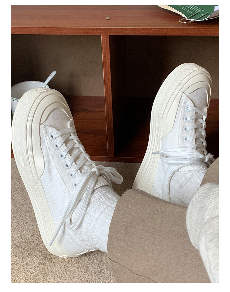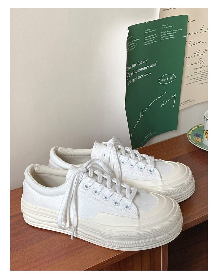플랫폼 캔버스 신발 여성 용해 신발 귀여운 일본 스타일 큰 머리 신발 2025 봄 새로운 도착 올매치 화이트 신발 학생 여성