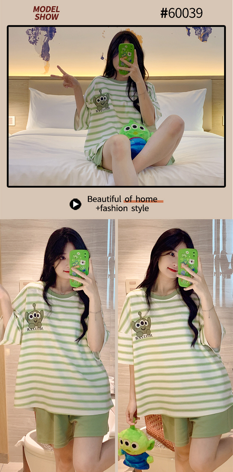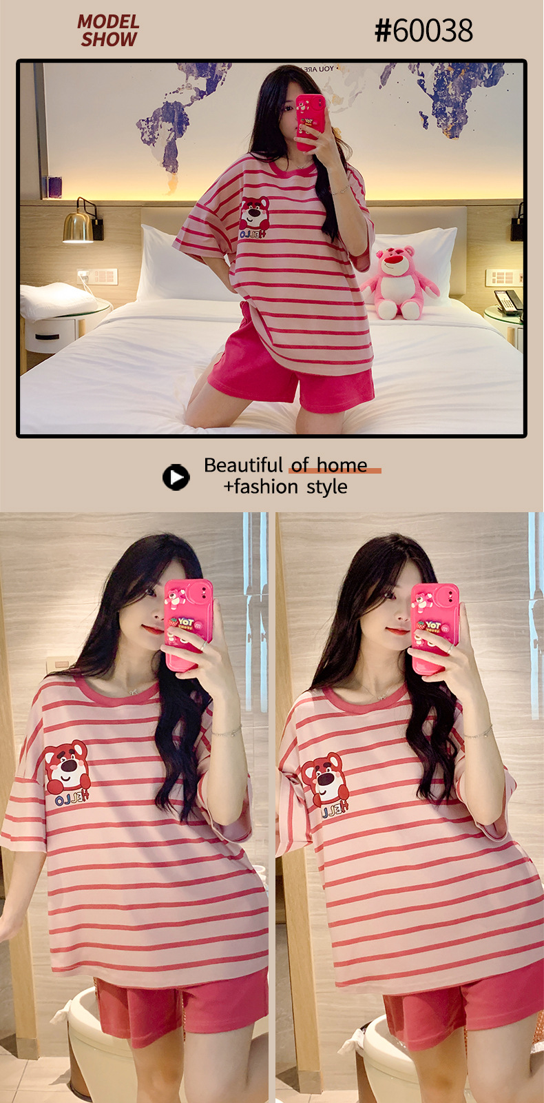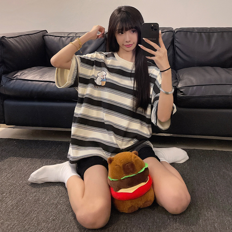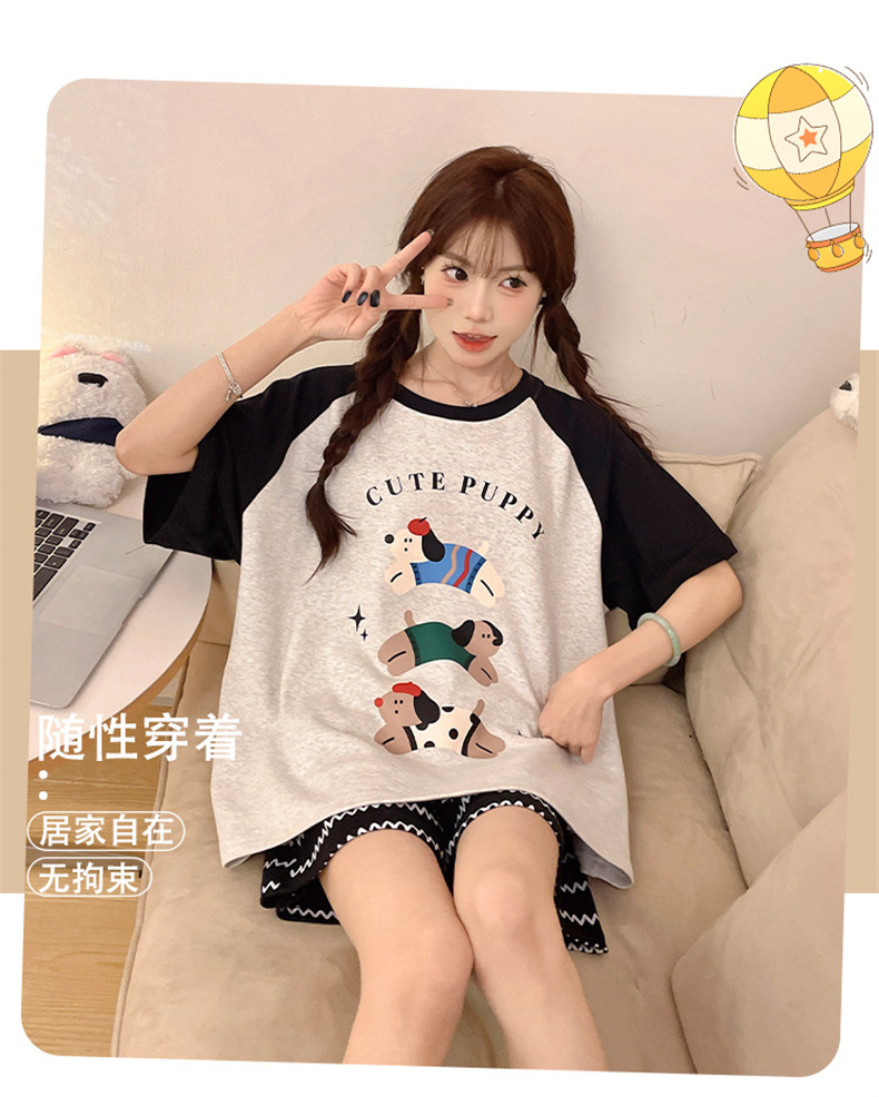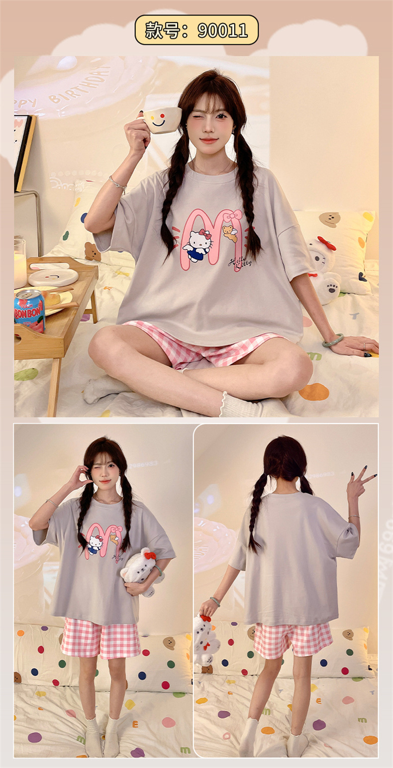 여성용 면 잠옷, 여름 반팔 반바지, 얇은 홈웨어, 한국 스타일, 귀여운 만화 캐주얼 스타일, 외부에서 착용 가능