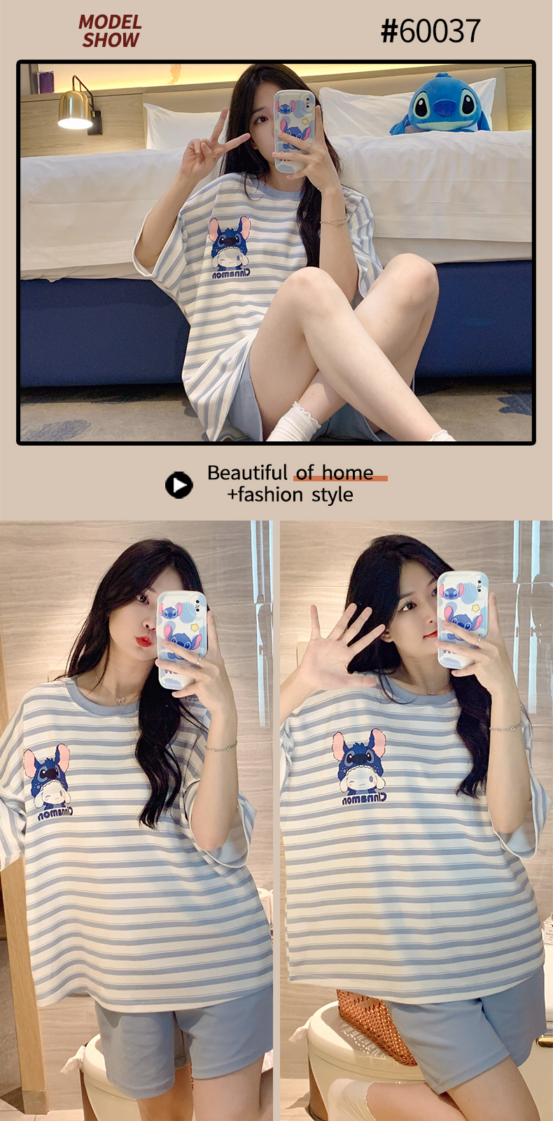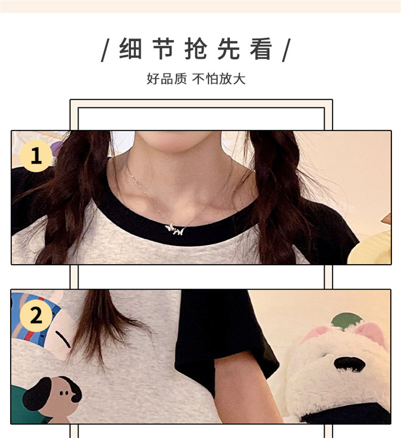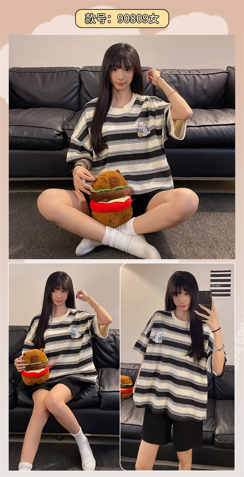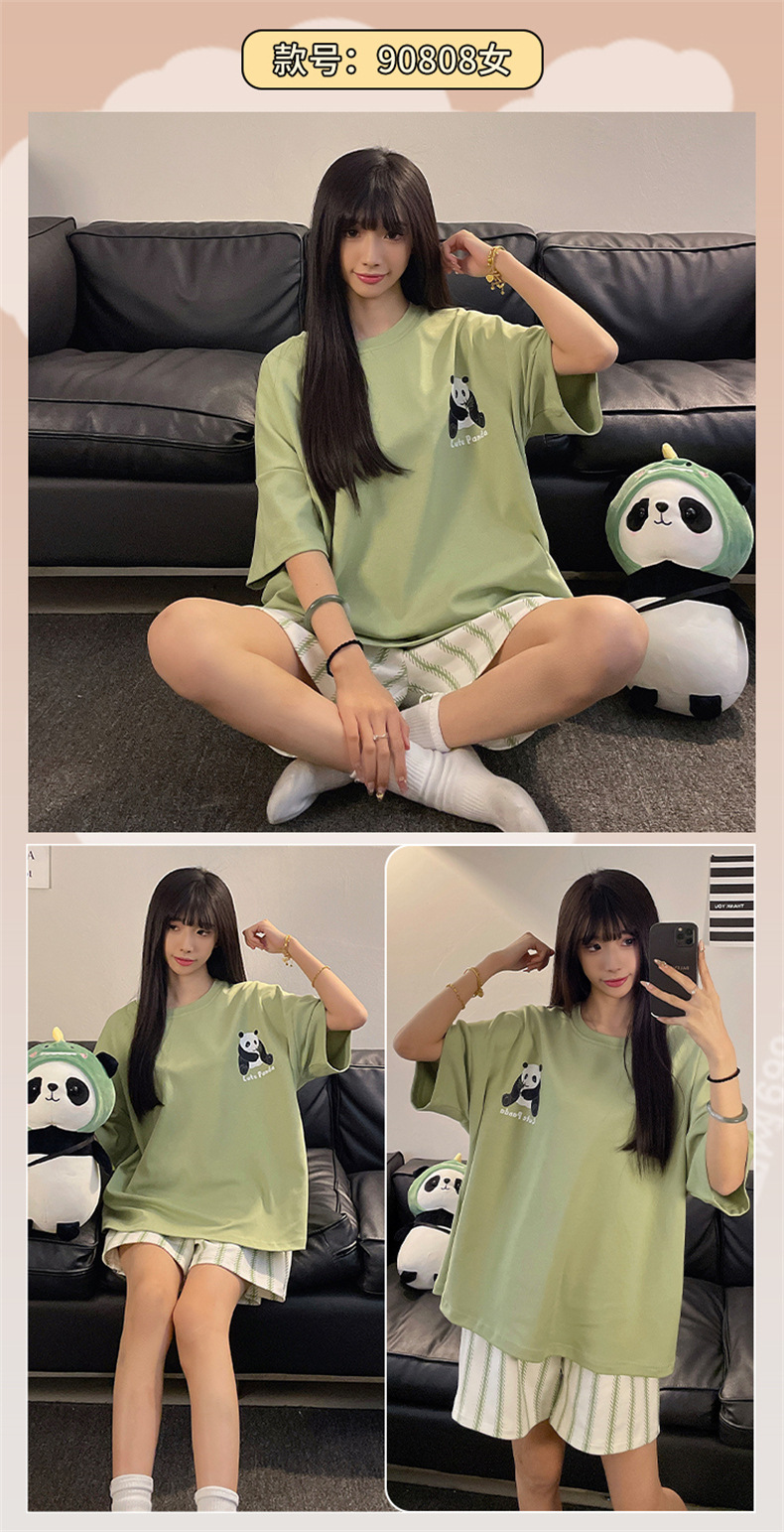 여성용 면 잠옷, 여름 반팔 반바지, 얇은 홈웨어, 한국 스타일, 귀여운 만화 캐주얼 스타일, 외부에서 착용 가능스토어 가기