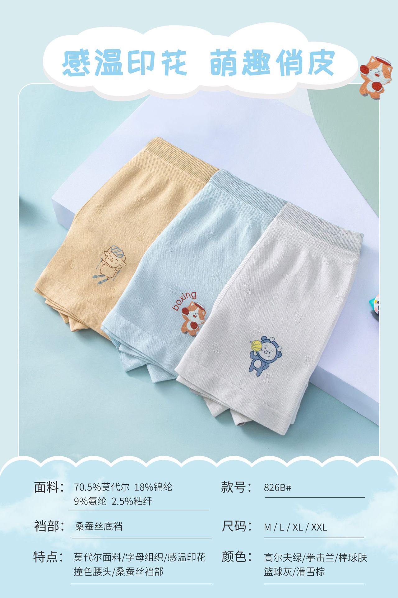 남학생 속옷 어린이 모달 복서 반바지 남성 4 코너 반바지 대형 어린이 원활한 온도에 민감한 인쇄 상자 만화스토어 가기