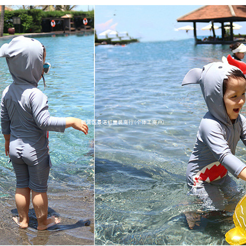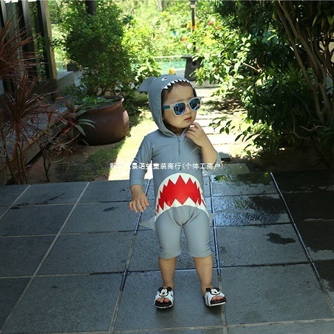 어린이 수영복 원피스 소년 귀엽고 잘 생긴 상어 어린이 아기 긴팔 자외선 차단 소녀 수영복스토어 가기