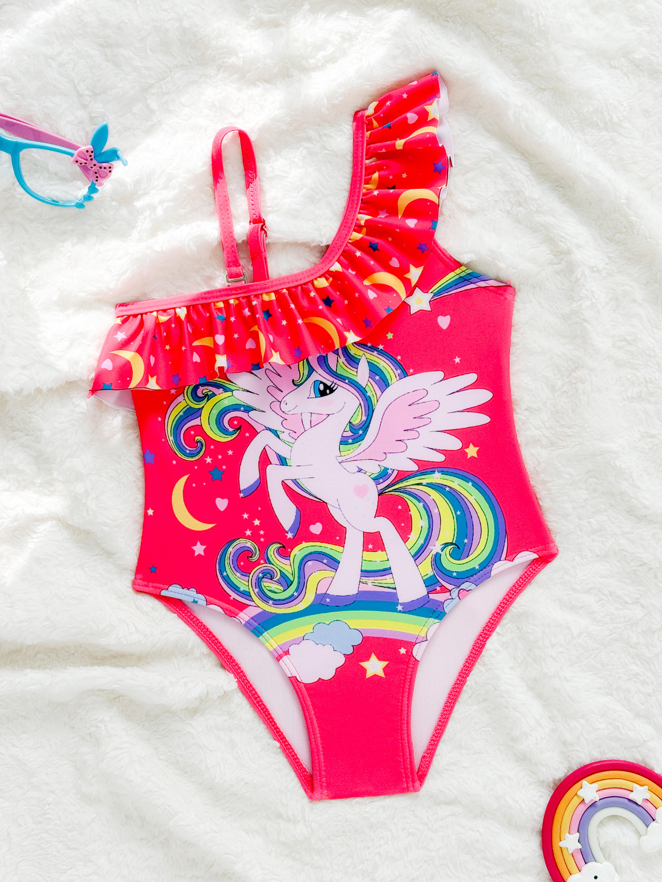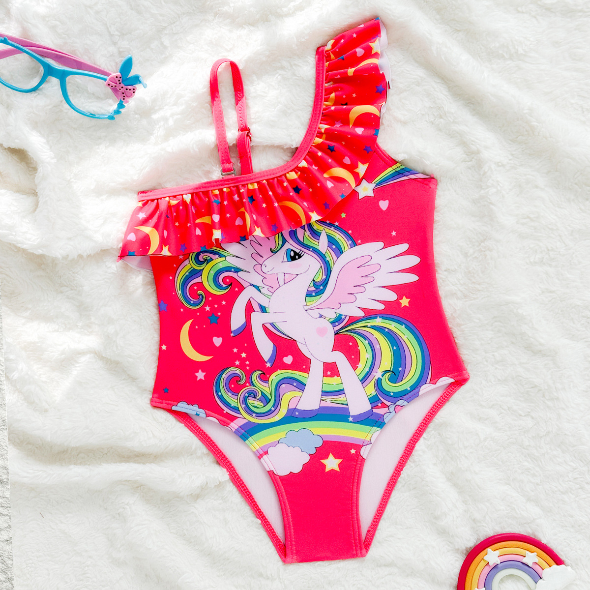 뜨거운 새로운 유니콘 디지털 인쇄 아동복 비행 슬리브 라운드 넥 느슨한 원피스 민소매 수영복 인쇄