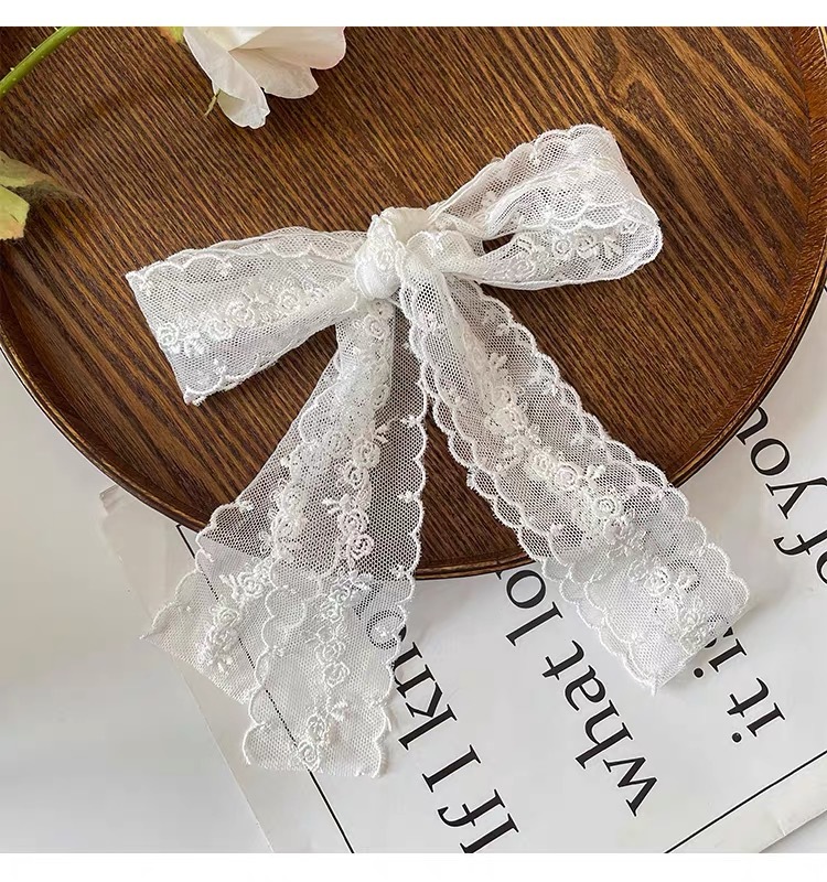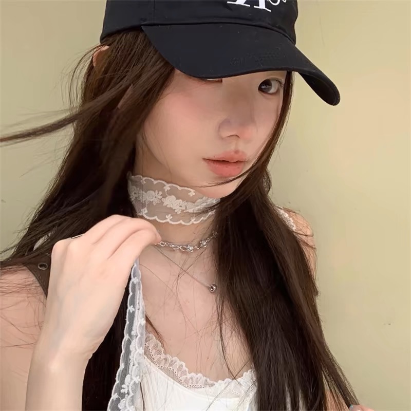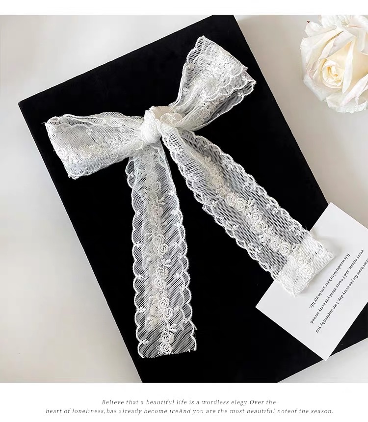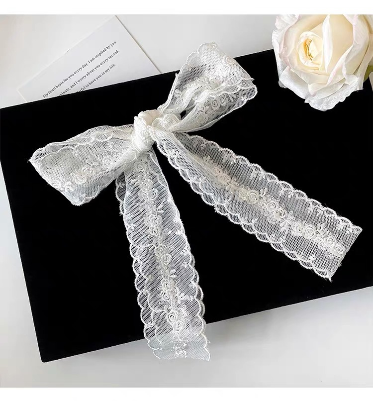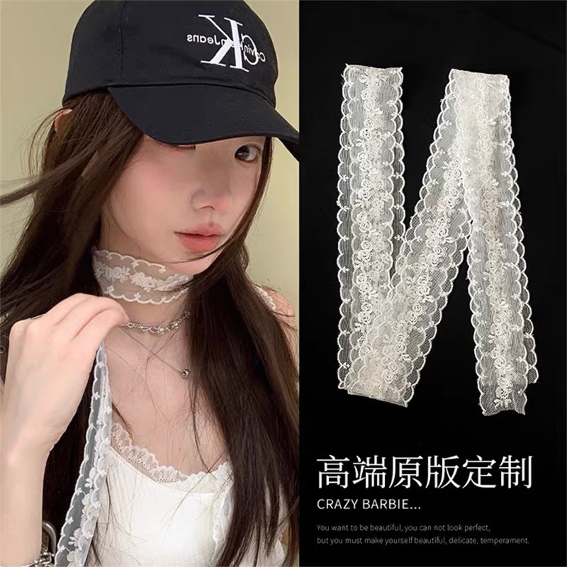 한국 화이트 레이스 리본 스카프 목 고급 메쉬 자수 꽃 좁은 스카프 목 액세서리