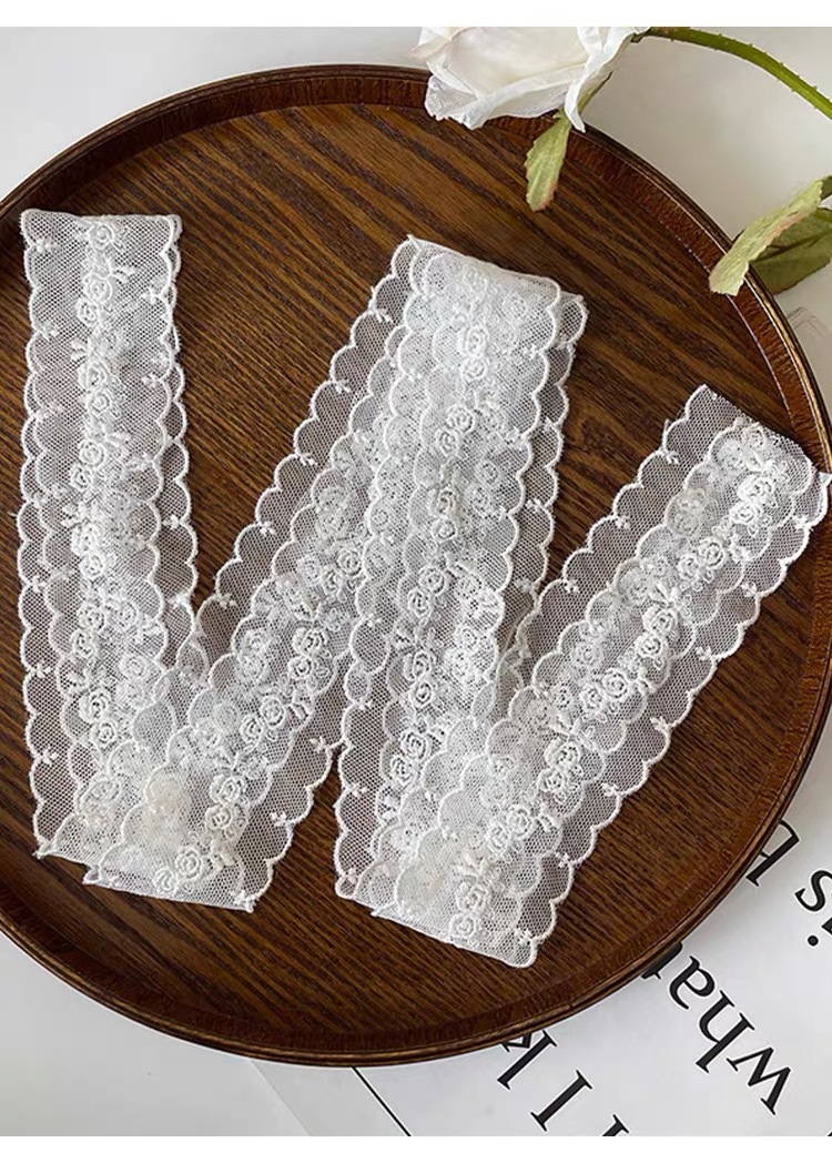 한국 화이트 레이스 리본 스카프 목 고급 메쉬 자수 꽃 좁은 스카프 목 액세서리스토어 가기