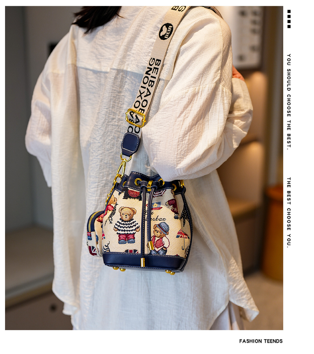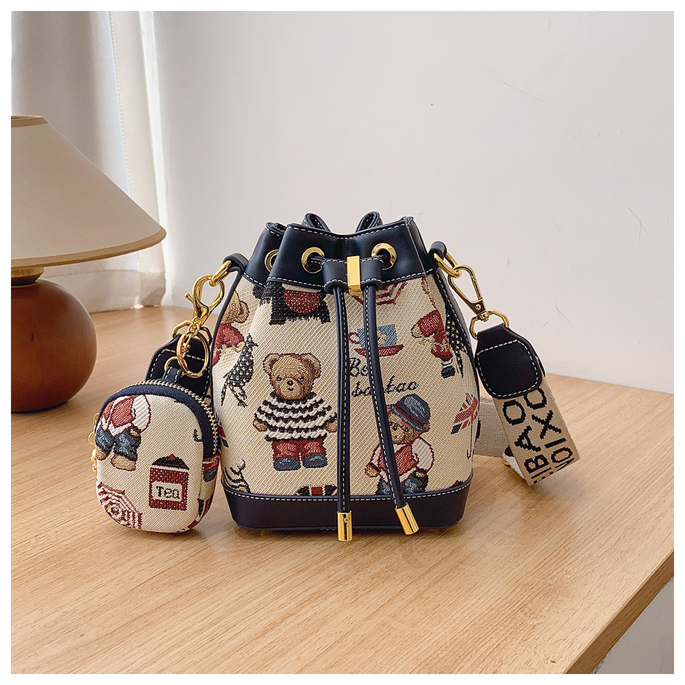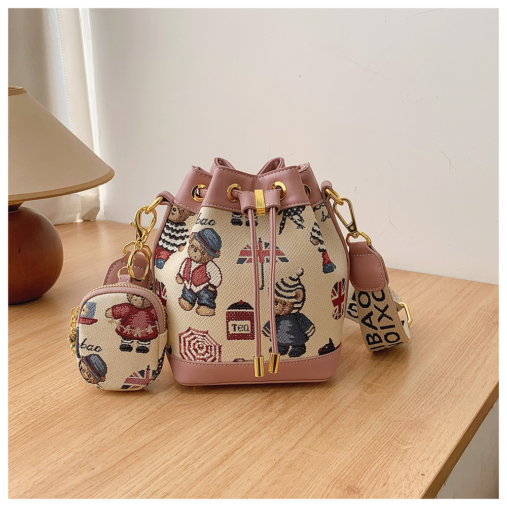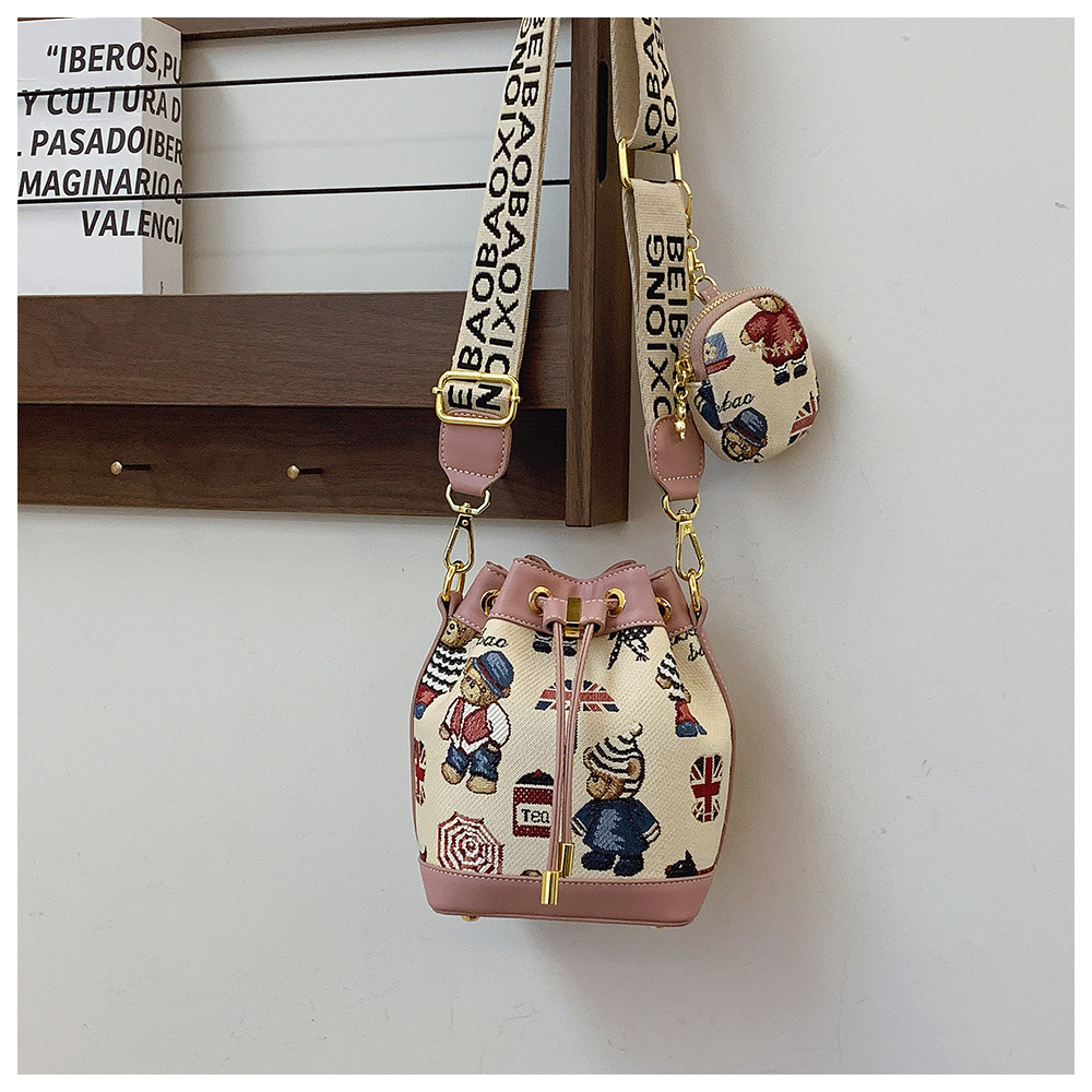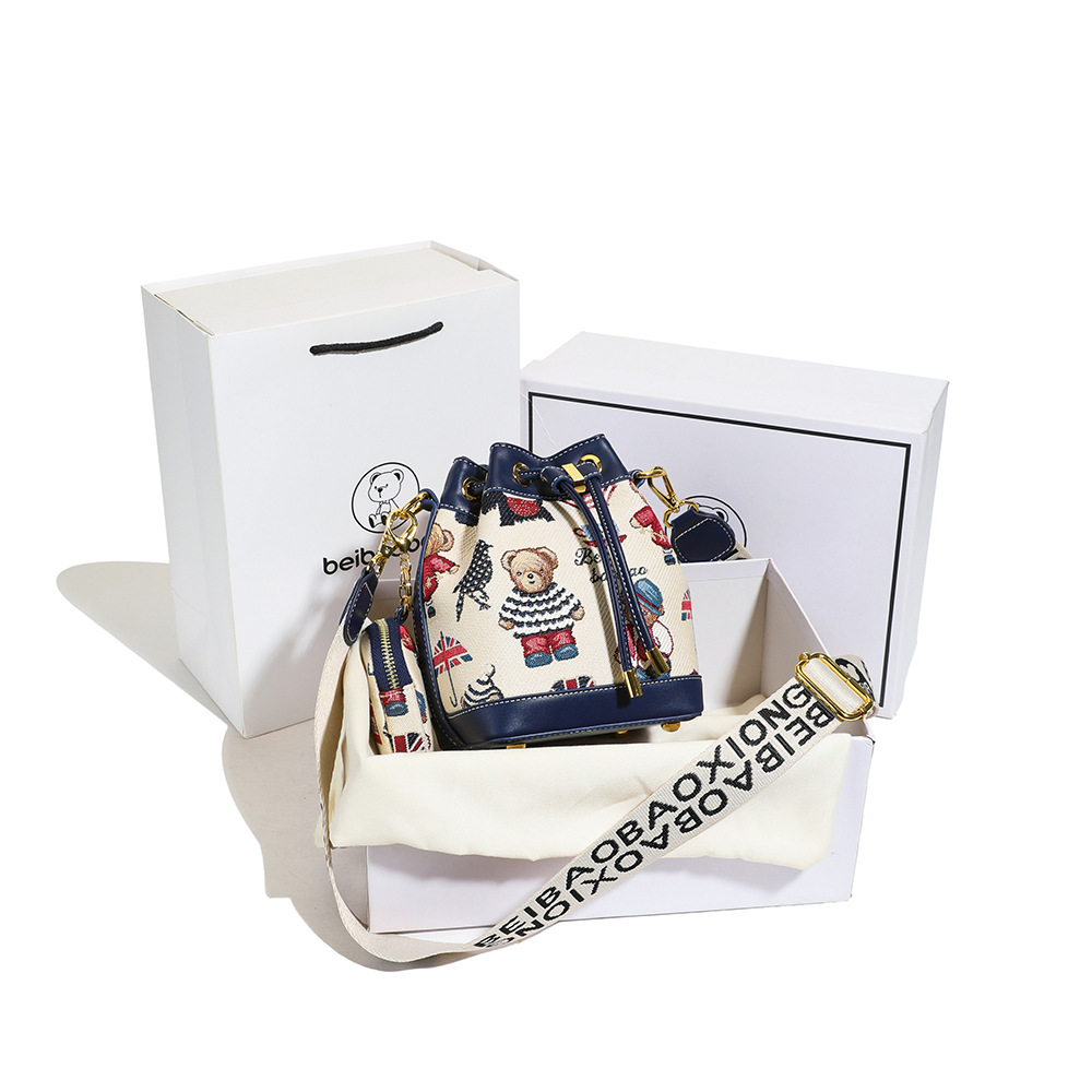 노스 백 소스 공장 새로운 귀여운 귀여운 간단한 올 매치 버킷 가방 만화 곰 어깨 크로스 바디 가방 여성