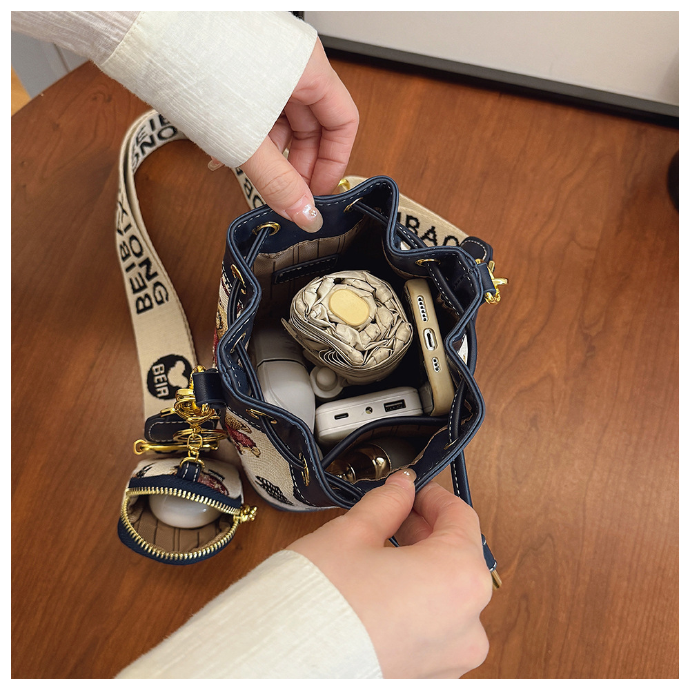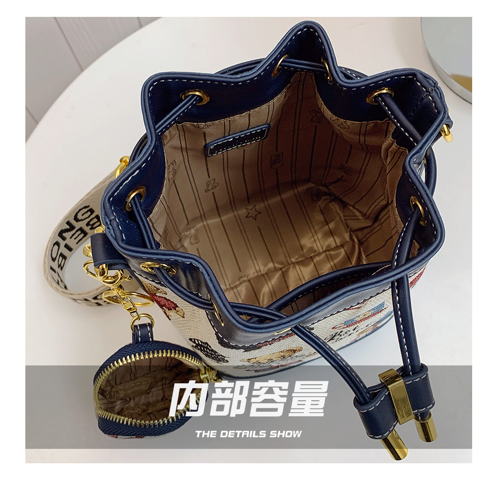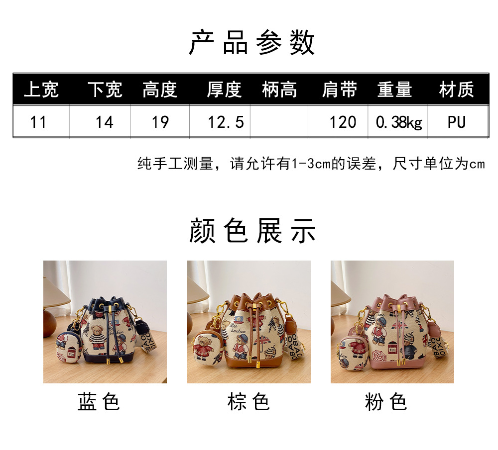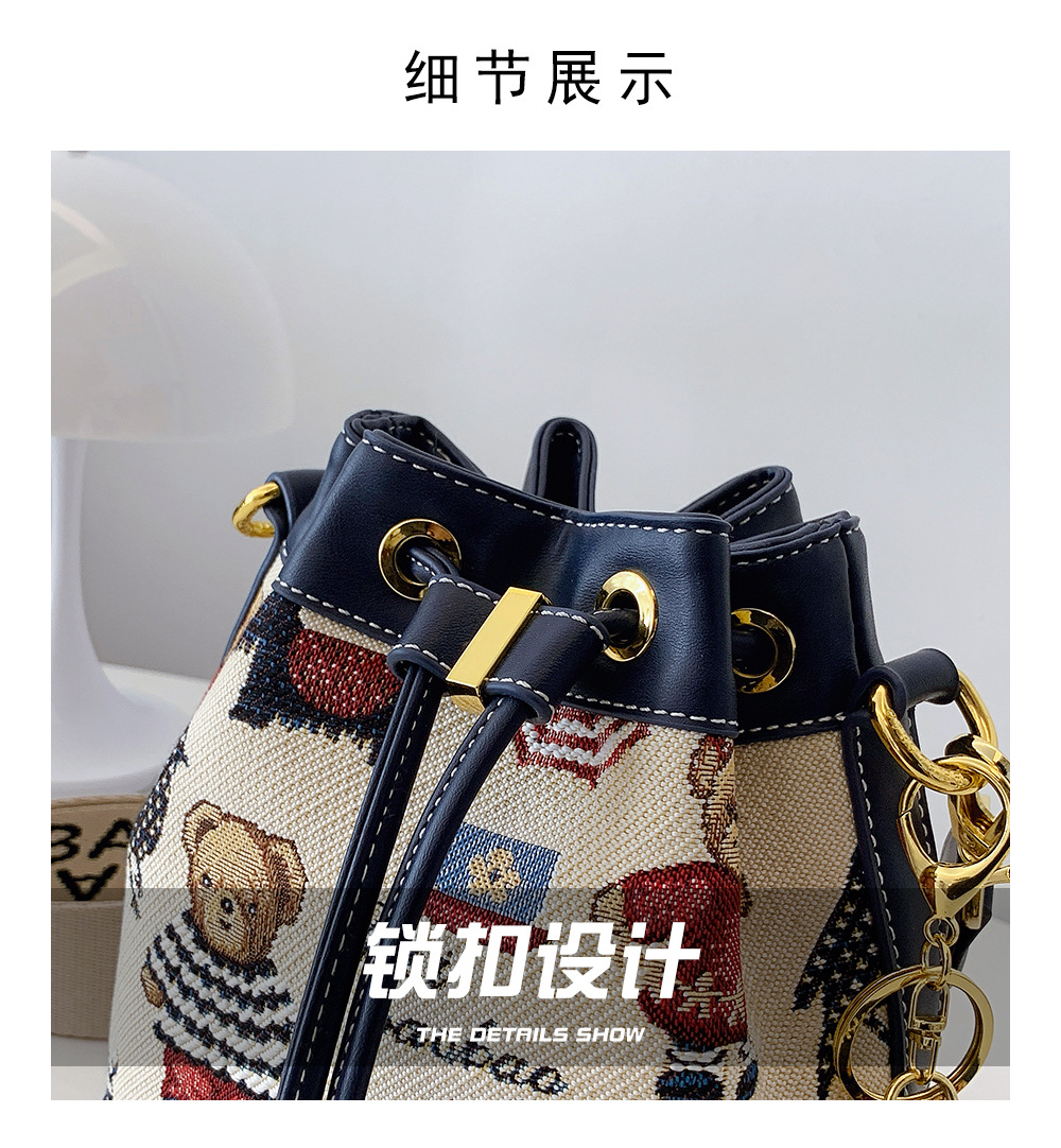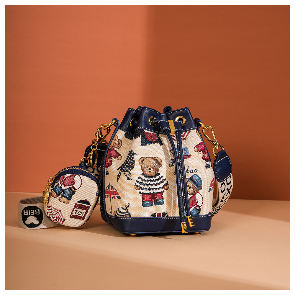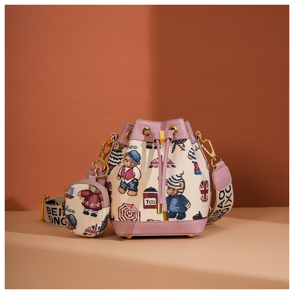 노스 백 소스 공장 새로운 귀여운 귀여운 간단한 올 매치 버킷 가방 만화 곰 어깨 크로스 바디 가방 여성