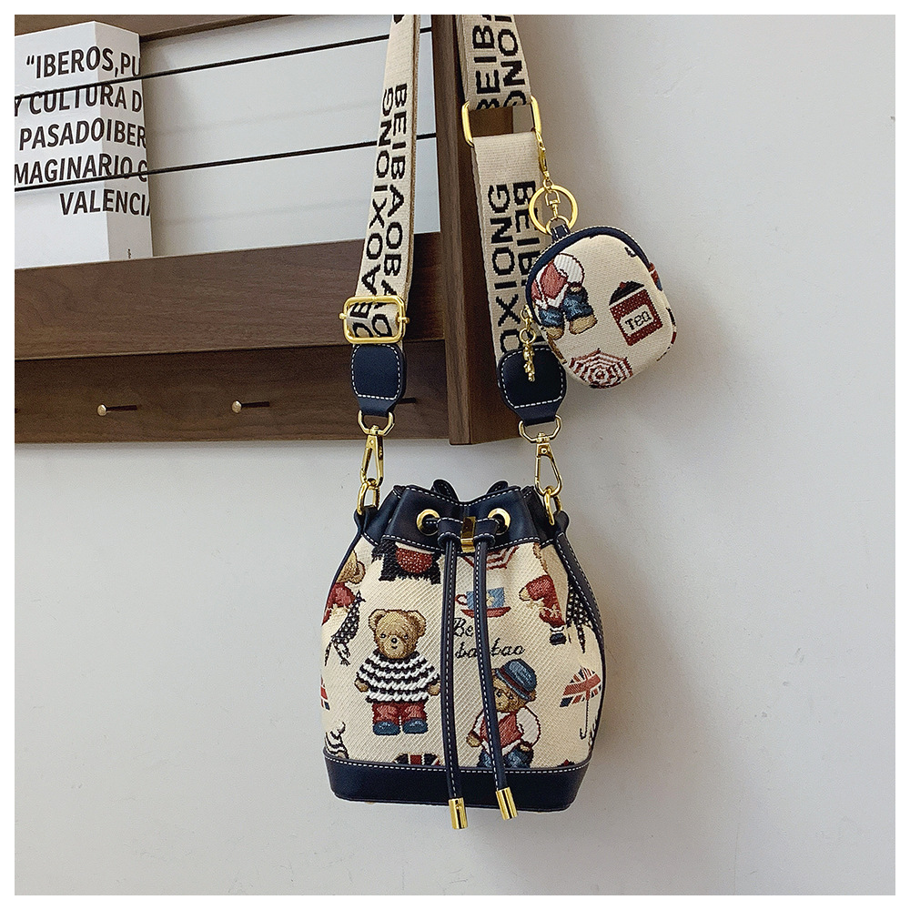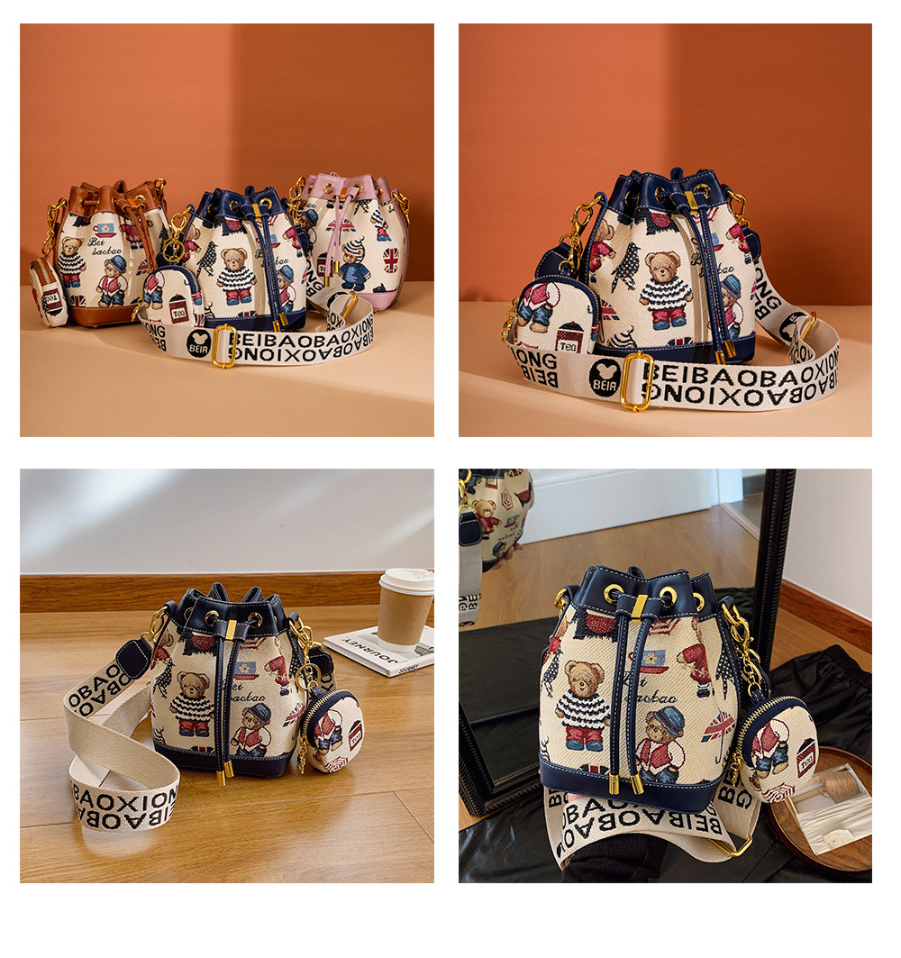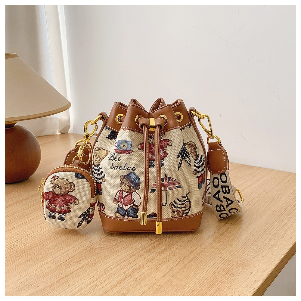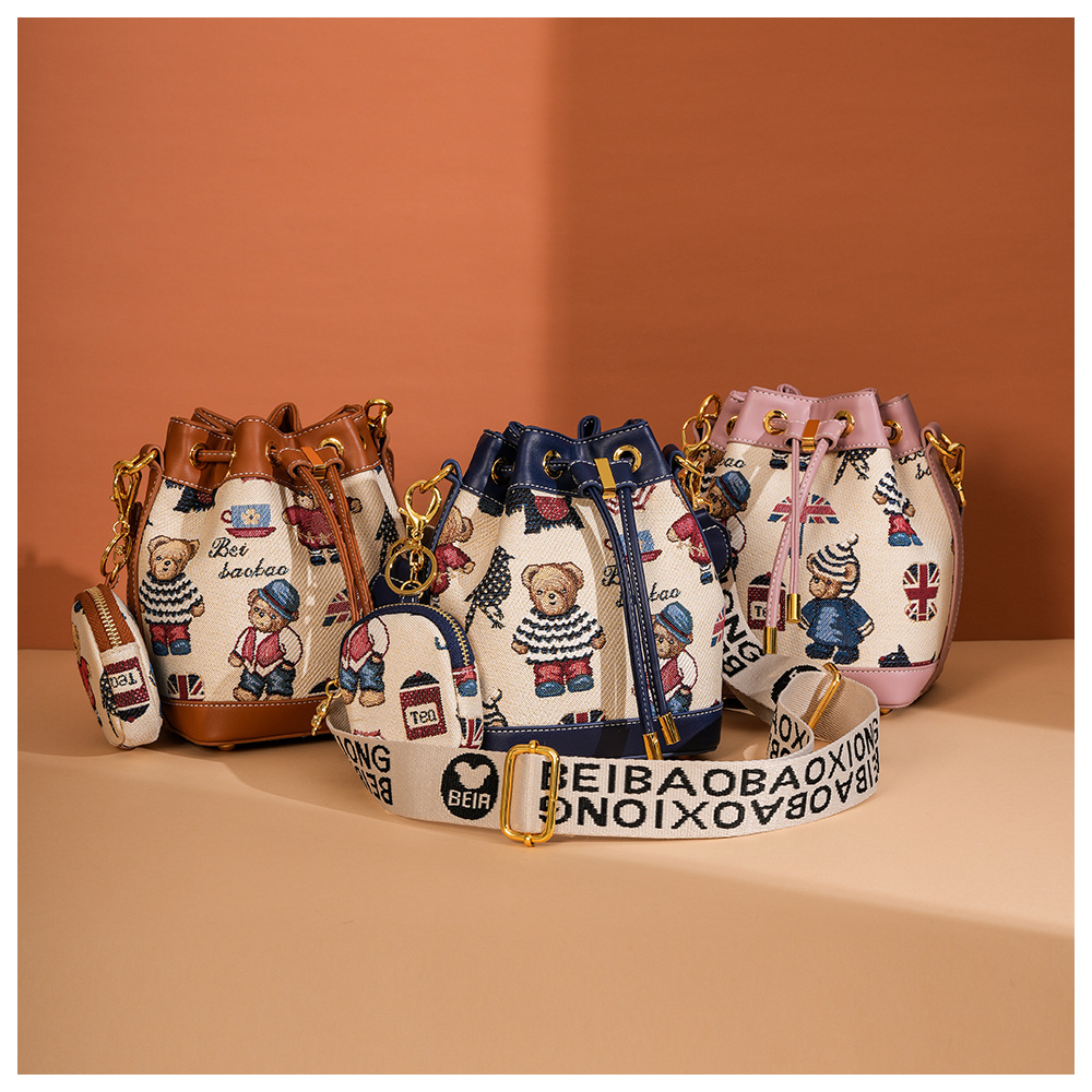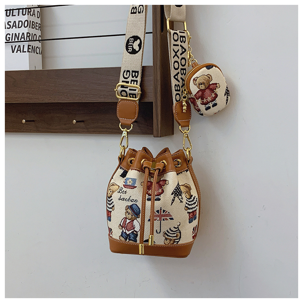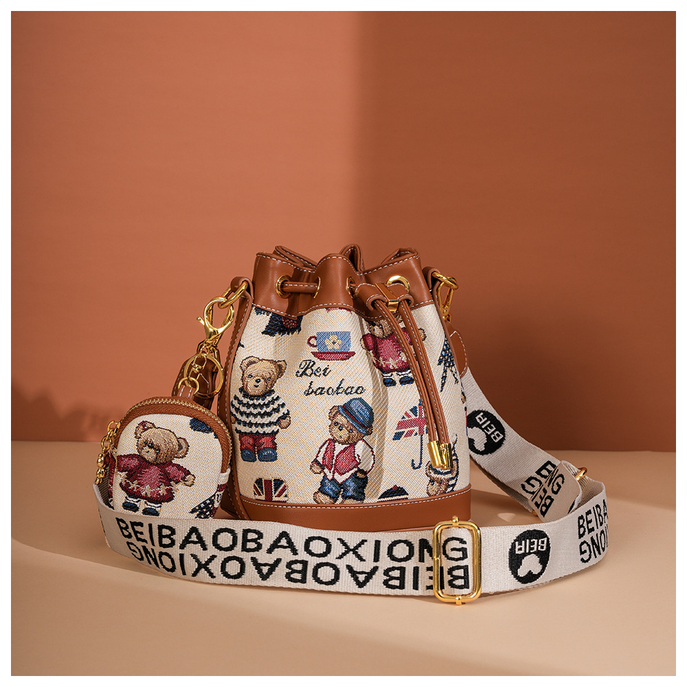 노스 백 소스 공장 새로운 귀여운 귀여운 간단한 올 매치 버킷 가방 만화 곰 어깨 크로스 바디 가방 여성스토어 가기