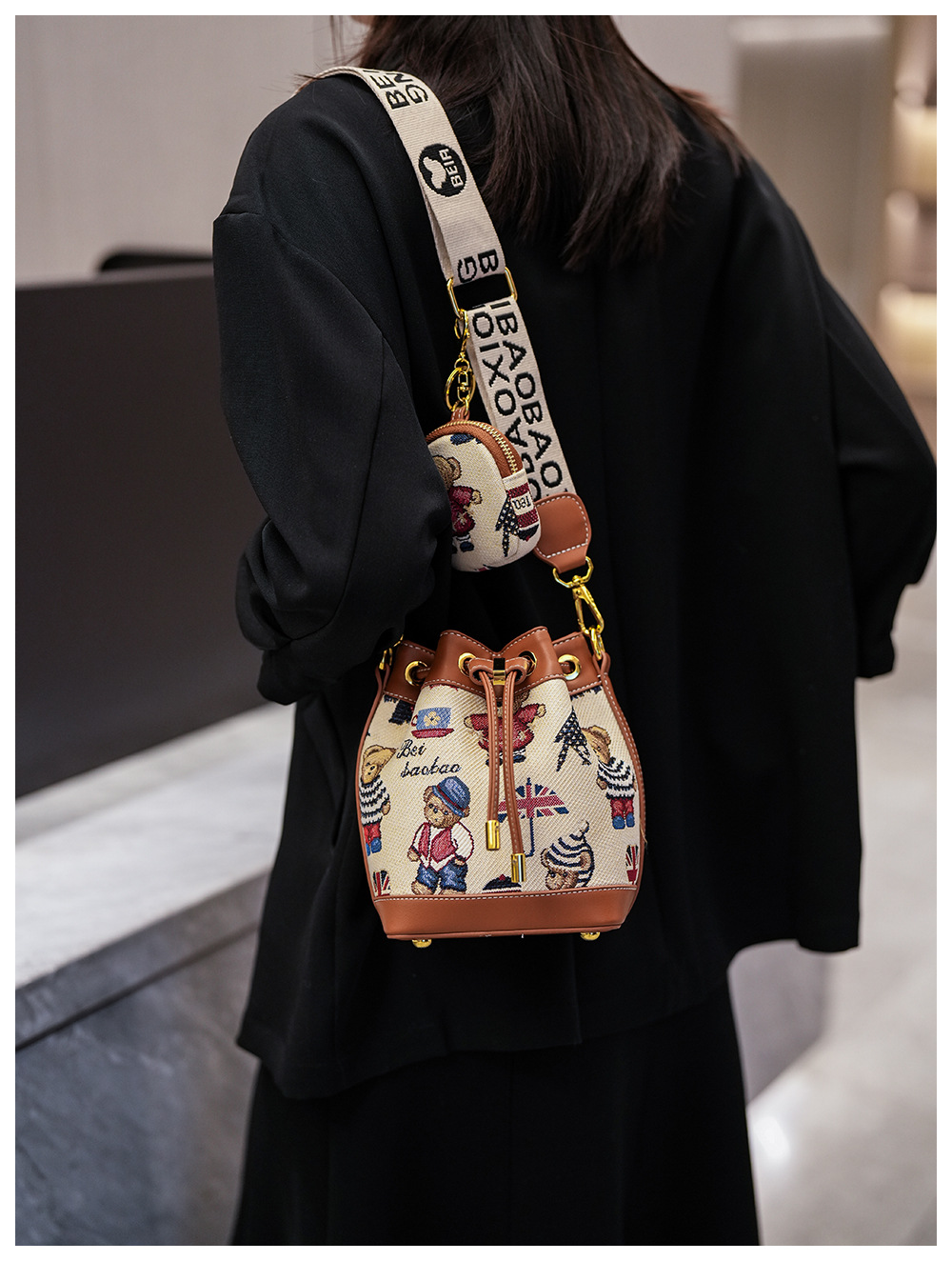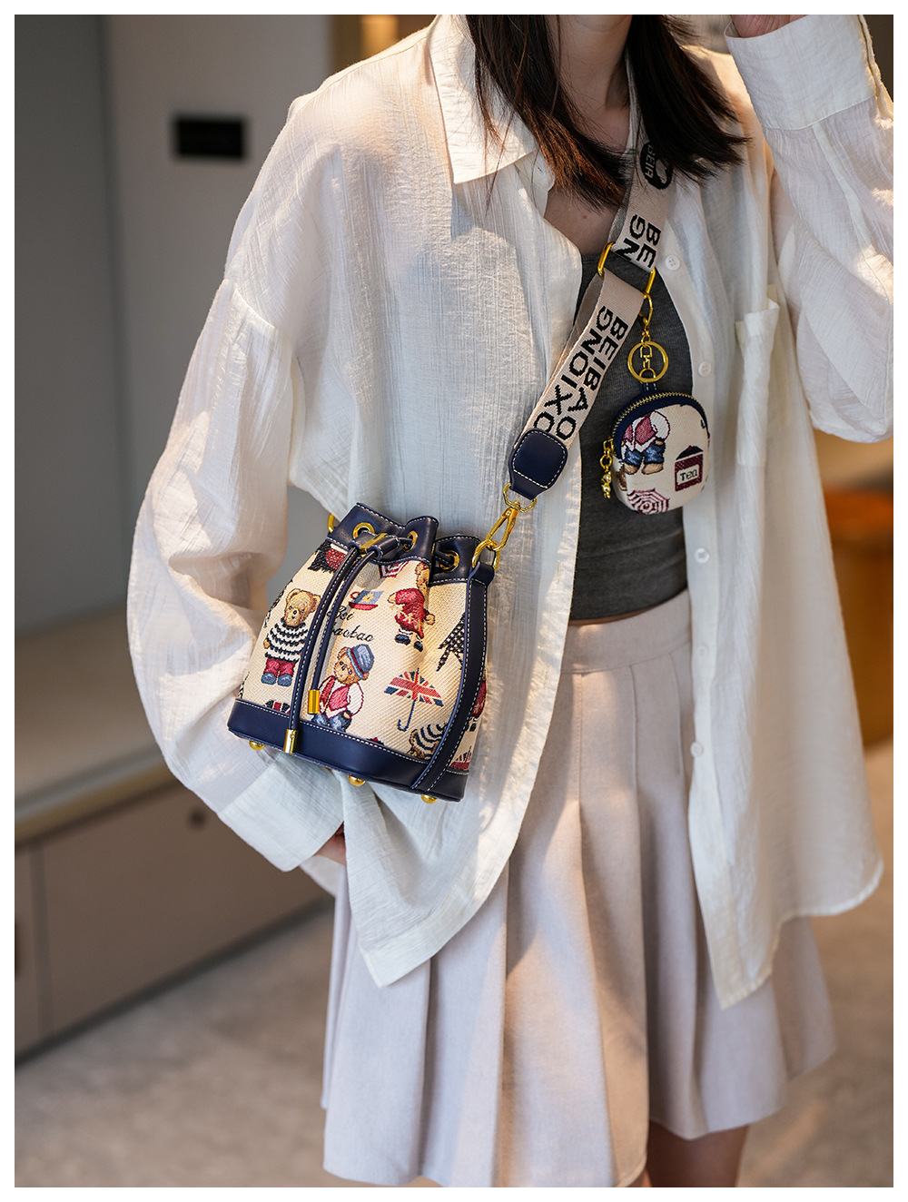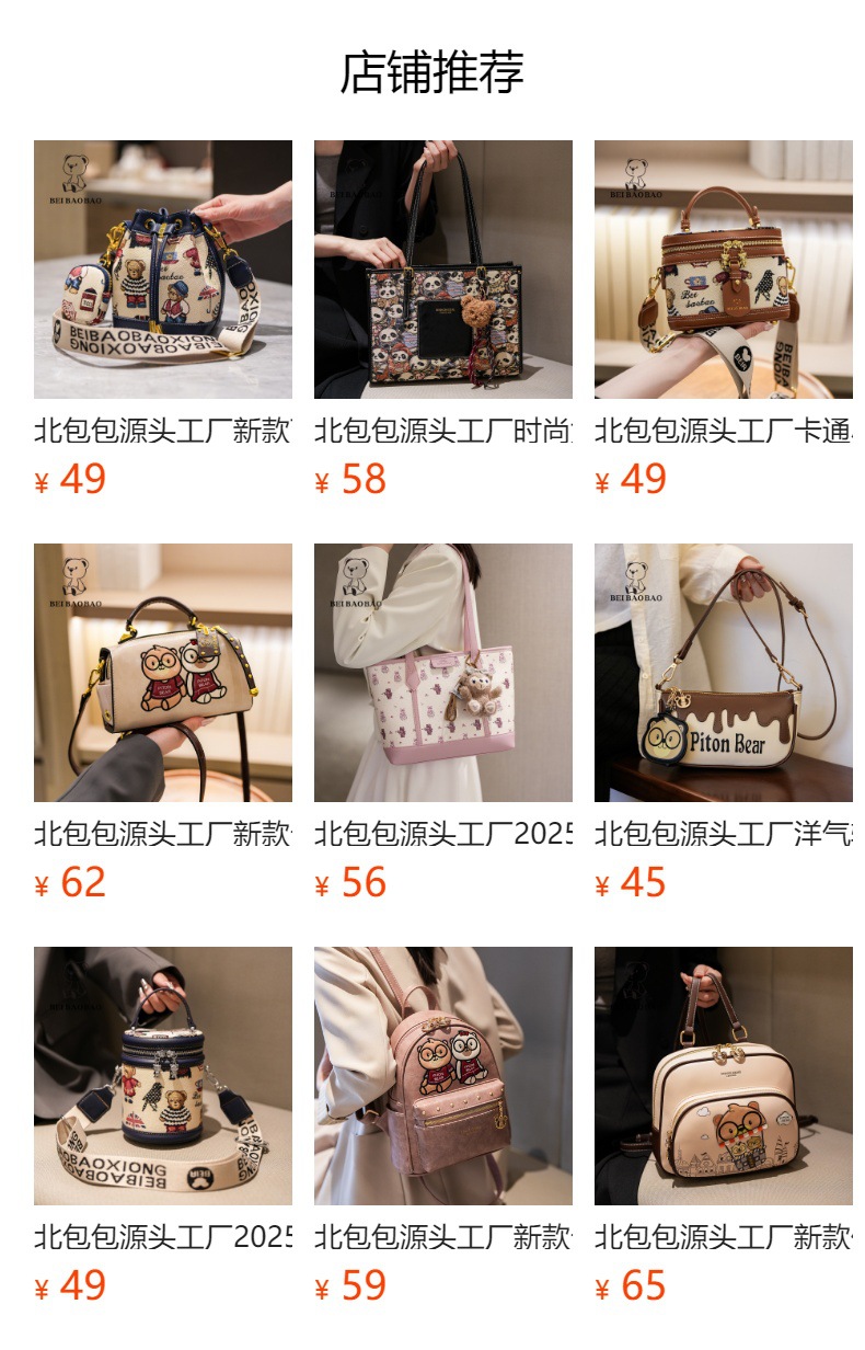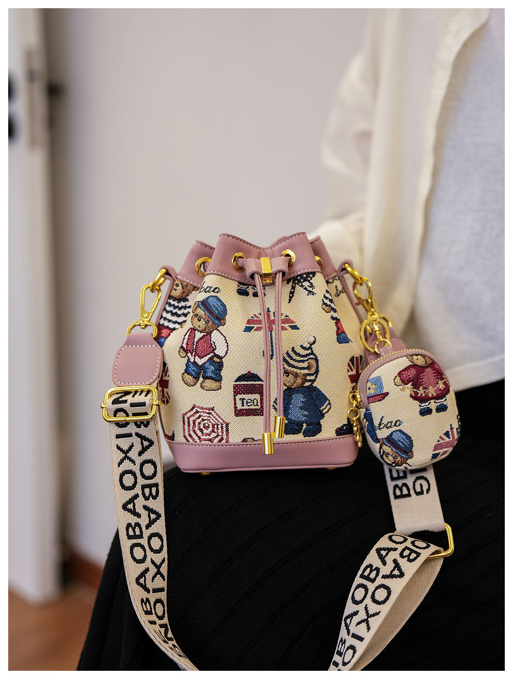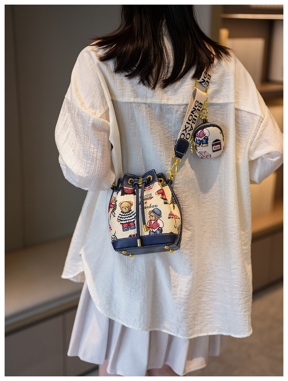 노스 백 소스 공장 새로운 귀여운 귀여운 간단한 올 매치 버킷 가방 만화 곰 어깨 크로스 바디 가방 여성스토어 가기