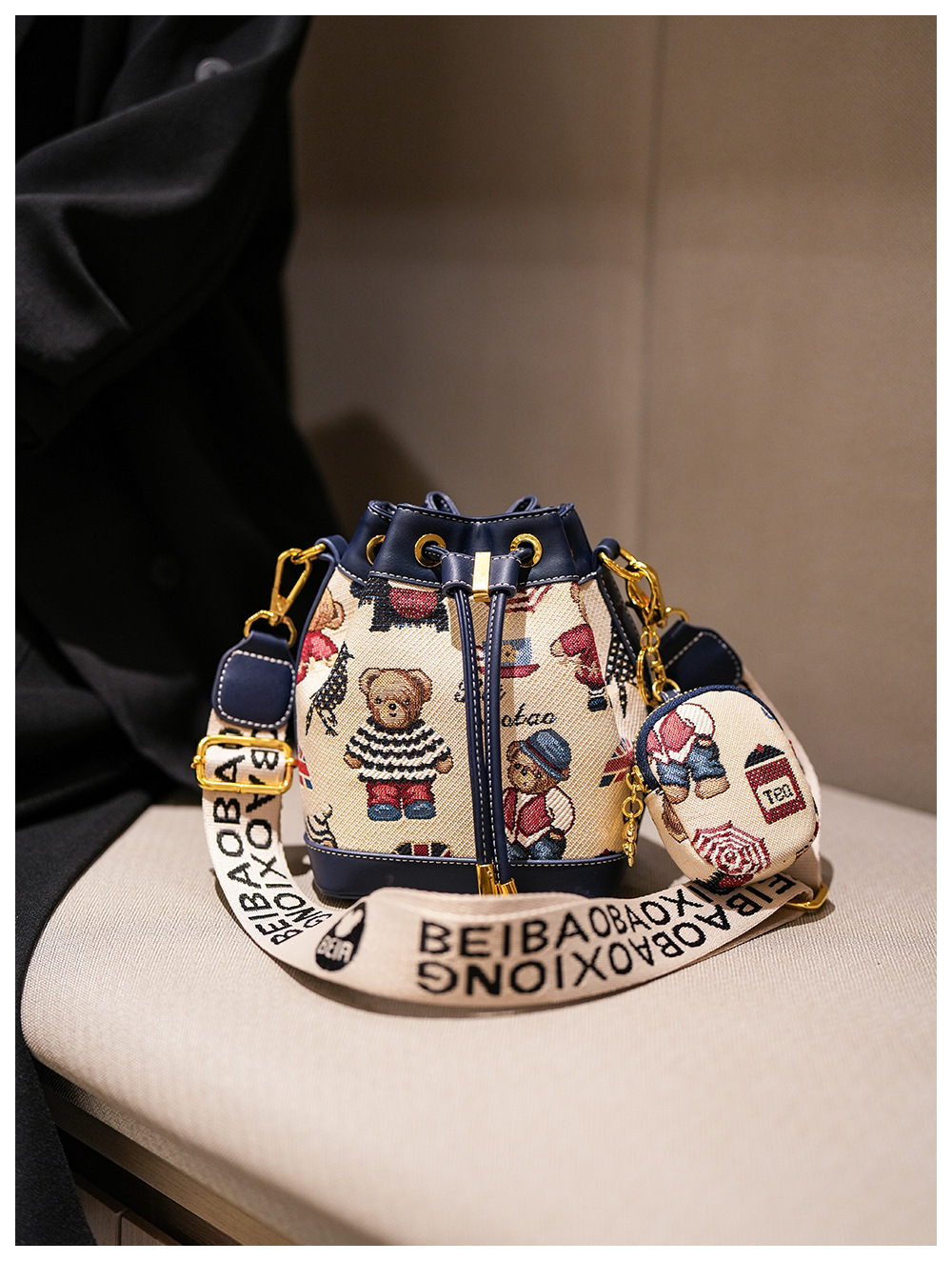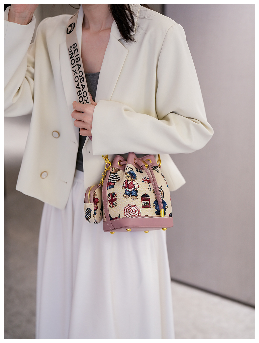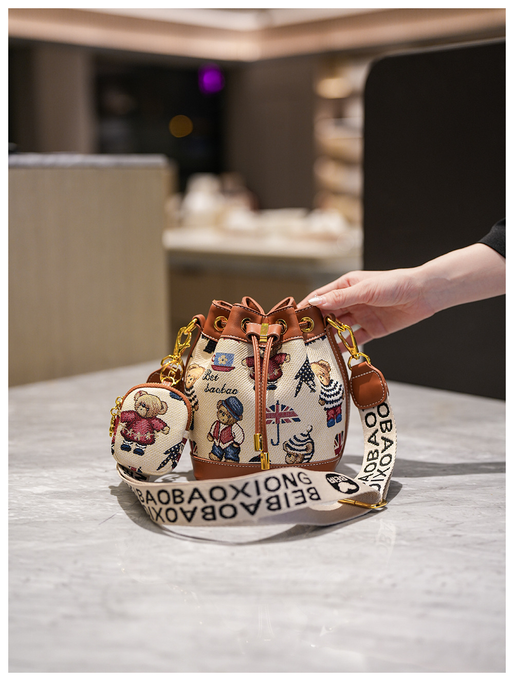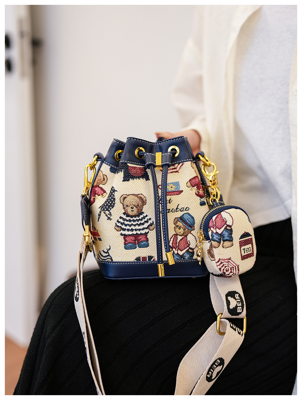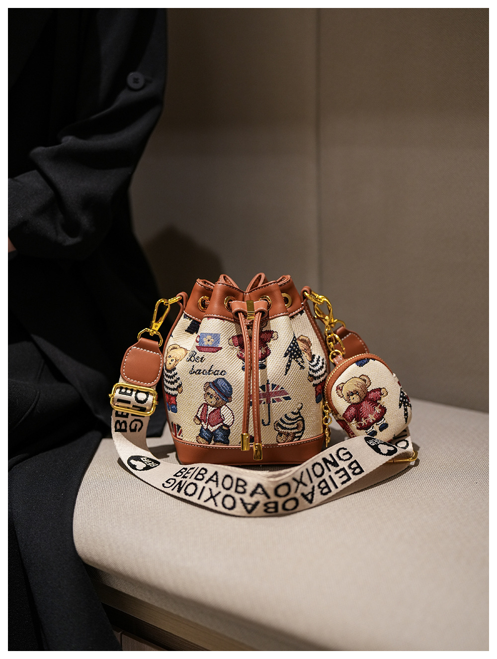 노스 백 소스 공장 새로운 귀여운 귀여운 간단한 올 매치 버킷 가방 만화 곰 어깨 크로스 바디 가방 여성스토어 가기