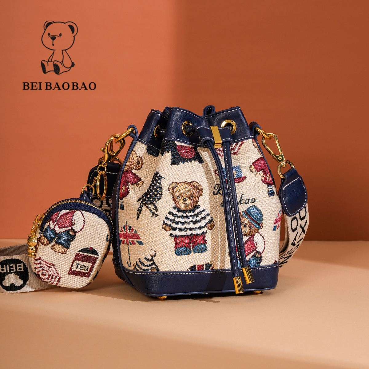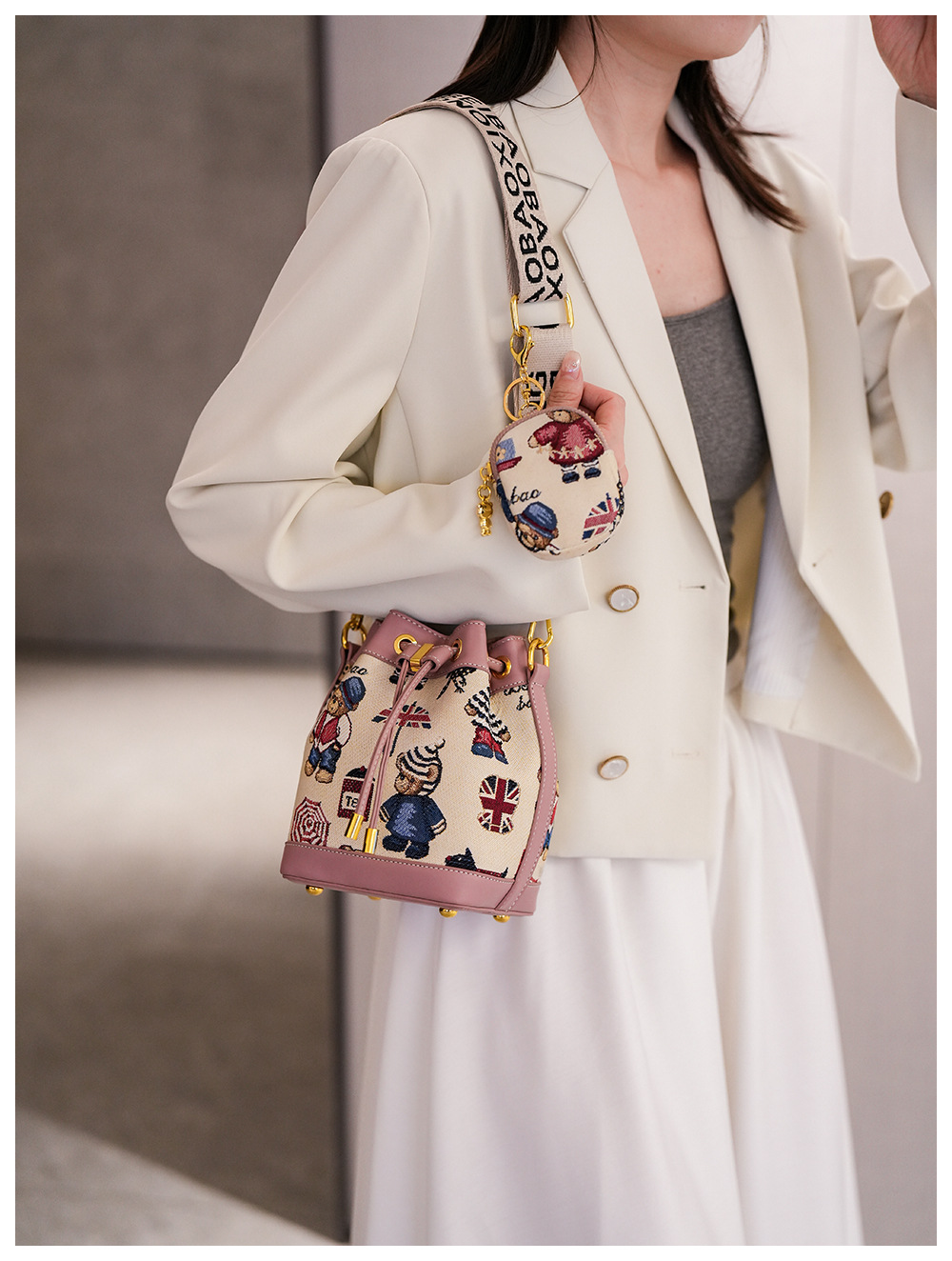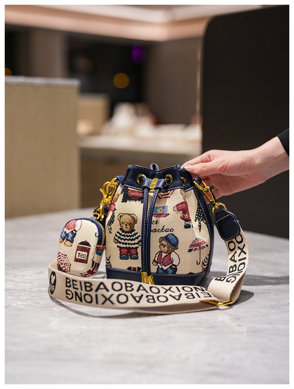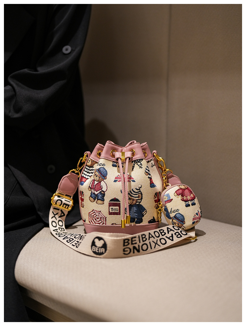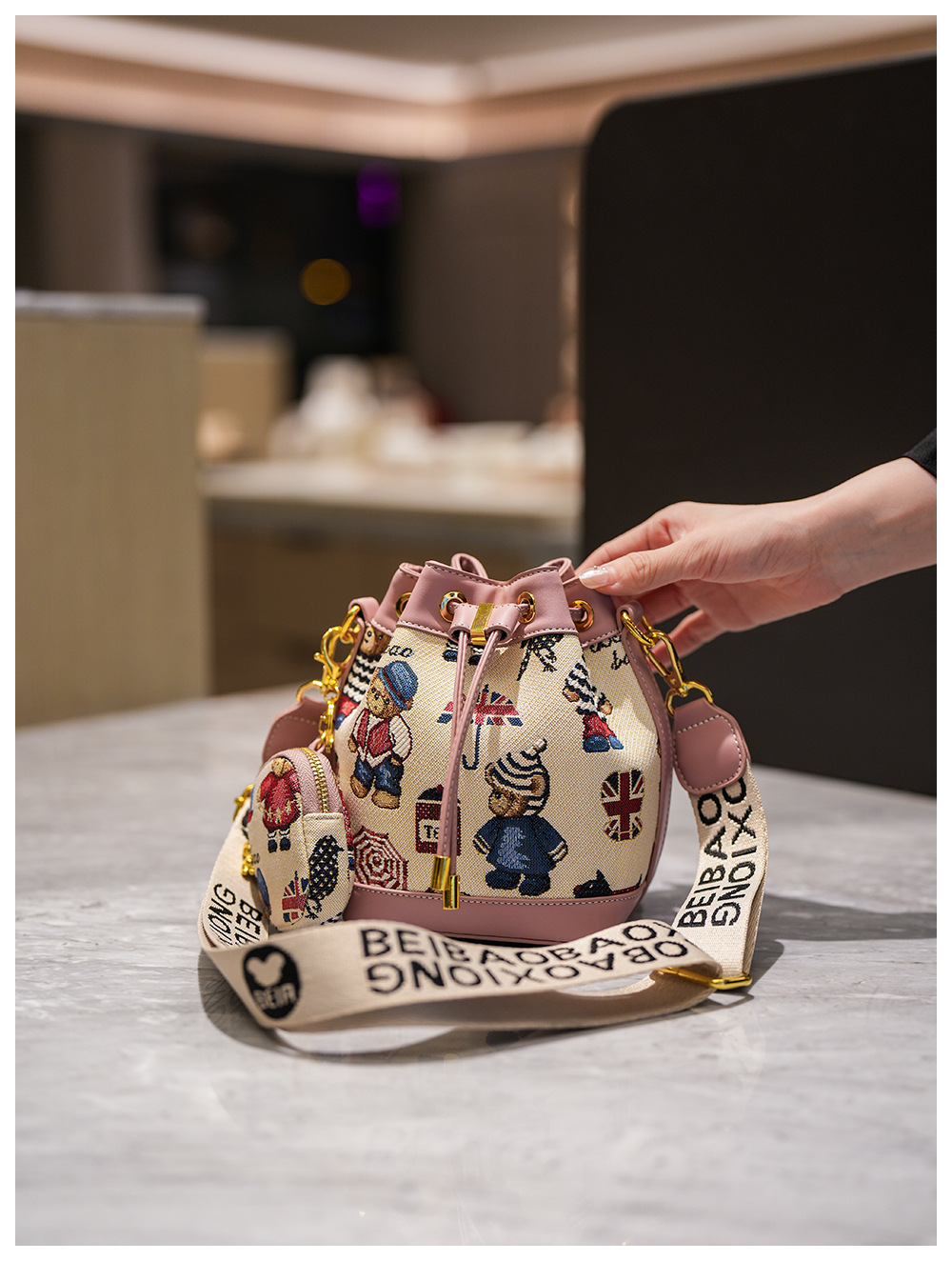 노스 백 소스 공장 새로운 귀여운 귀여운 간단한 올 매치 버킷 가방 만화 곰 어깨 크로스 바디 가방 여성스토어 가기