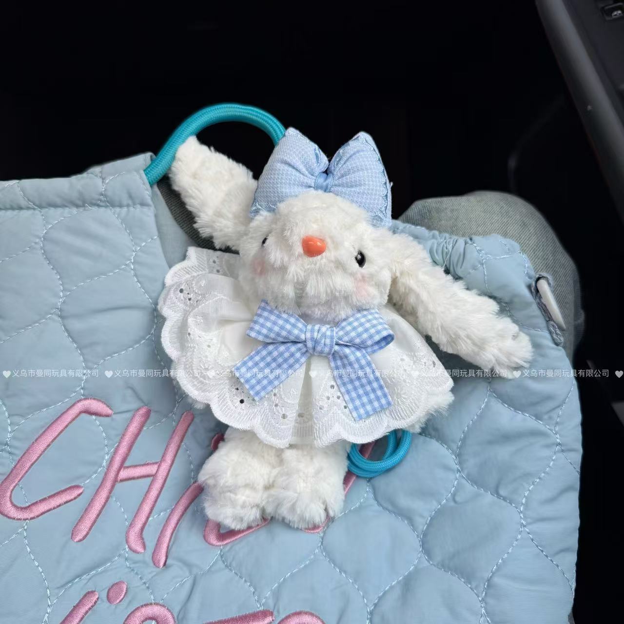 • 파란색과 흰색 체크무늬 스커트 토끼 (팔찌 스타일)