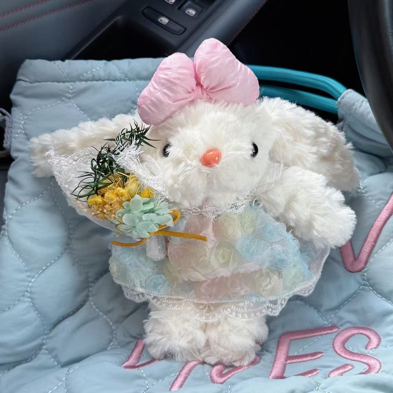 • 핑크 스커트를 입고 꽃을 안고 있는 토끼 (팔찌 스타일)