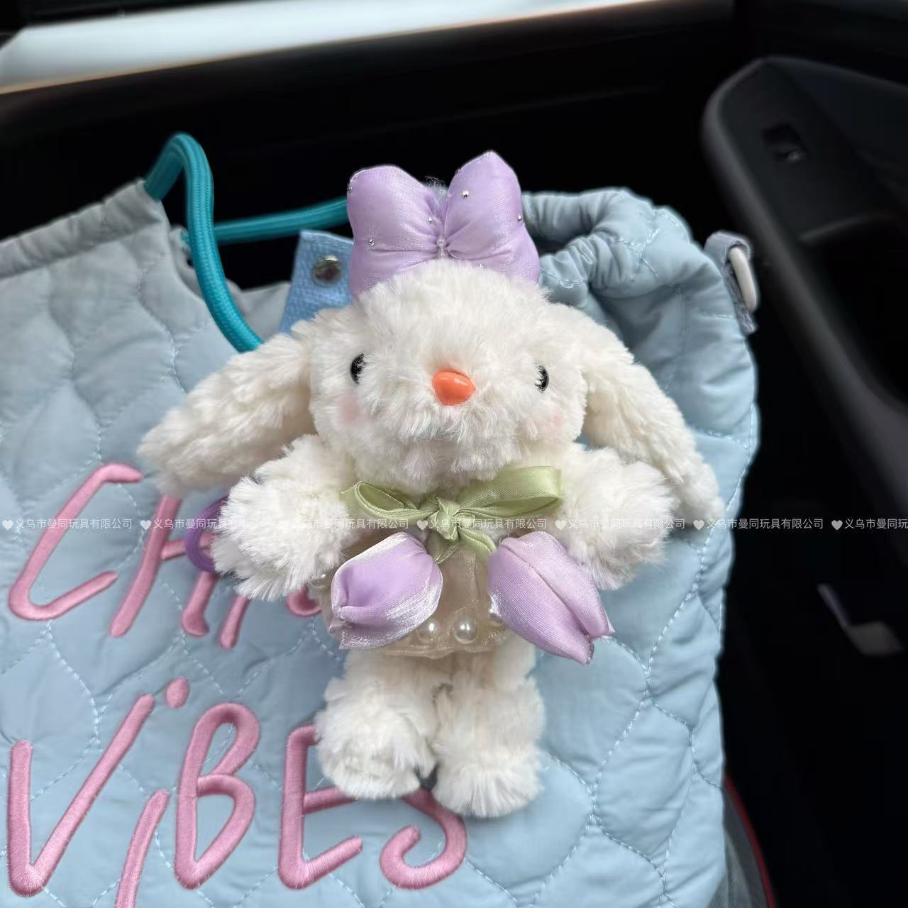 • 보라색 튤립 꽃무늬 스커트 토끼 (핸드스트랩 스타일)