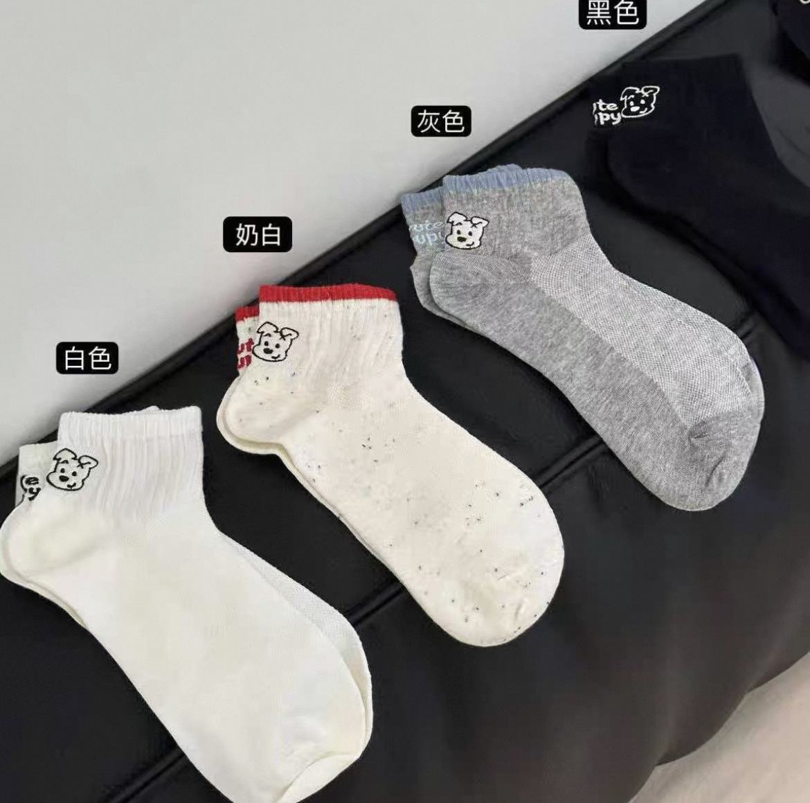 양말 여성 만화 봄 여름 일본 스타일 대학 스타일 귀여운 여성 양말 컬러 원사 강아지 양말 자수 짧은 양말스토어 가기