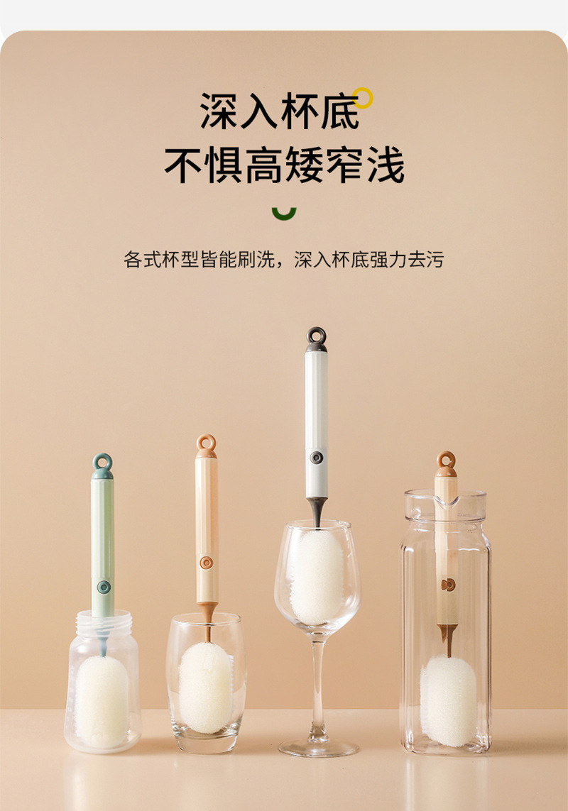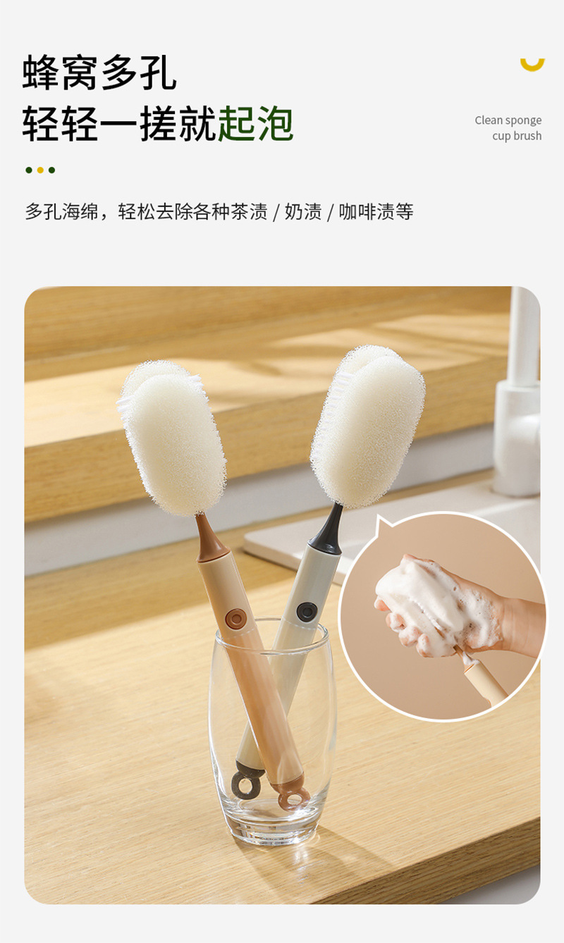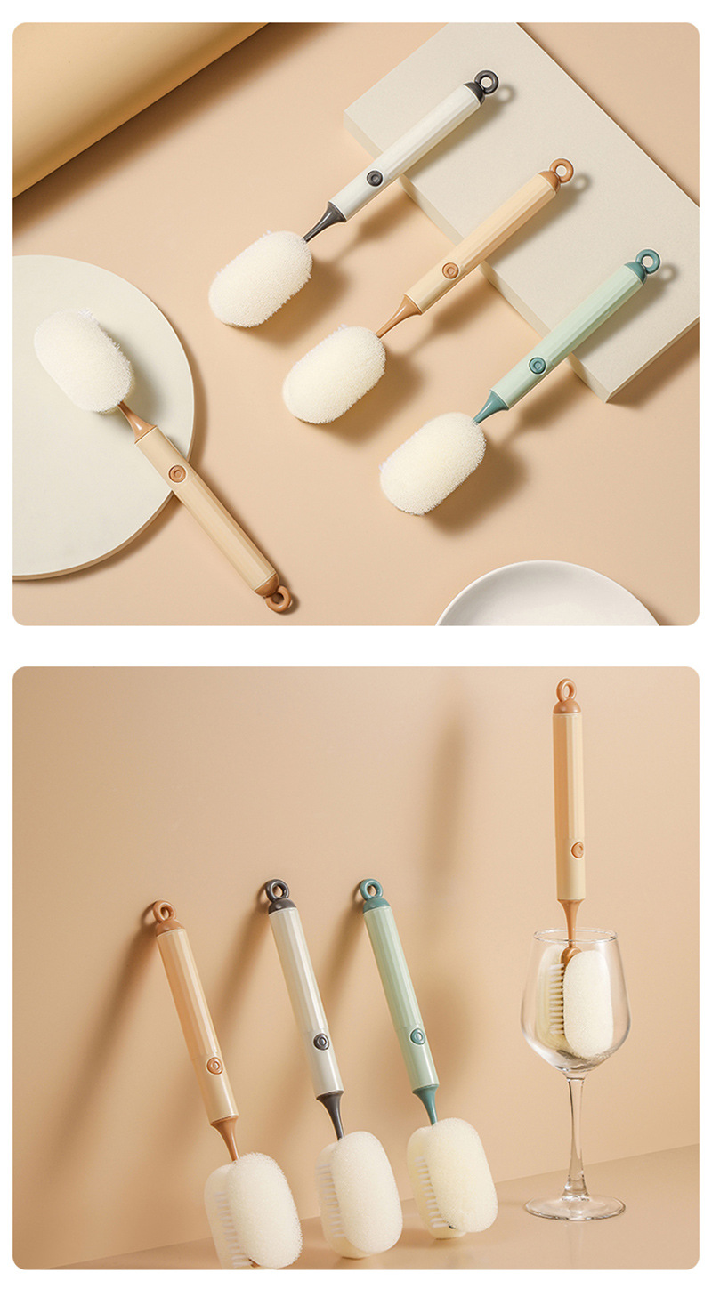 새로운 분리 가능한 컵 브러시 더블 클리닝 브러시 와인 컵 보온병 컵 물 컵 브러시 가정용 PP 스폰지 긴 손잡이 우유 병 브러시
