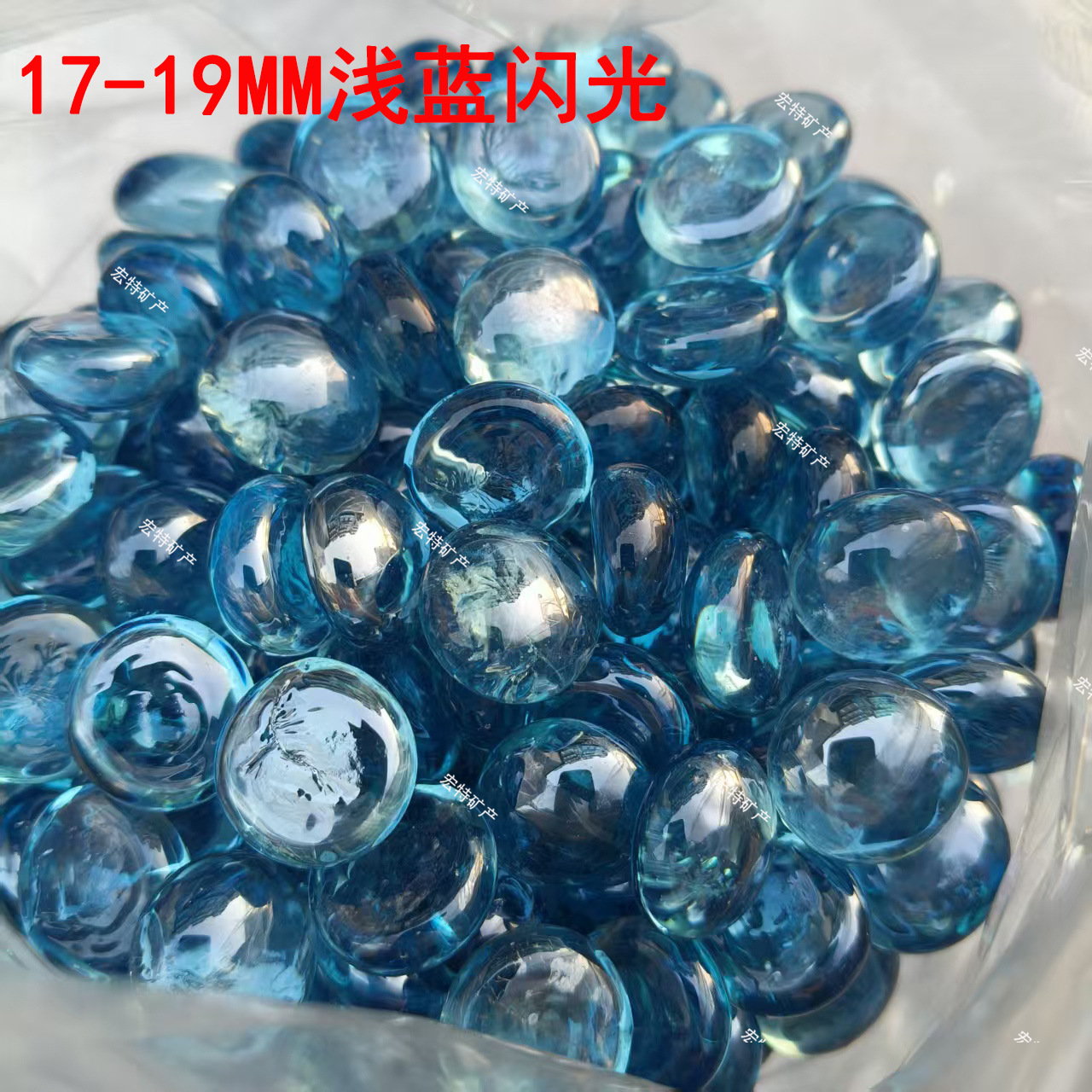 • [17-19mm 라이트 블루 글리터 플랫 비즈] 250g