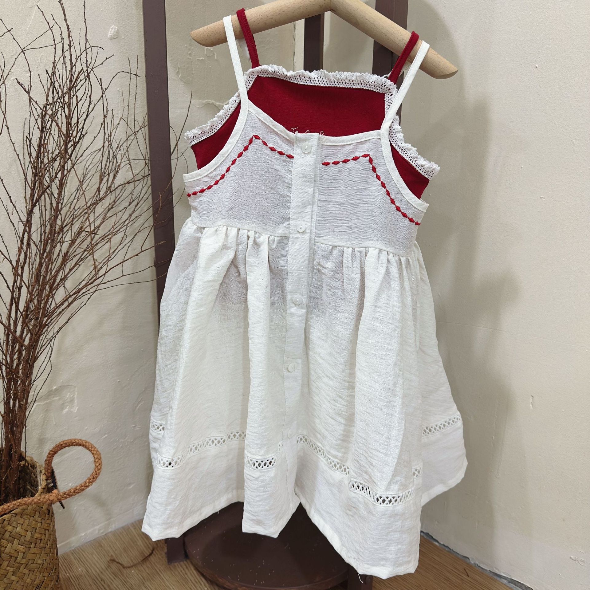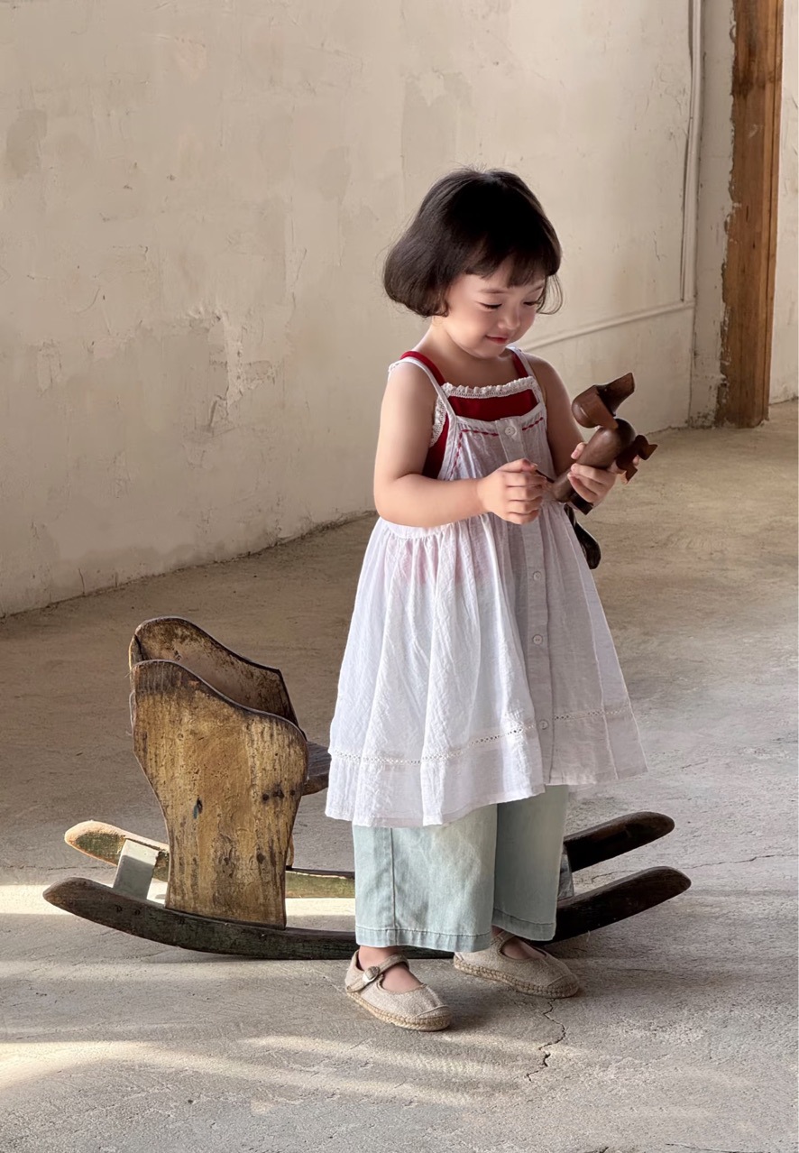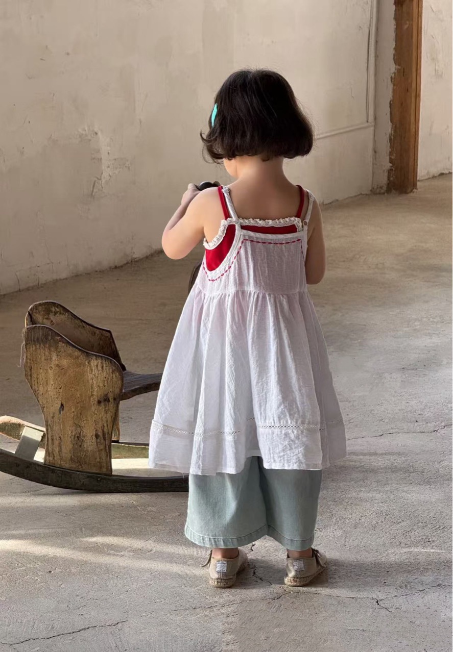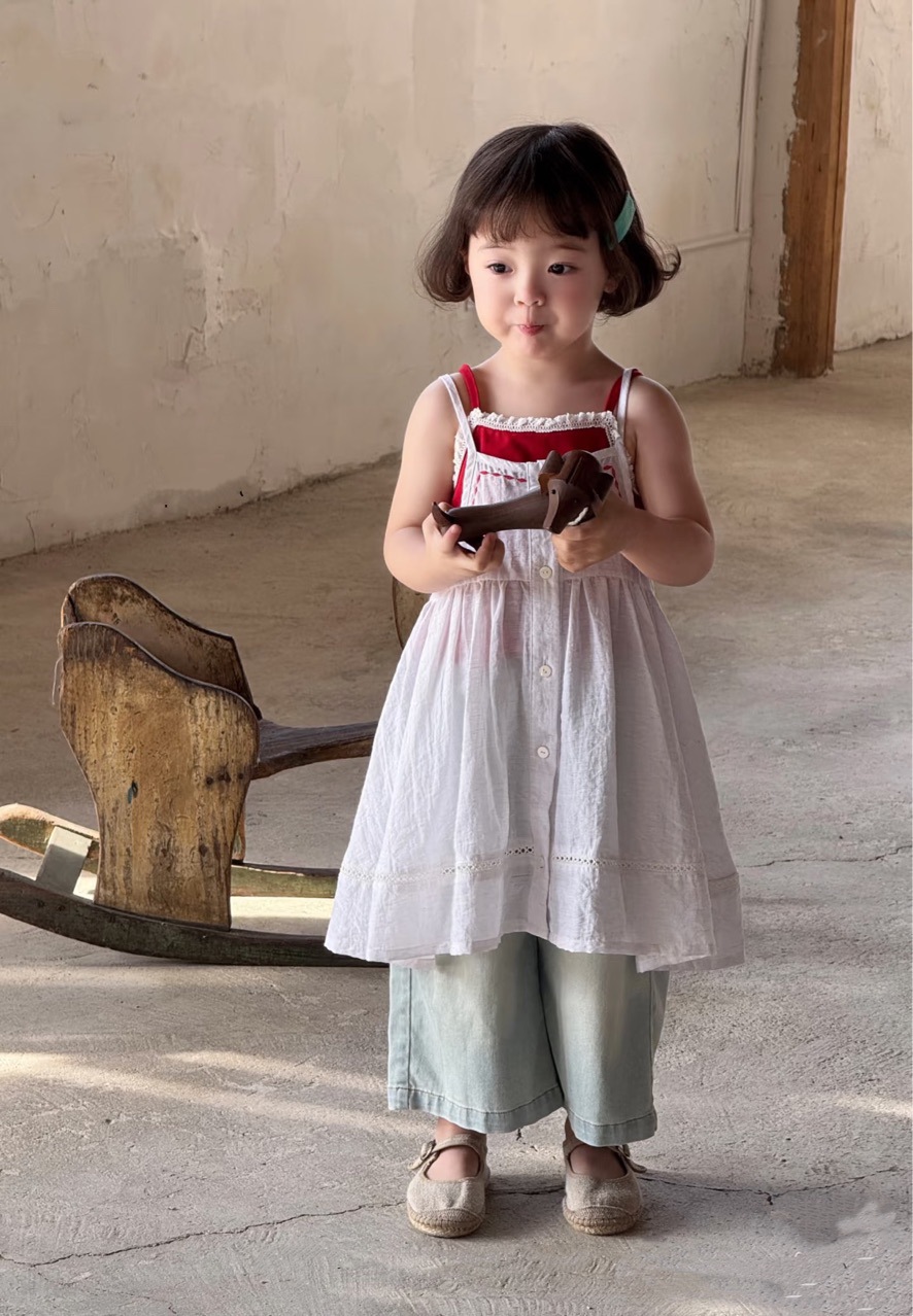 한국 아동복 여아 드레스 2025 여름 아동용 빨간색 캐미솔 다용도 캐미솔 블라우스 다용도 슈트스토어 가기