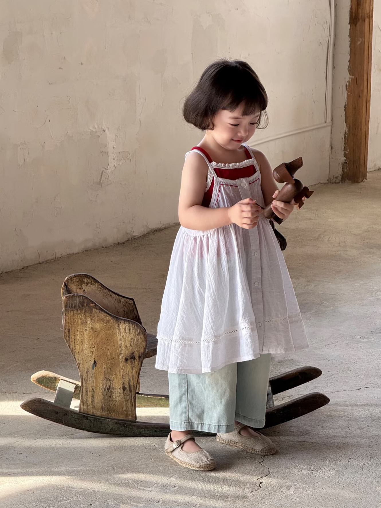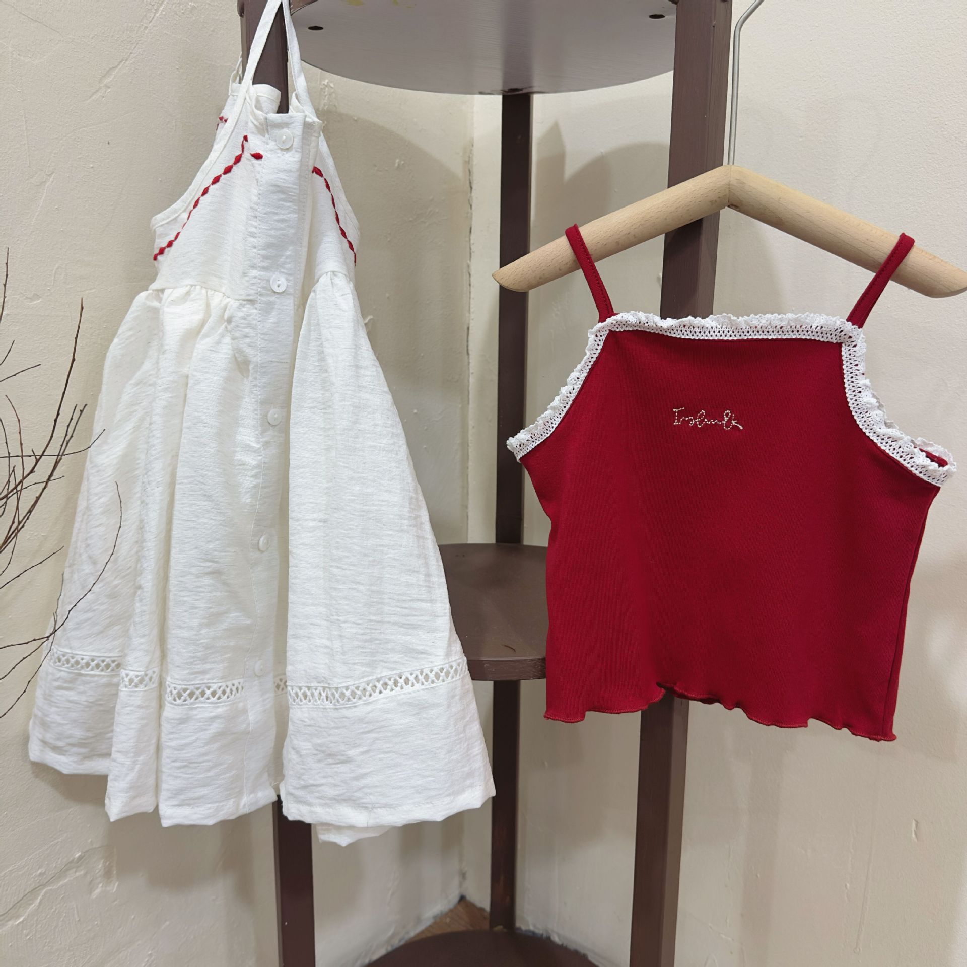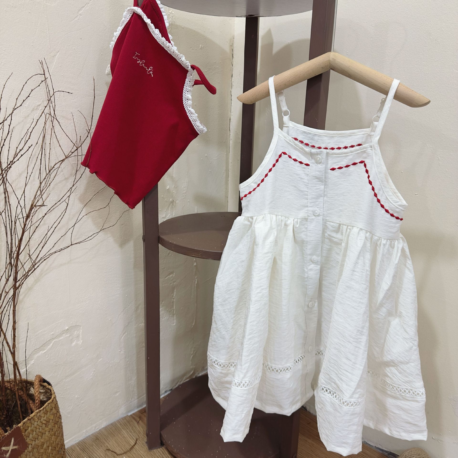 한국 아동복 여아 드레스 2025 여름 아동용 빨간색 캐미솔 다용도 캐미솔 블라우스 다용도 슈트스토어 가기