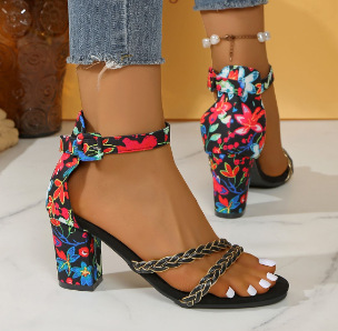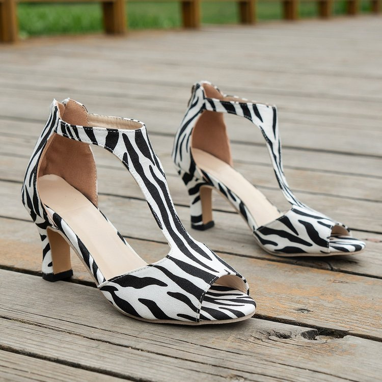 여성용 2025 여름 신상 패션 백 지퍼백 힐과 피쉬 마우스 슈즈, 대외 무역 대형 사이즈 사이드 오픈 슬림 힐 하이힐 샌들스토어 가기
