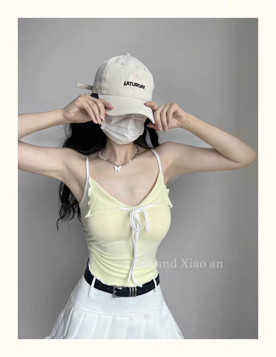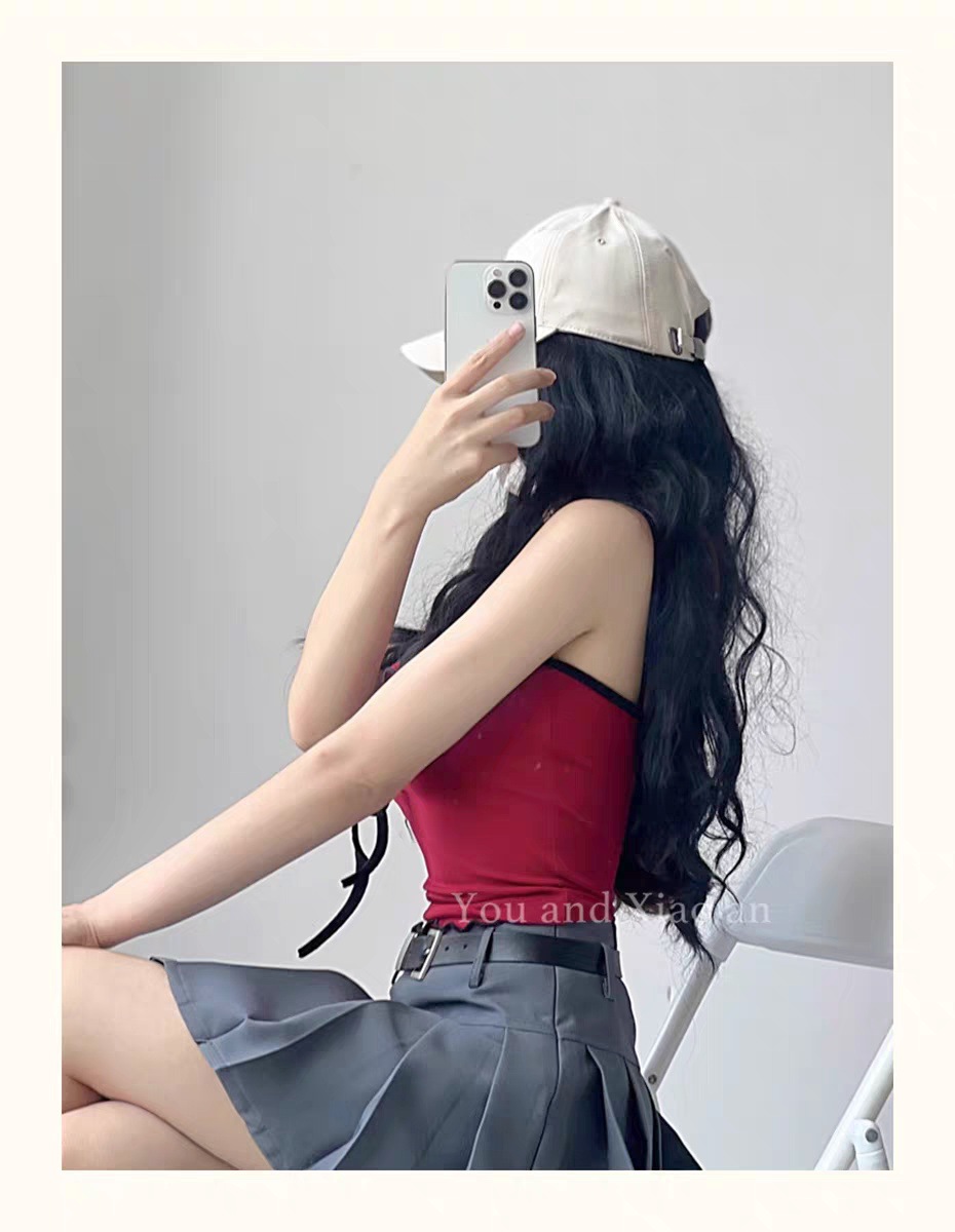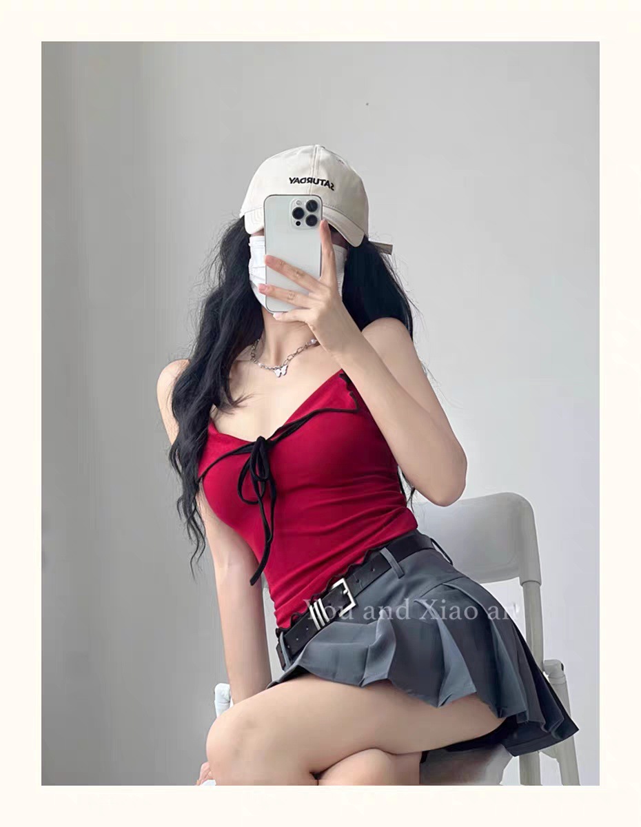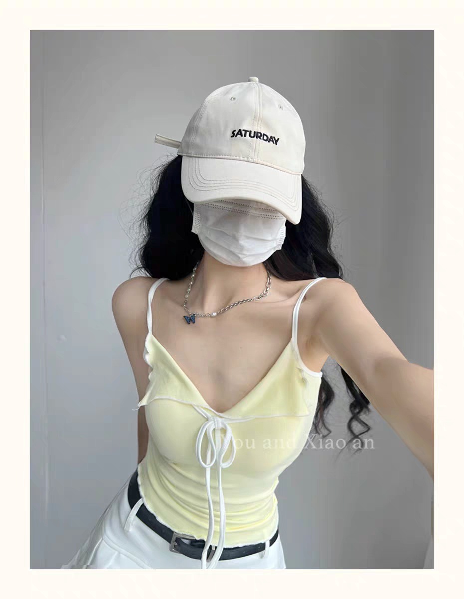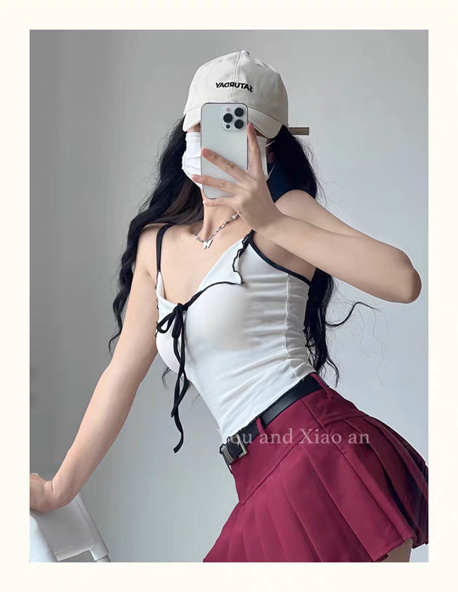 아메리칸 스타일 레트로 핫 걸 섹시 카미솔 여성 여름 웨스턴 스타일 빅 V 넥 디자인 순수한 욕망 민소매 아름다운 백탑스토어 가기