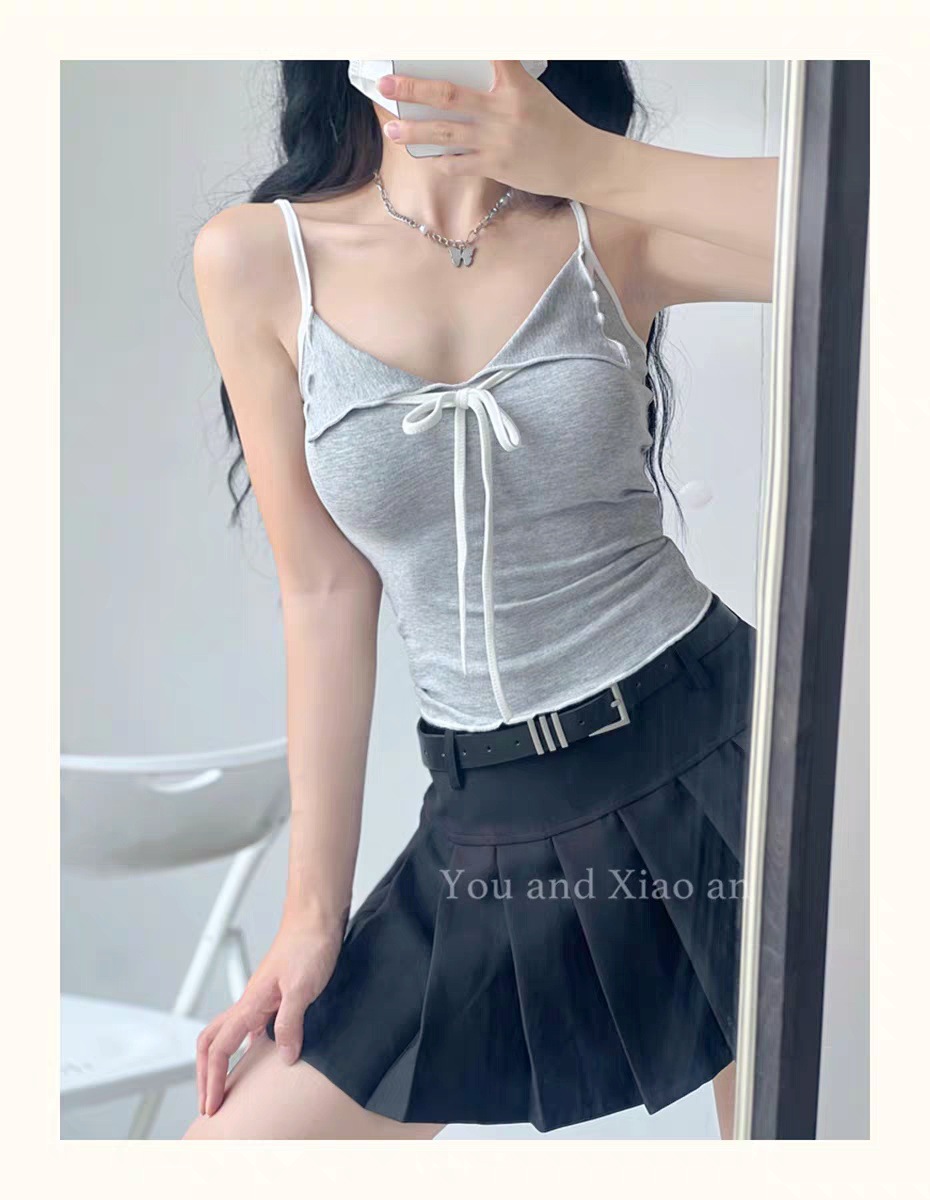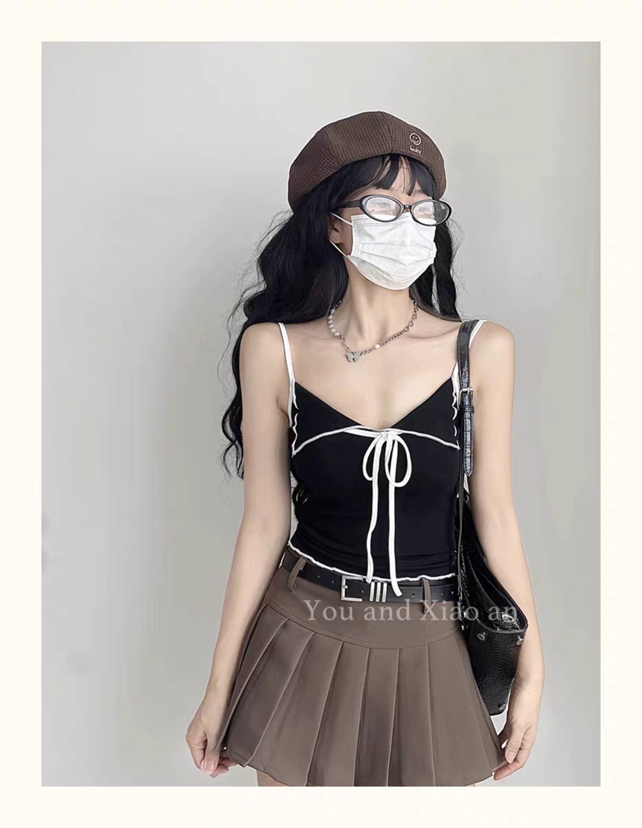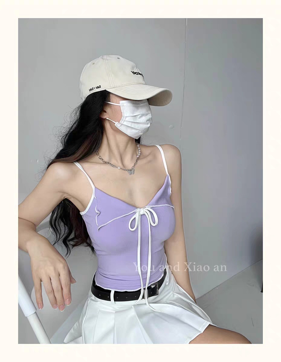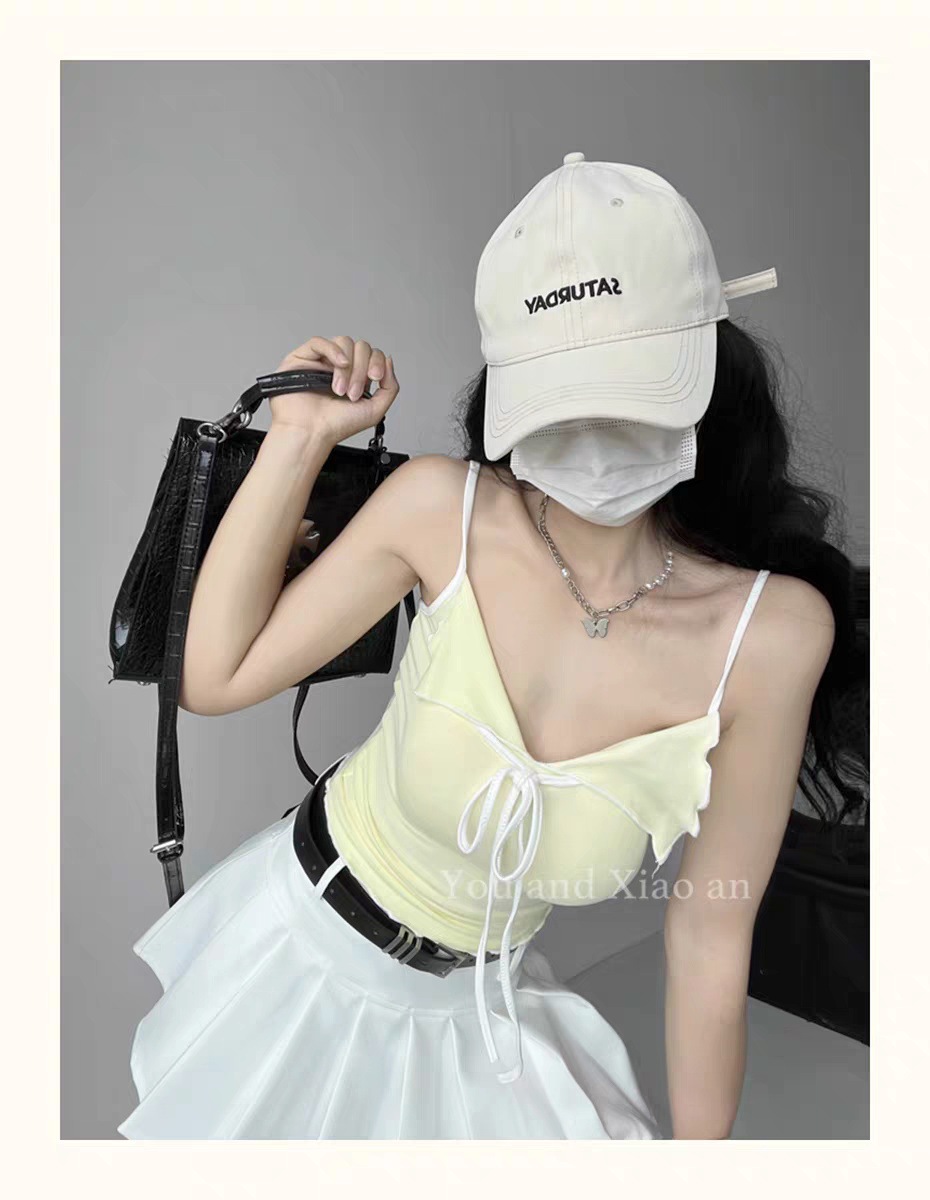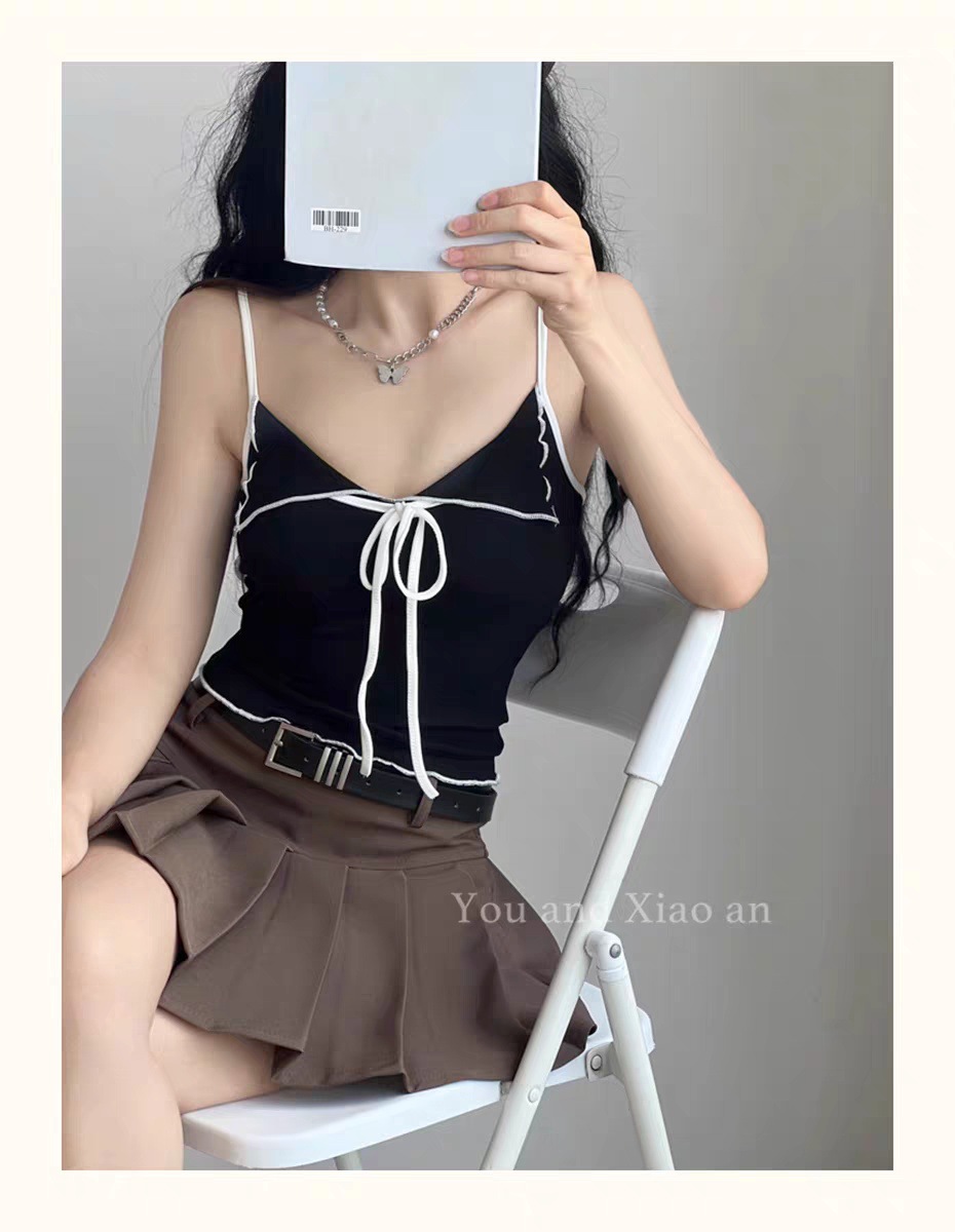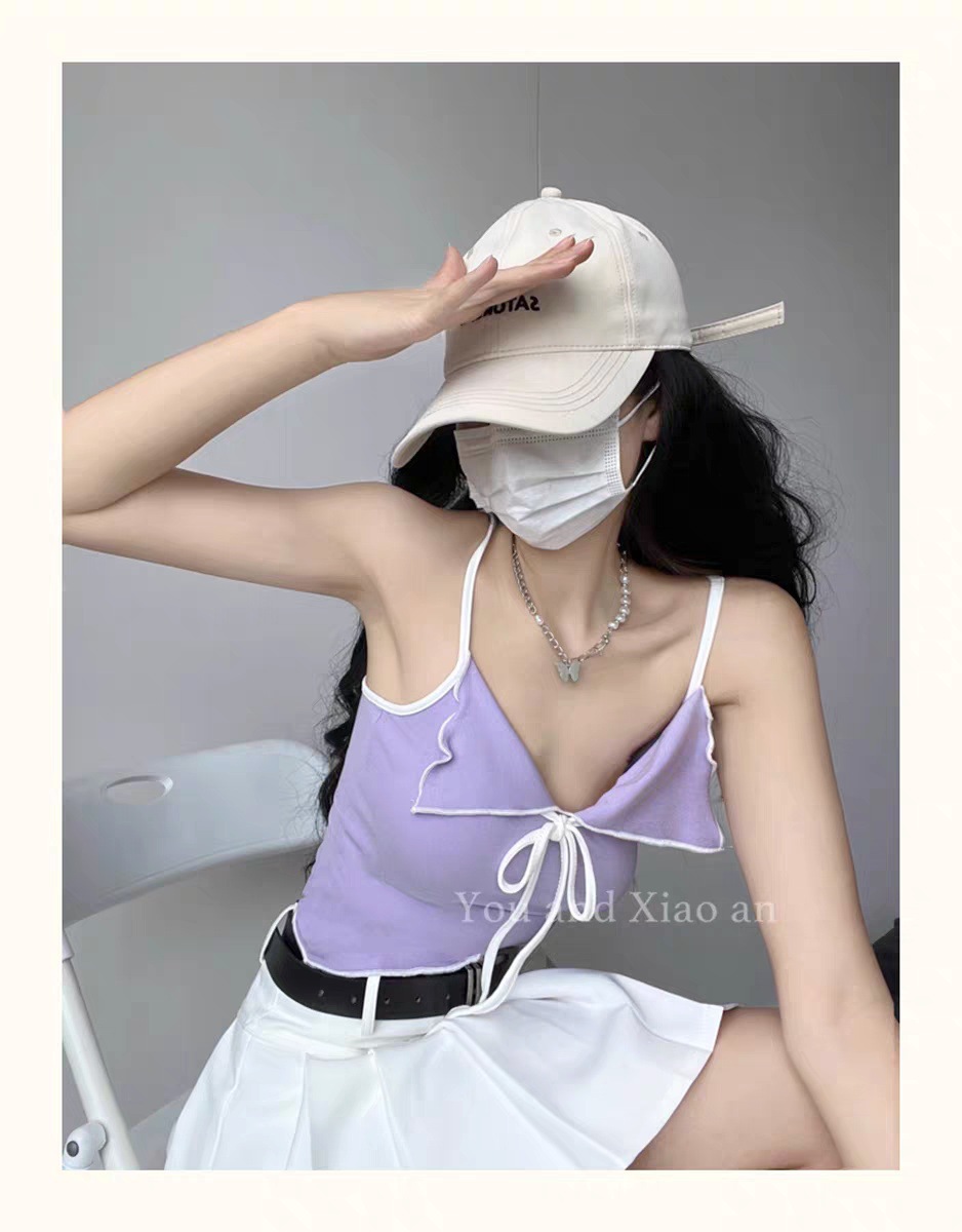 아메리칸 스타일 레트로 핫 걸 섹시 카미솔 여성 여름 웨스턴 스타일 빅 V 넥 디자인 순수한 욕망 민소매 아름다운 백탑스토어 가기