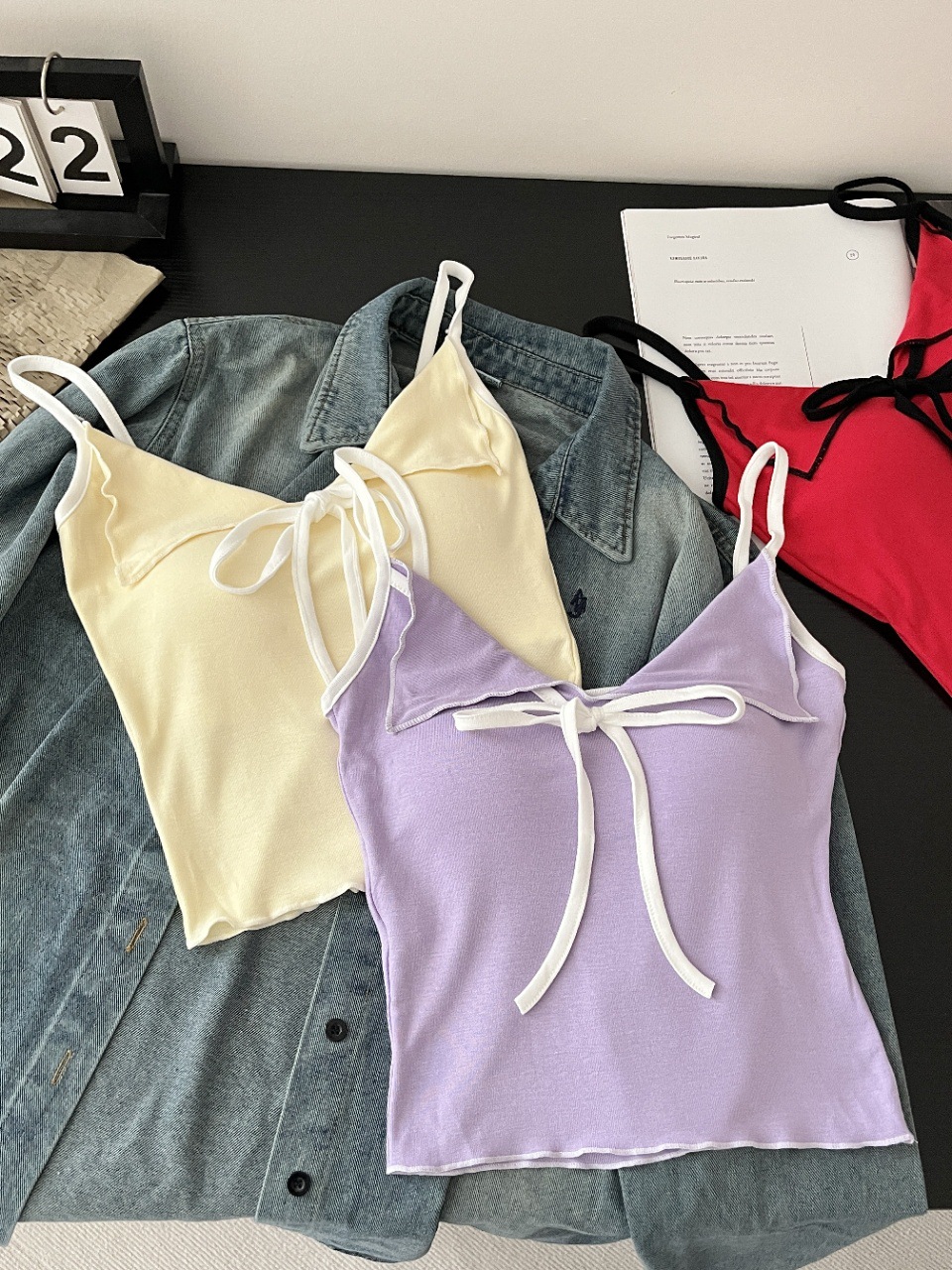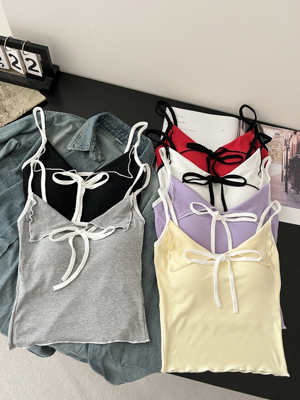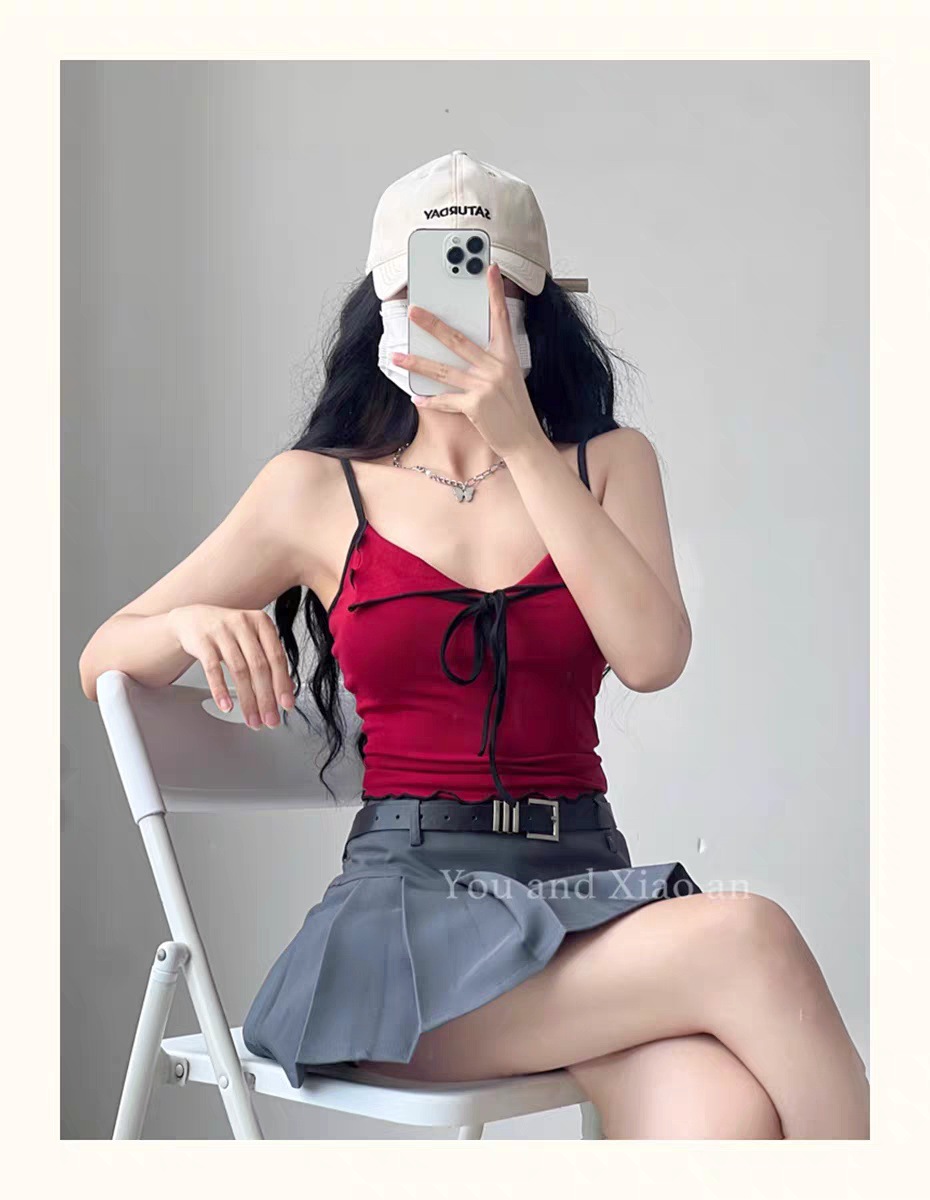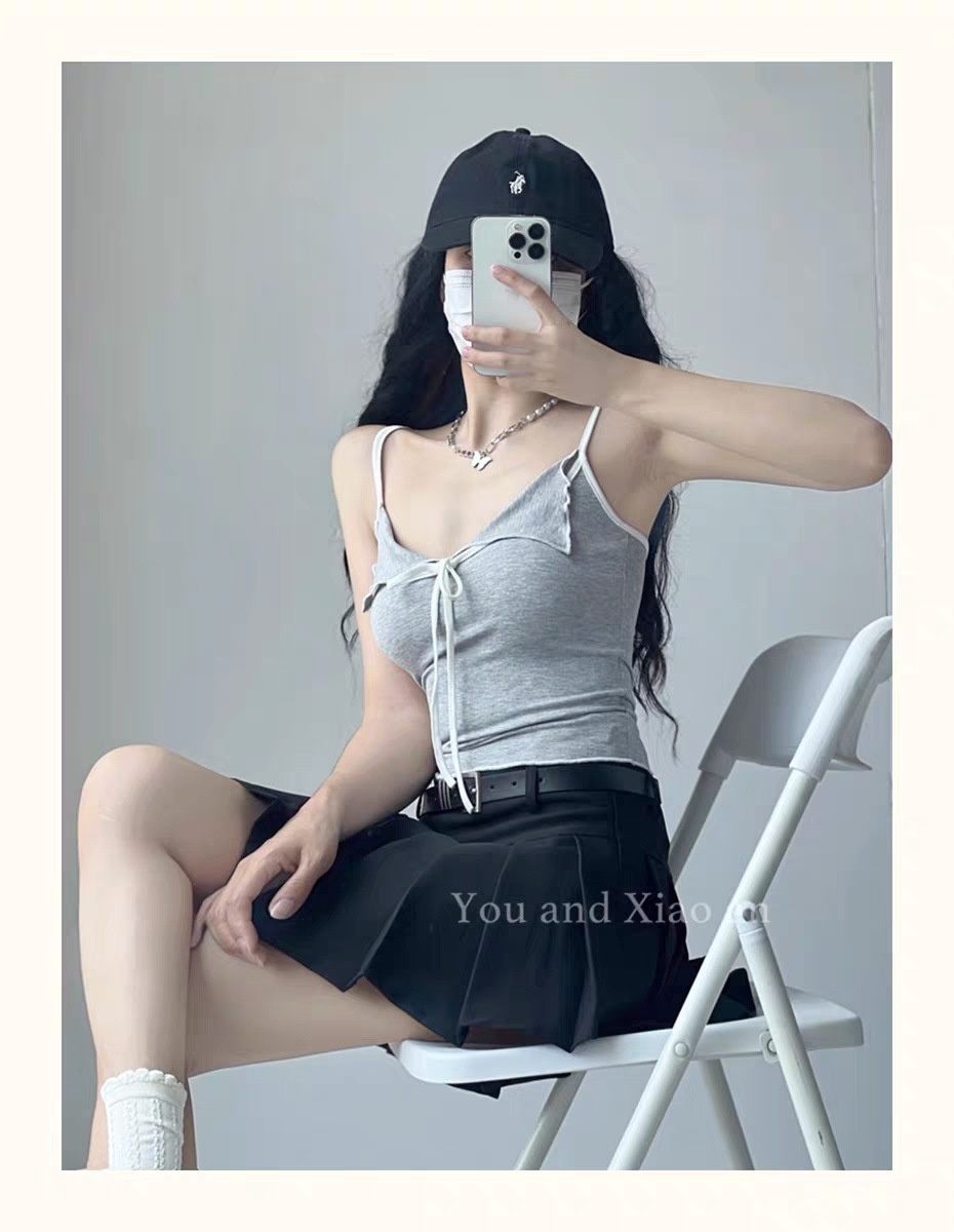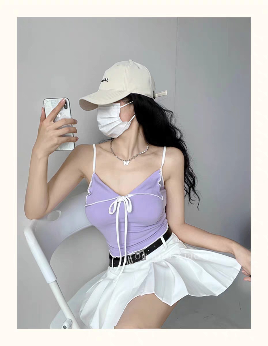 아메리칸 스타일 레트로 핫 걸 섹시 카미솔 여성 여름 웨스턴 스타일 빅 V 넥 디자인 순수한 욕망 민소매 아름다운 백탑스토어 가기