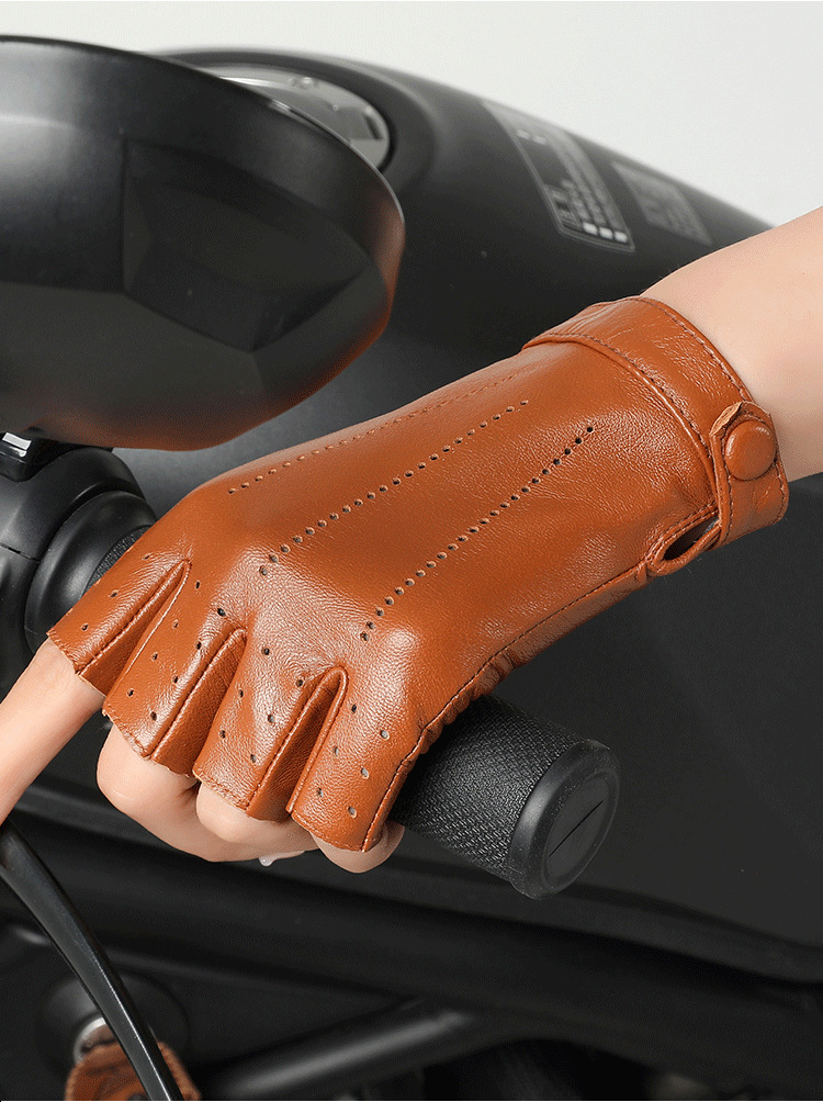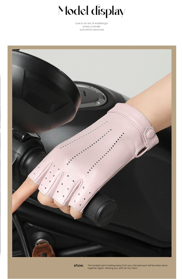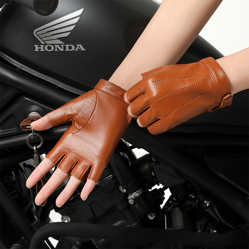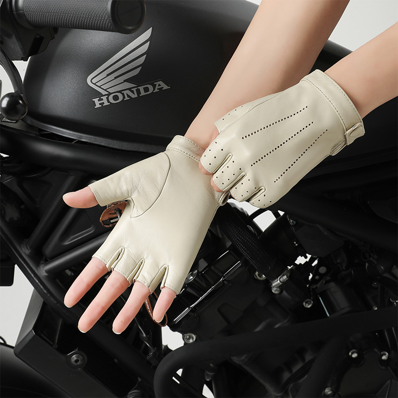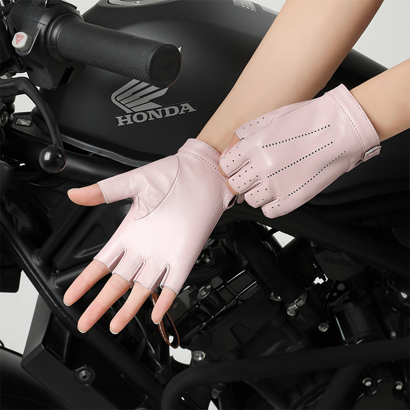 정품 가죽 반 손가락 장갑 여성의 봄과 가을 얇은 통기성 천공 라이딩 오토바이 도로 자전거 탑 레이어 양가죽