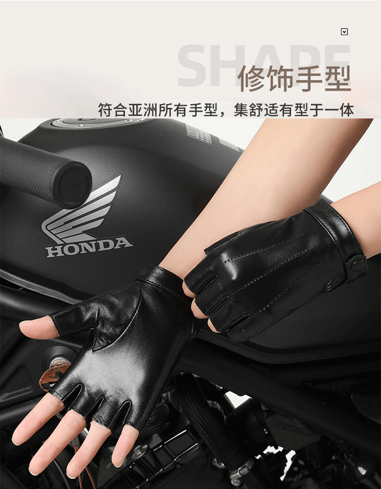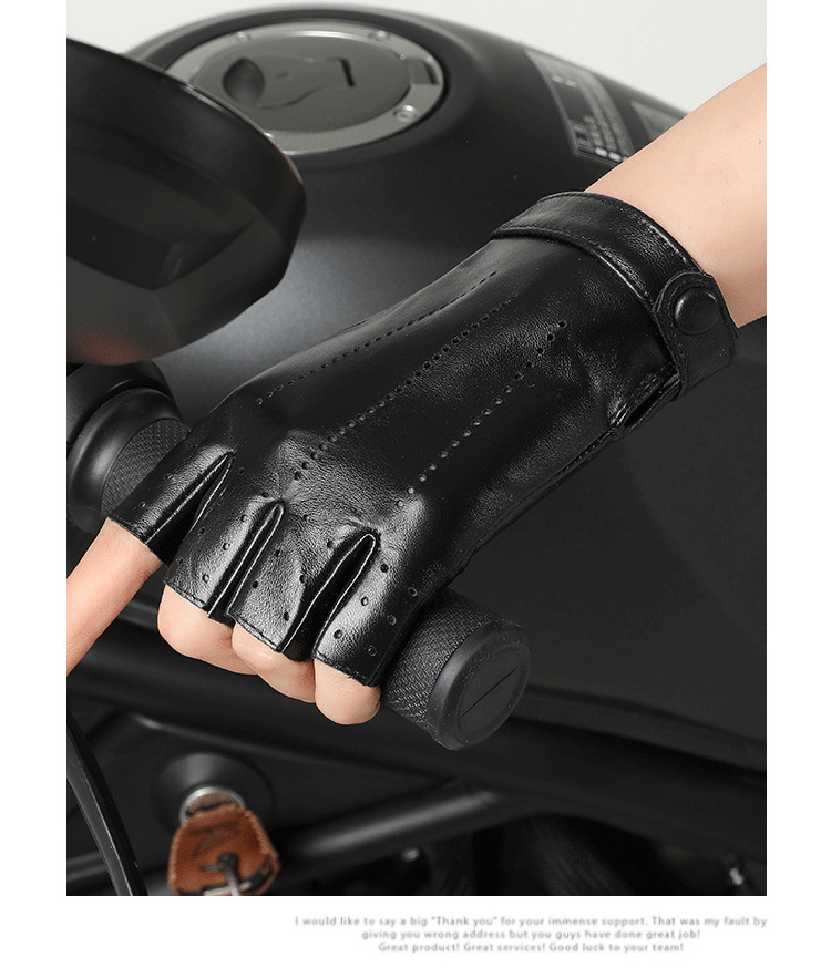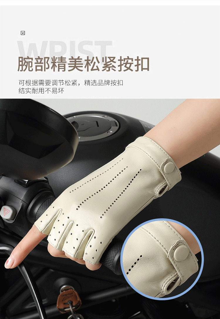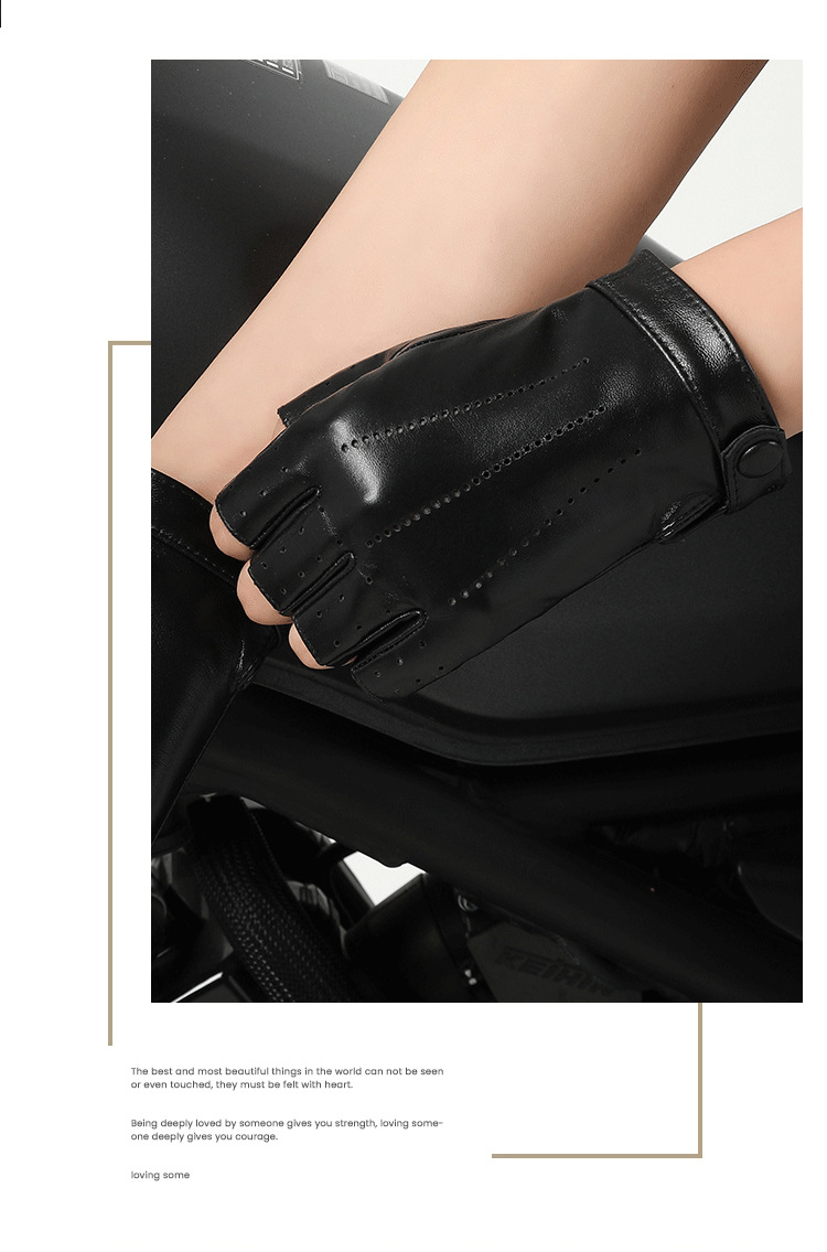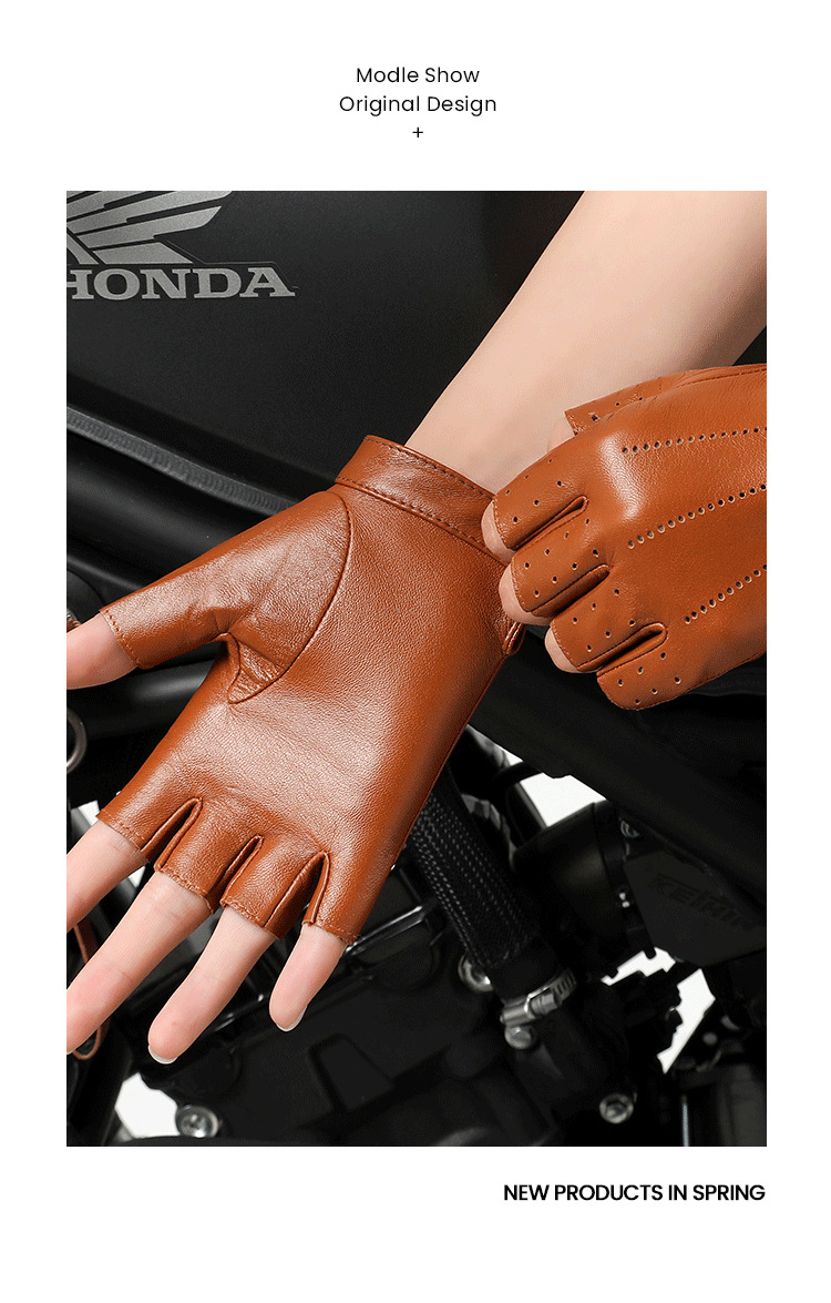 정품 가죽 반 손가락 장갑 여성의 봄과 가을 얇은 통기성 천공 라이딩 오토바이 도로 자전거 탑 레이어 양가죽