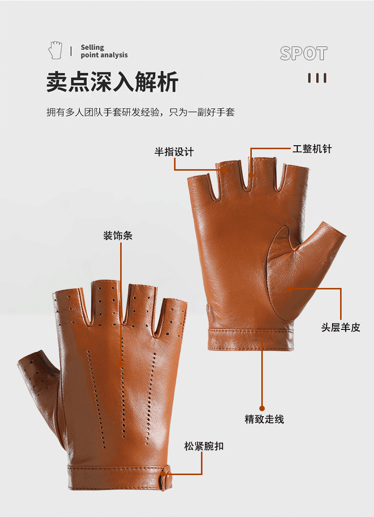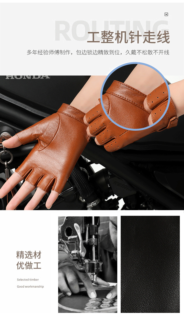 정품 가죽 반 손가락 장갑 여성의 봄과 가을 얇은 통기성 천공 라이딩 오토바이 도로 자전거 탑 레이어 양가죽스토어 가기