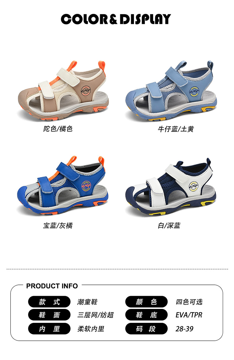 어린이 샌들 2025 여름 통기성 소년 스포츠 어린이 미끄럼 방지 충돌 방지 발가락 신발 도매 국경 간 대외 무역스토어 가기