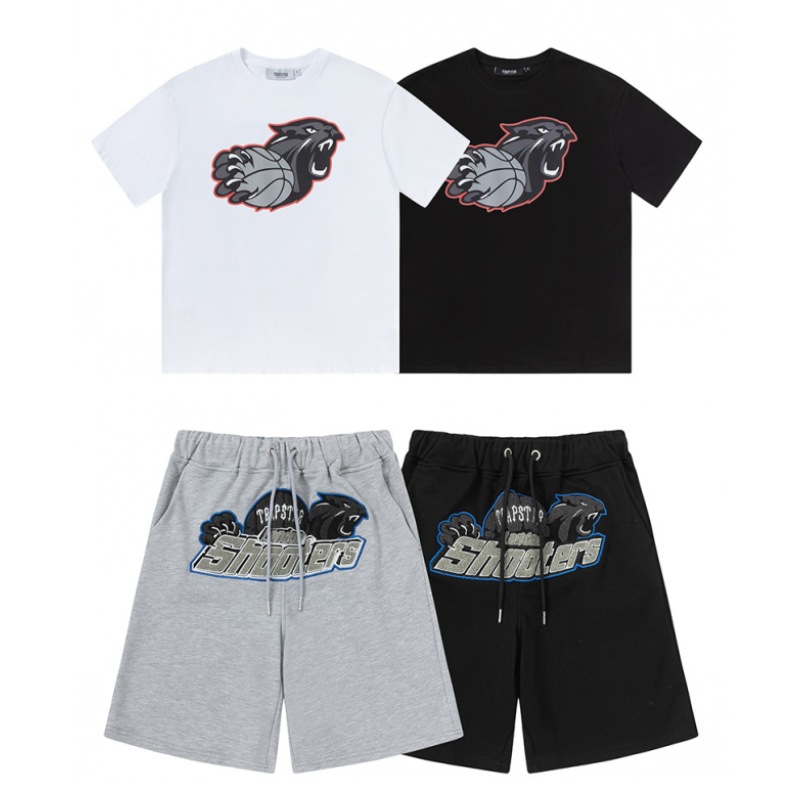 국경 도매 트랩 스타 호랑이 머리 자수 반바지 세트 여름 반팔 티셔츠 스포츠 캐주얼 바지스토어 가기