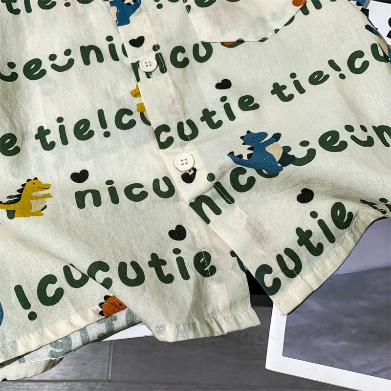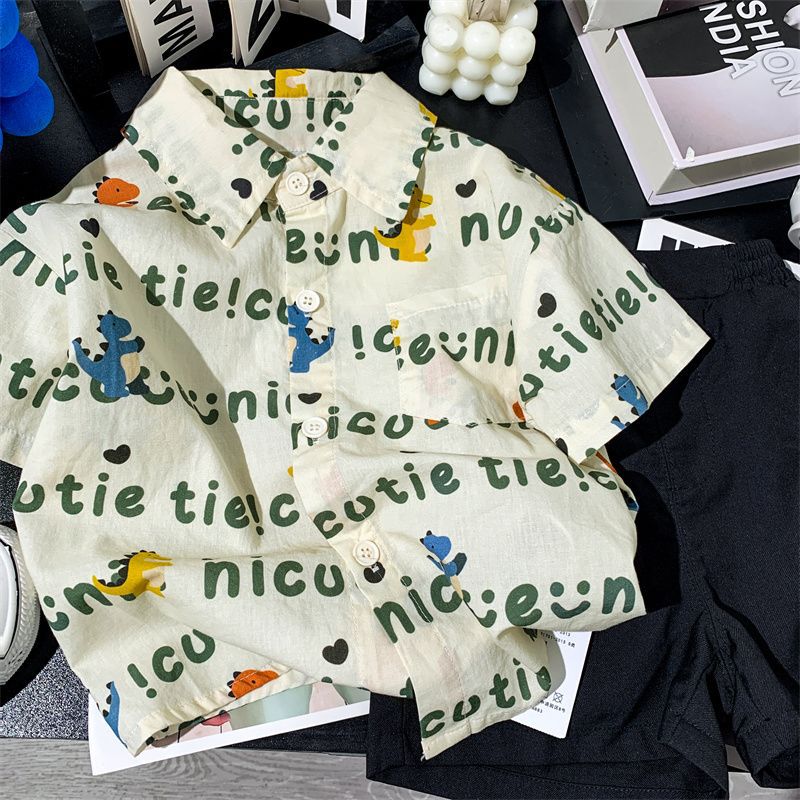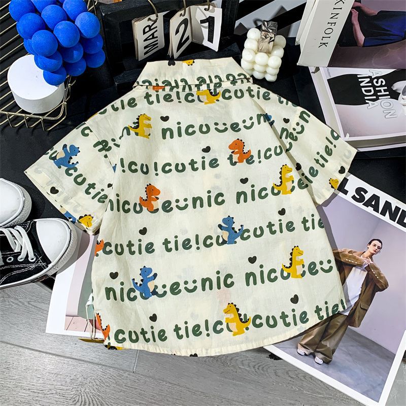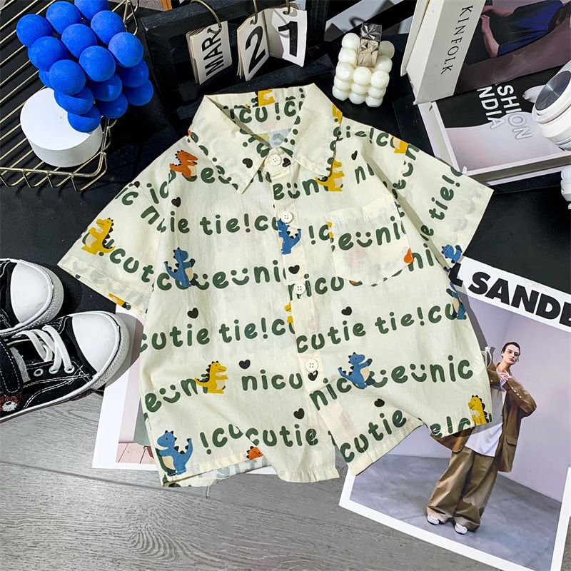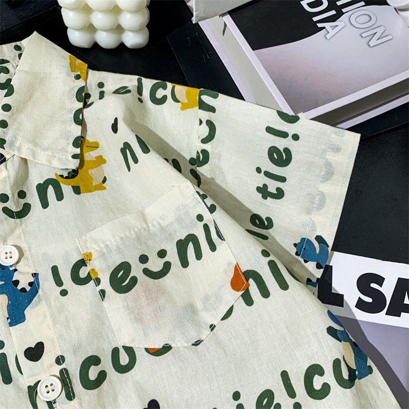 소년 여름 셔츠 반팔 2025 여름 얇은 어린이 편지 전체 인쇄 셔츠 아기 스타일 캐주얼 반팔