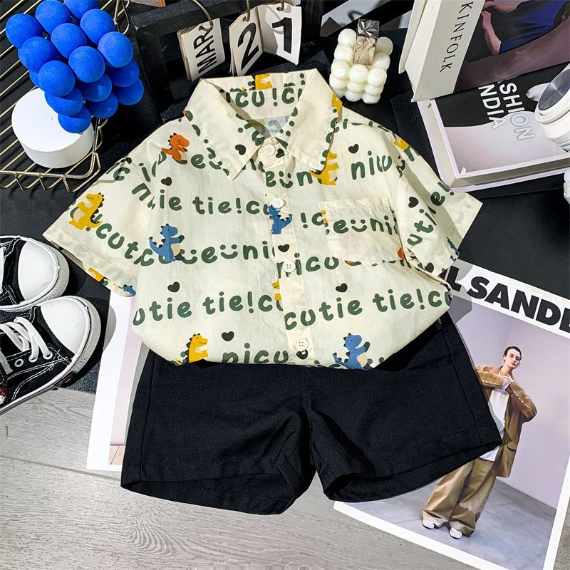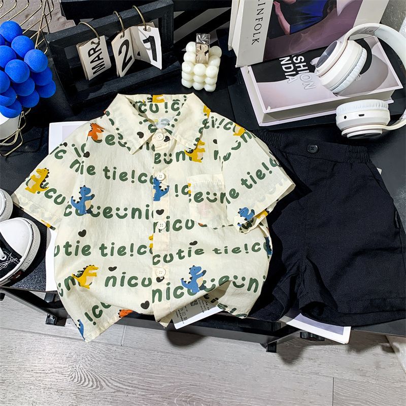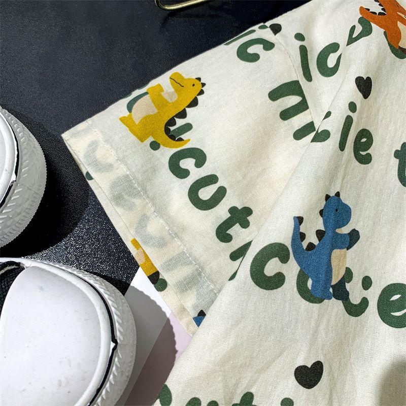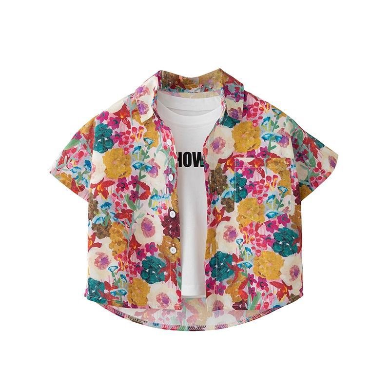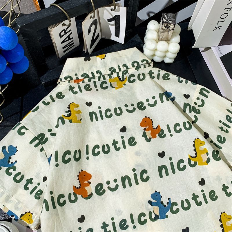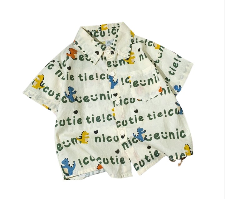 소년 여름 셔츠 반팔 2025 여름 얇은 어린이 편지 전체 인쇄 셔츠 아기 스타일 캐주얼 반팔