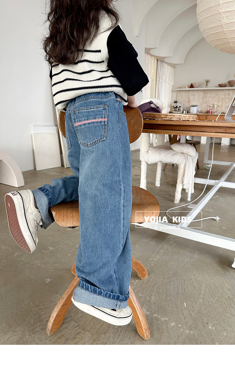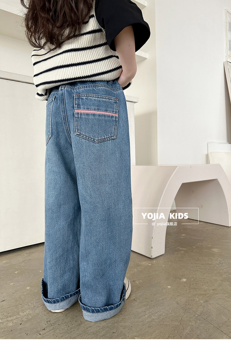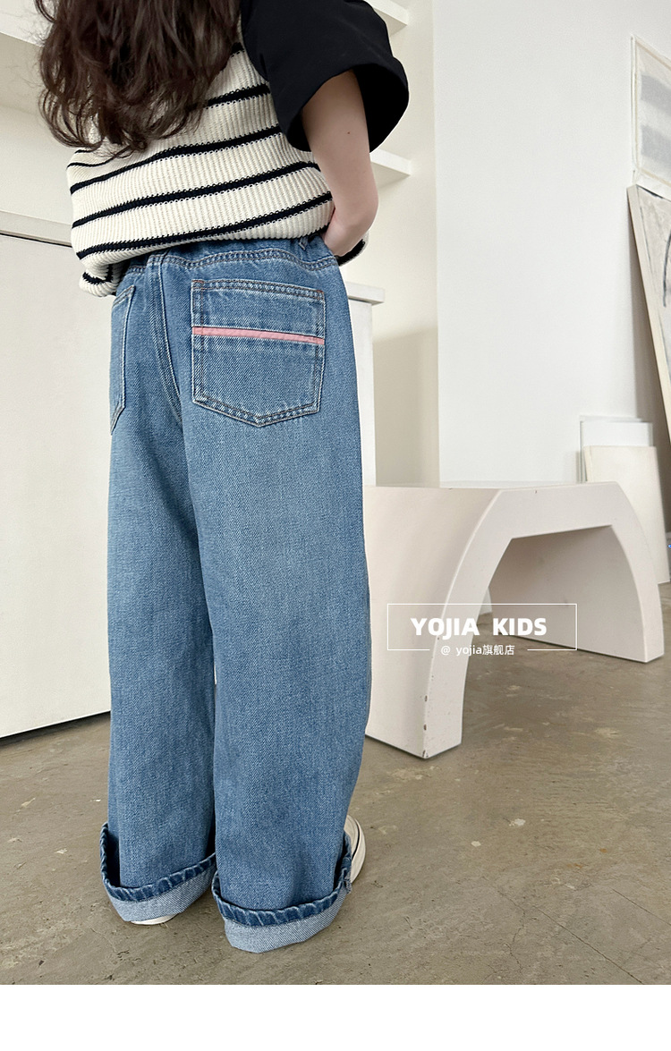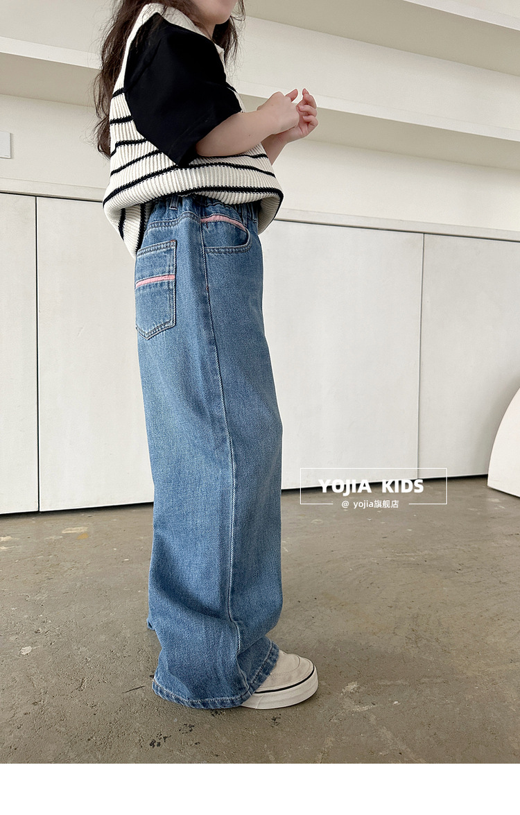 YOJIA 소녀 넓은 다리 바지 봄 2025 새로운 서양식 한국 중형 및 대형 어린이 청바지 어린이 봄 바지스토어 가기