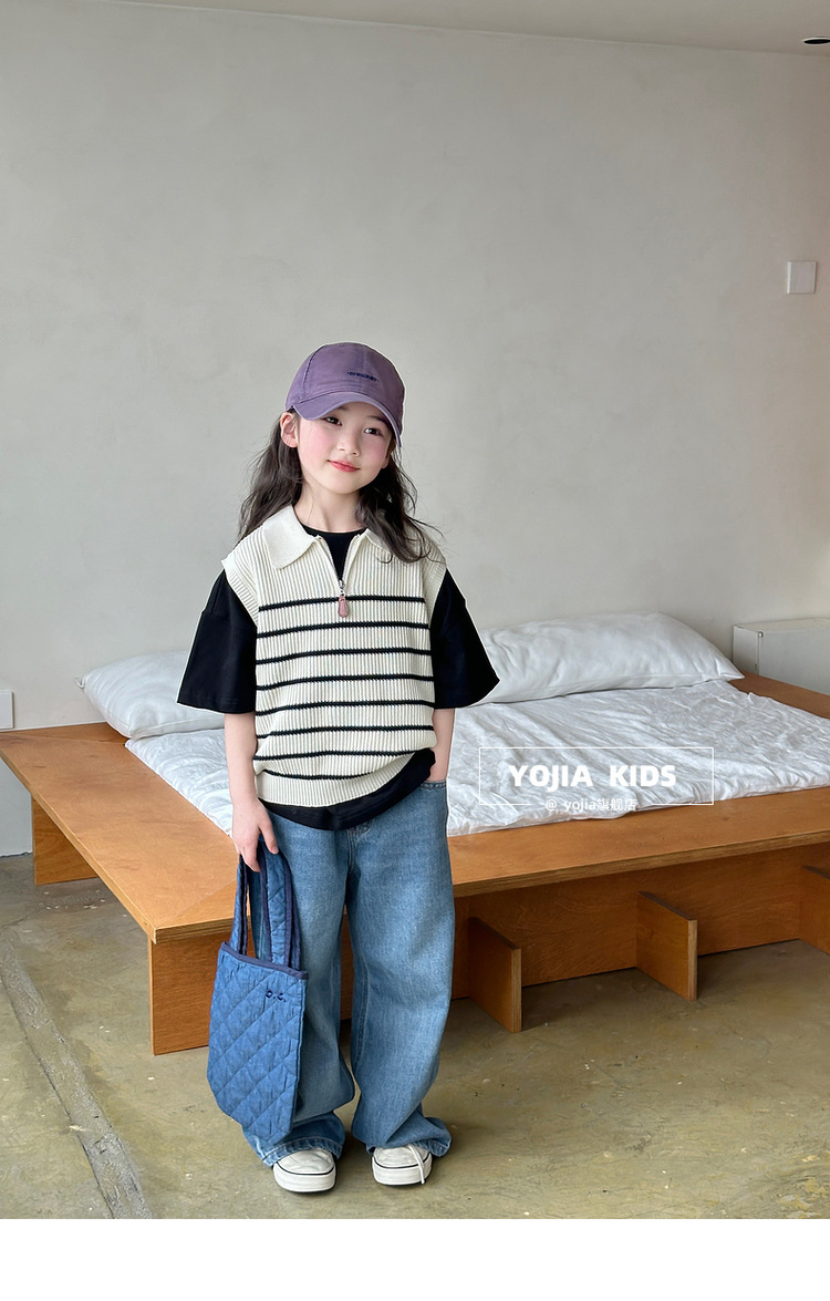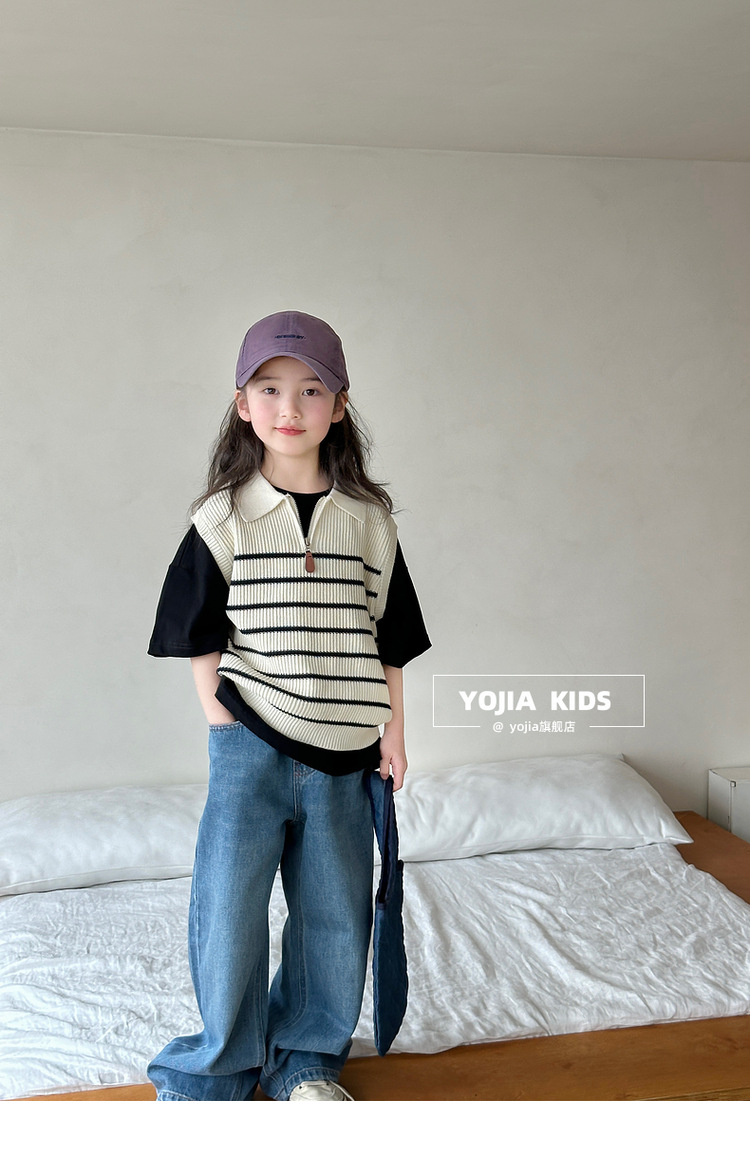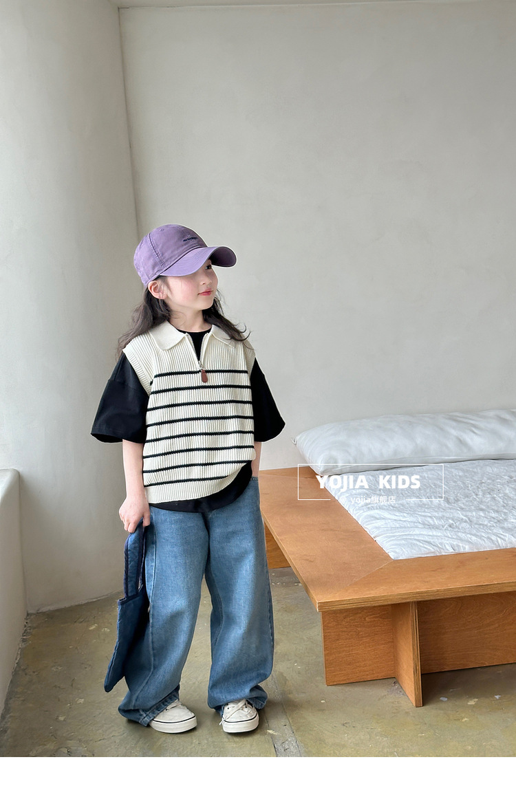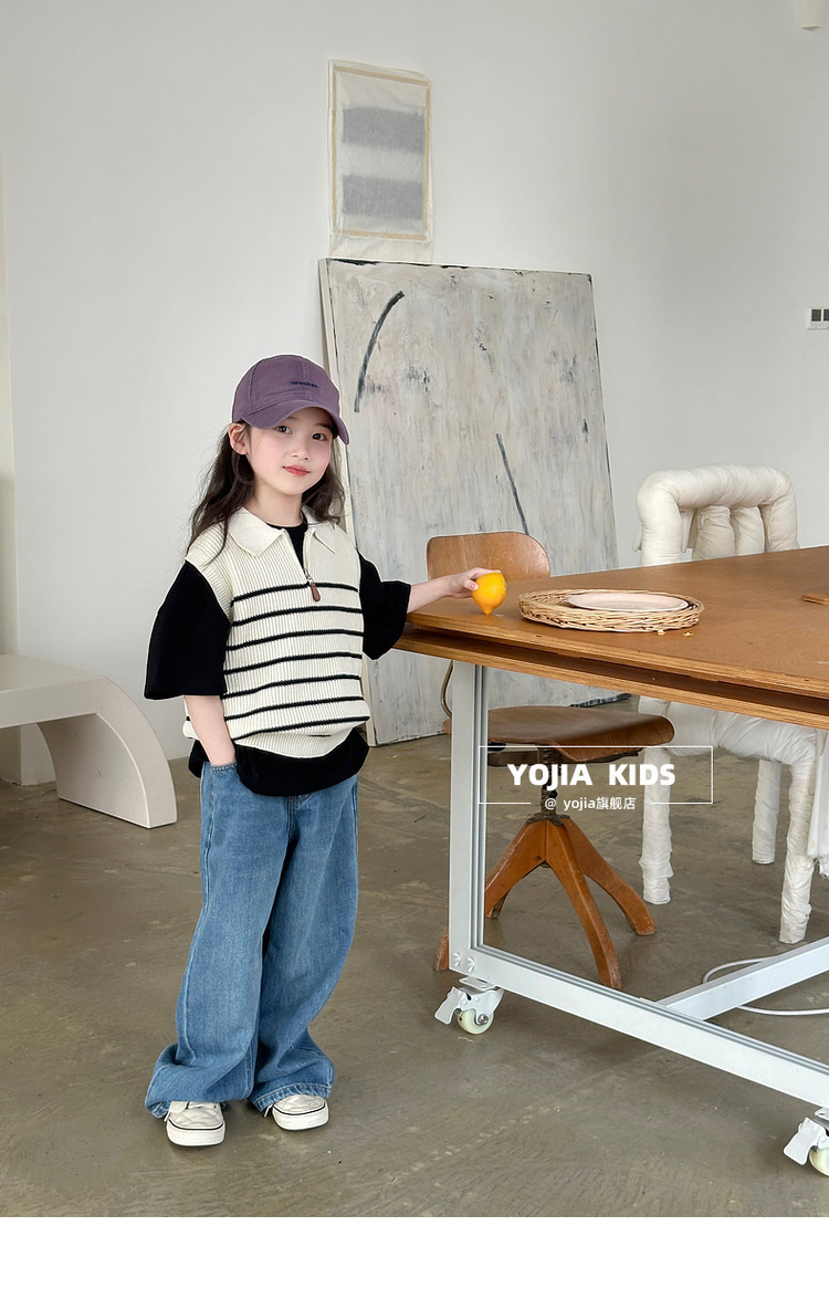 YOJIA 소녀 넓은 다리 바지 봄 2025 새로운 서양식 한국 중형 및 대형 어린이 청바지 어린이 봄 바지스토어 가기