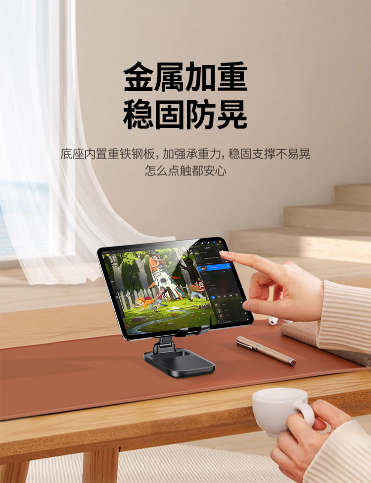 공장 도매 올메탈 휴대폰 거치대, 라이브 방송용 태블릿 거치대, 데스크탑 높이 조절 가능 접이식 회전형 레이지 거치대스토어 가기