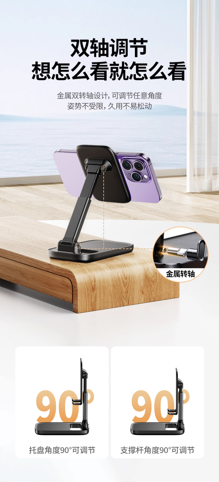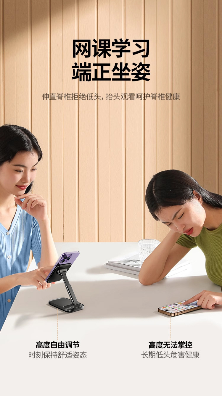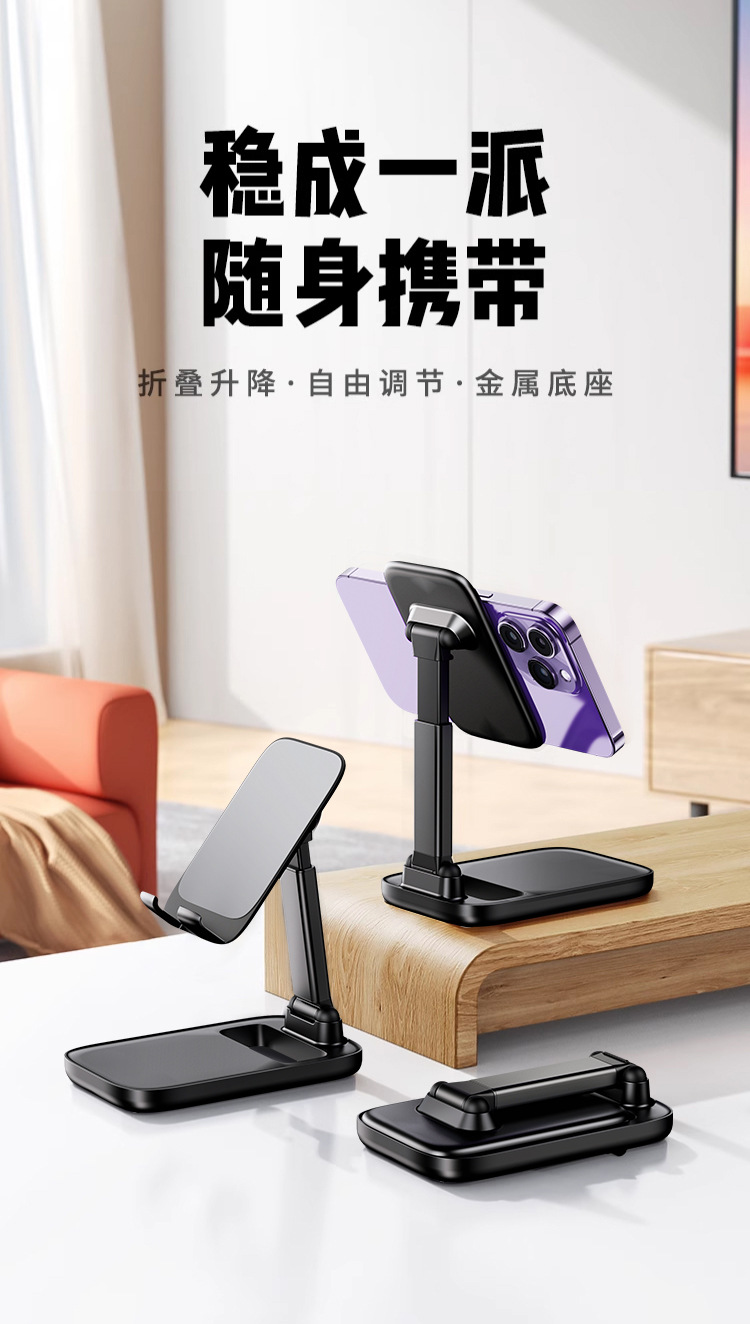 공장 도매 올메탈 휴대폰 거치대, 라이브 방송용 태블릿 거치대, 데스크탑 높이 조절 가능 접이식 회전형 레이지 거치대