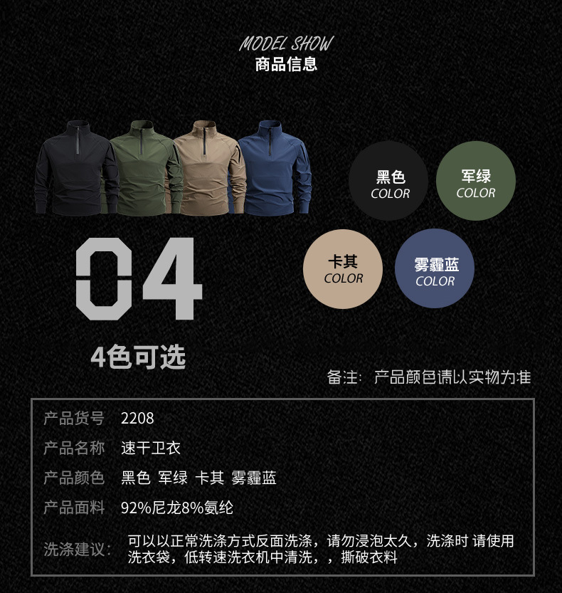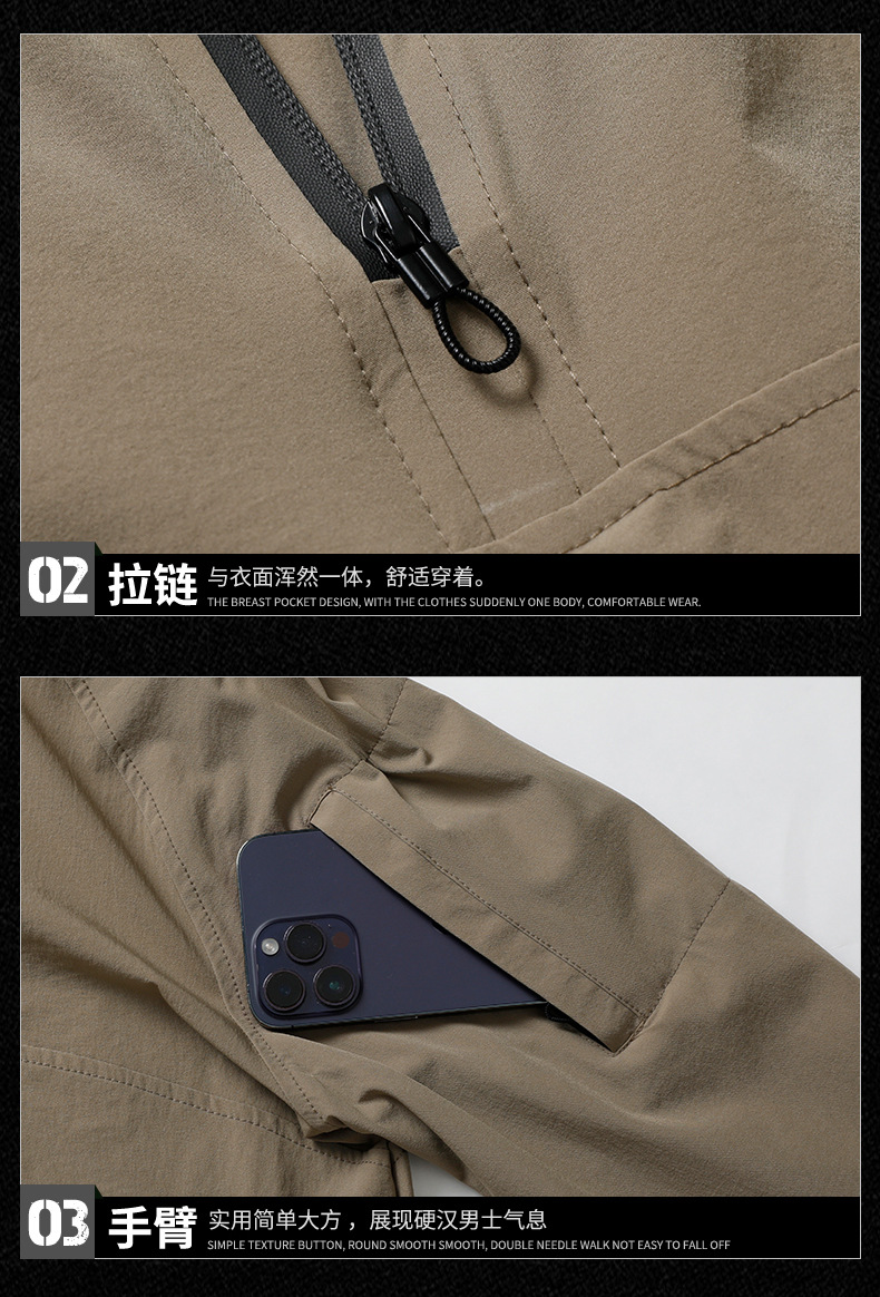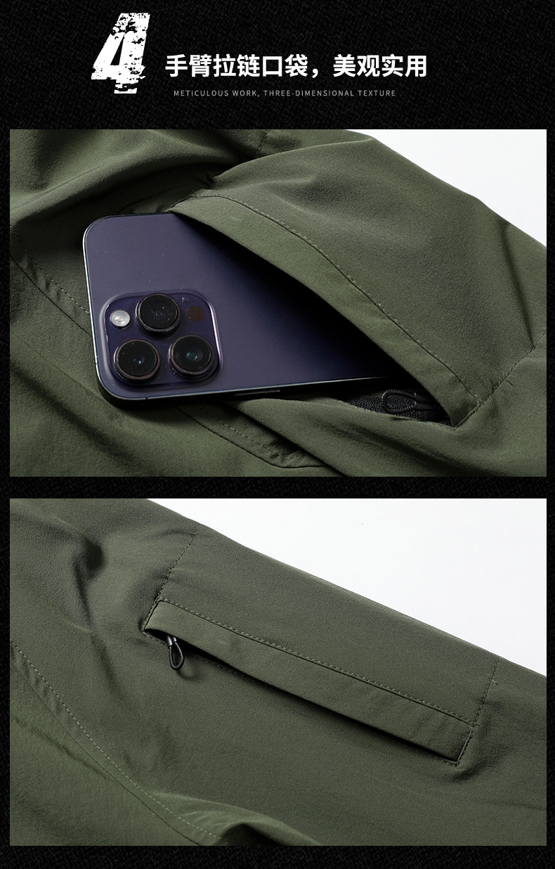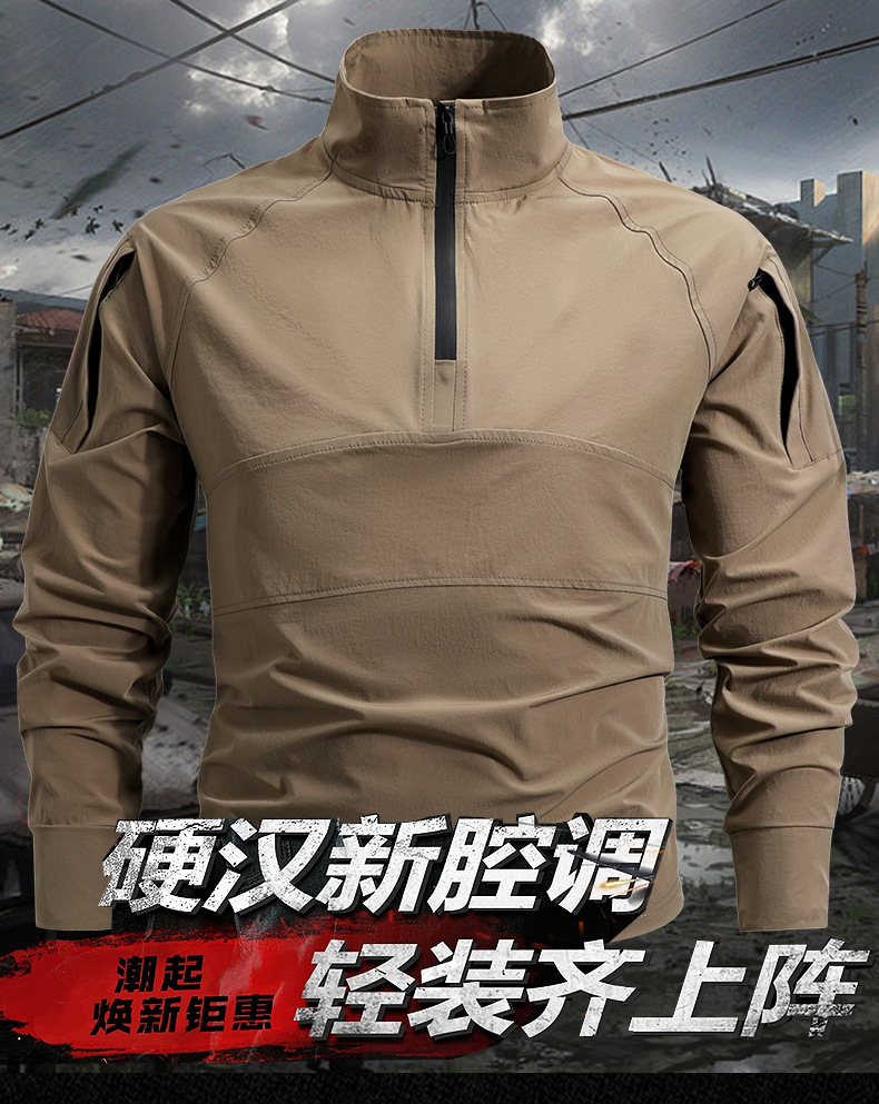 봄과 가을 새로운 야외 레저 스포츠 스탠드 칼라 긴팔 스웨터 아이스 실크 탄성 빠른 건조 남성 지퍼 포켓 티셔츠스토어 가기