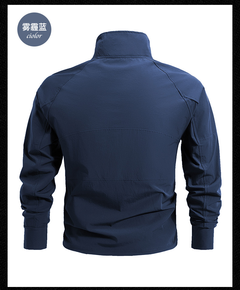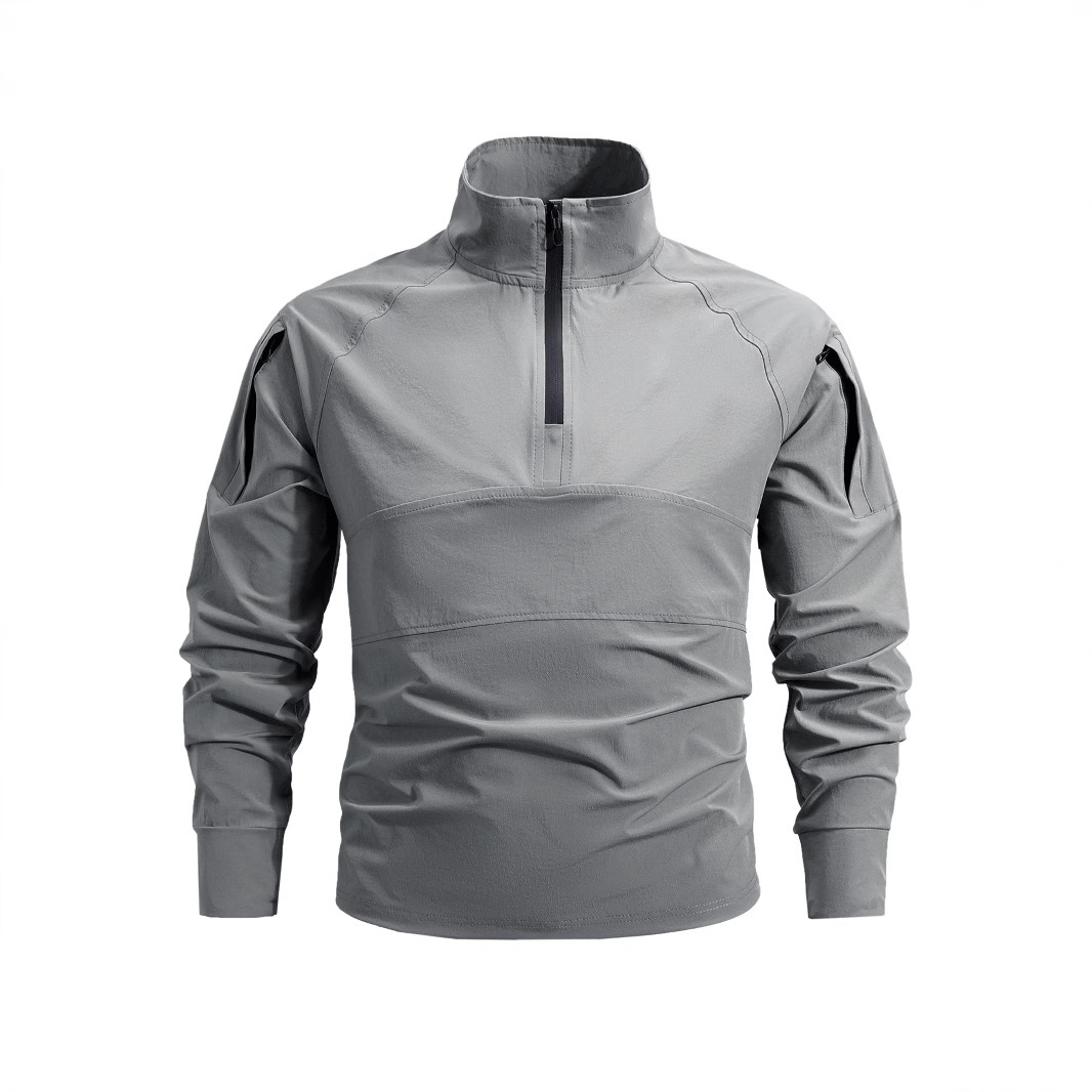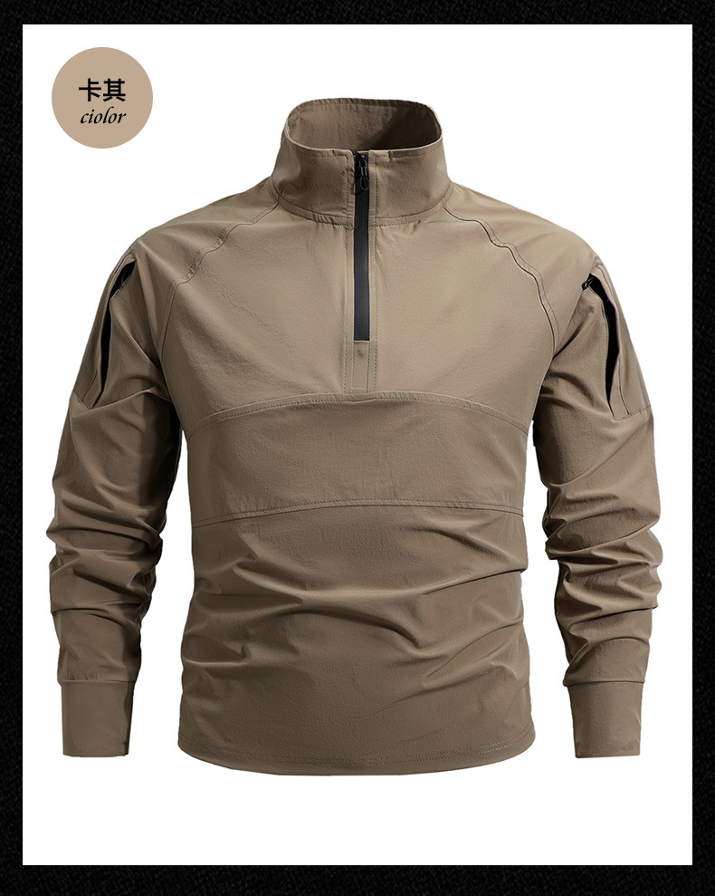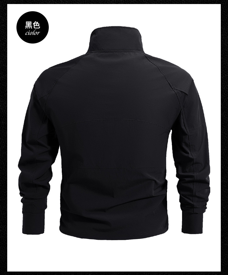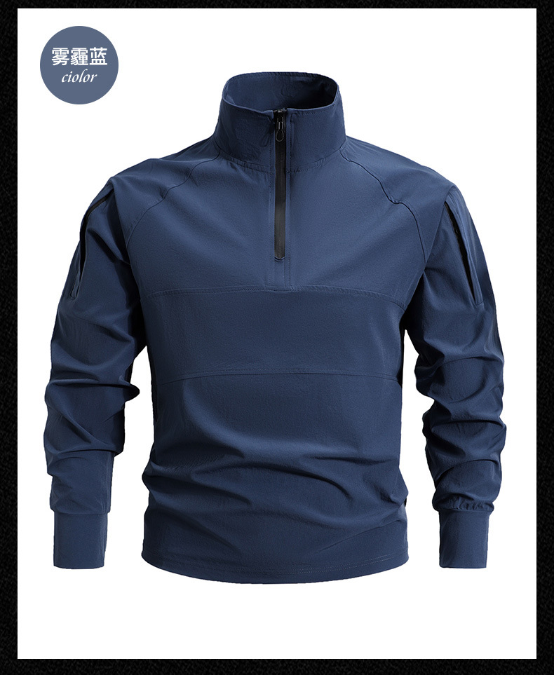 봄과 가을 새로운 야외 레저 스포츠 스탠드 칼라 긴팔 스웨터 아이스 실크 탄성 빠른 건조 남성 지퍼 포켓 티셔츠