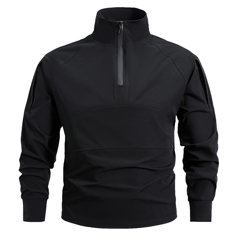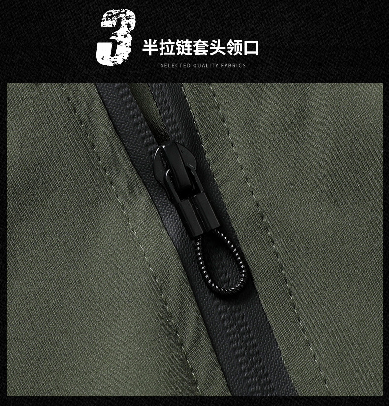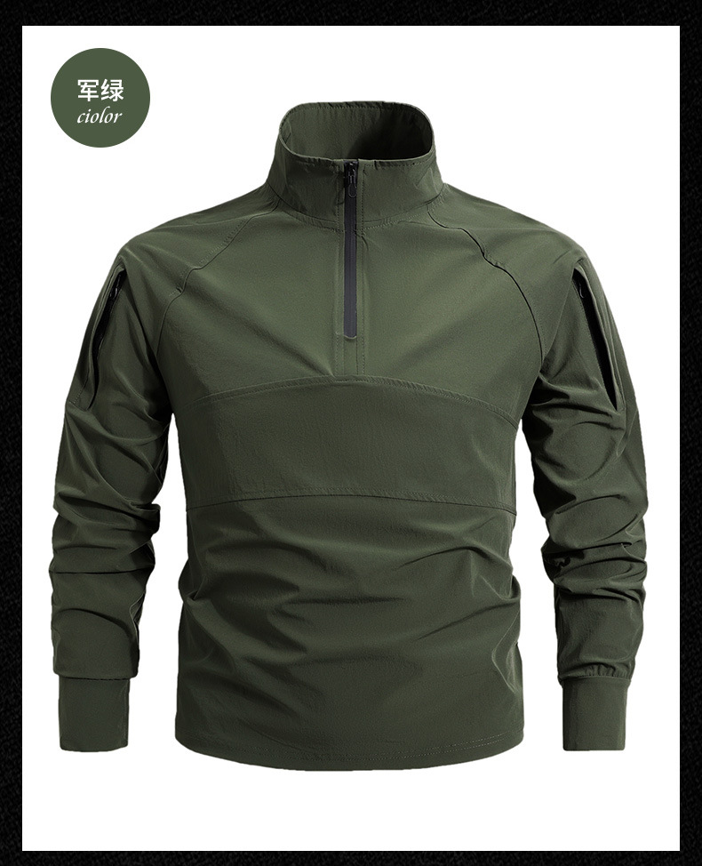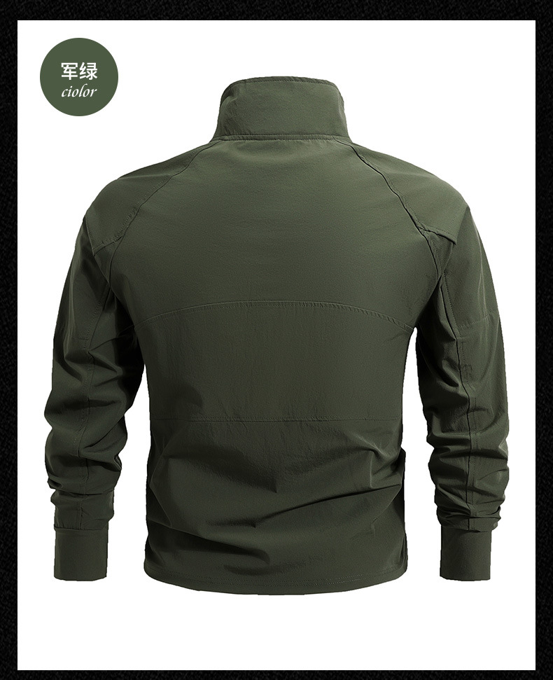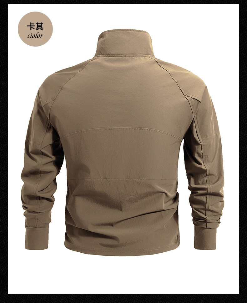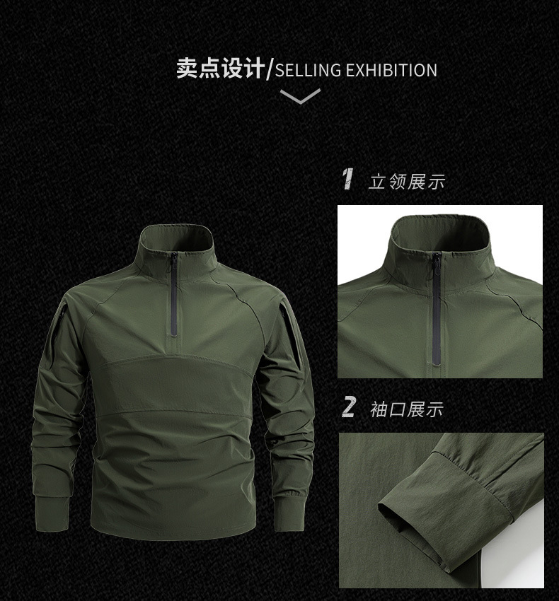 봄과 가을 새로운 야외 레저 스포츠 스탠드 칼라 긴팔 스웨터 아이스 실크 탄성 빠른 건조 남성 지퍼 포켓 티셔츠