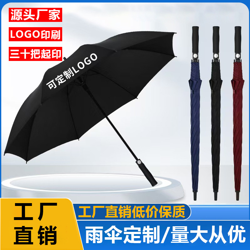 골프 우산 제조 업체 도매 인쇄 가능한 로고 섬유 증가 두꺼운 자동 스트레이트 로드 비즈니스 우산 광고 우산스토어 가기