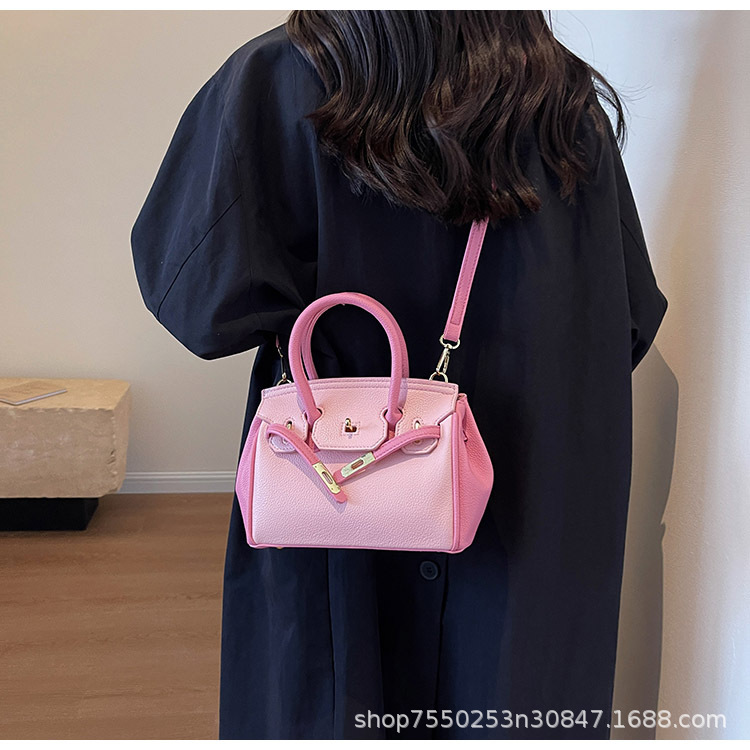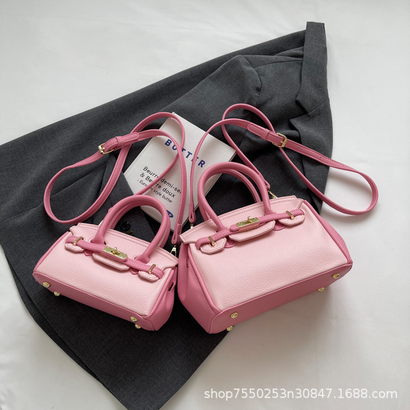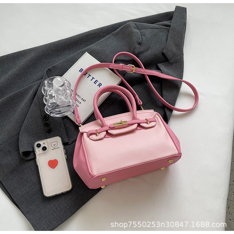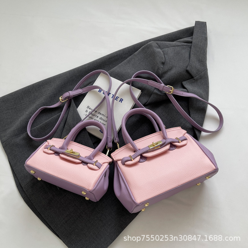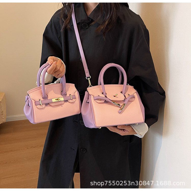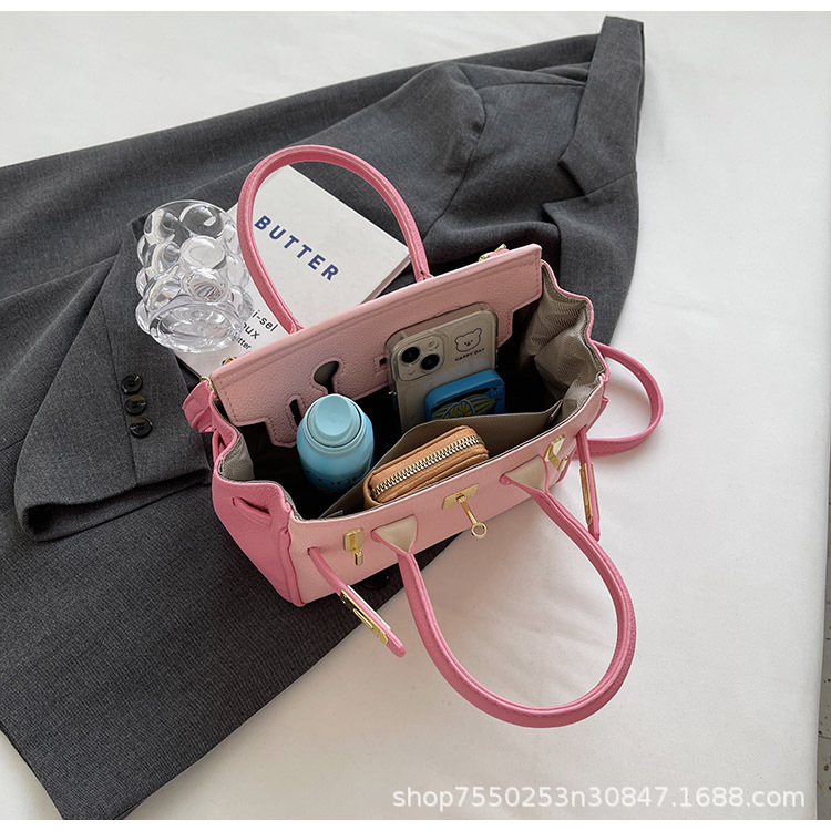 하이 엔드 컬러 콘트라스트 휴대용 플래티넘 작은 스퀘어 가방 여자 2024 여름 새로운 올 매치 통근 어깨 크로스 바디 켈리 백