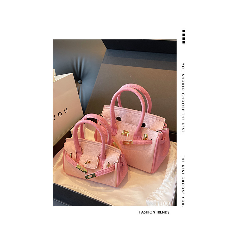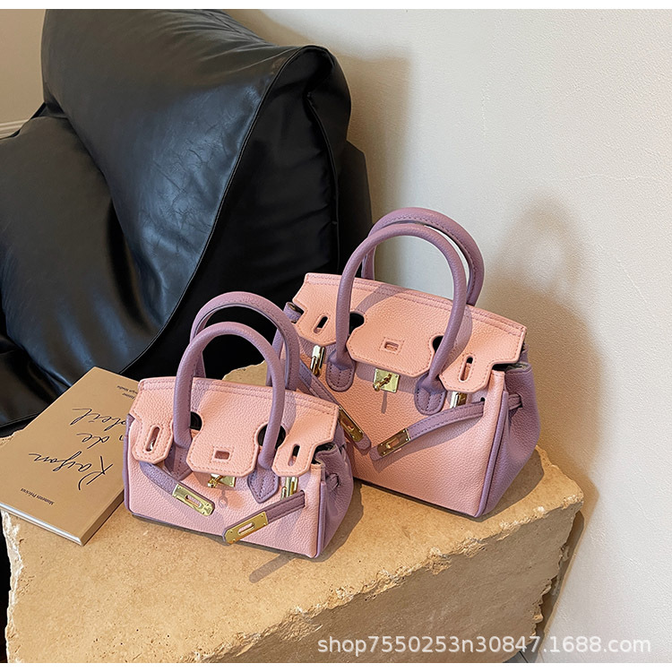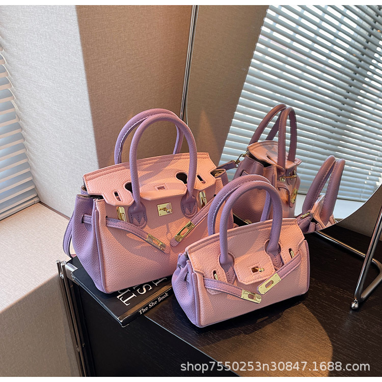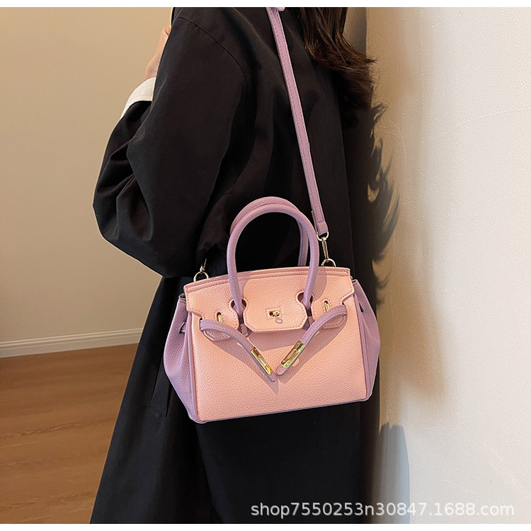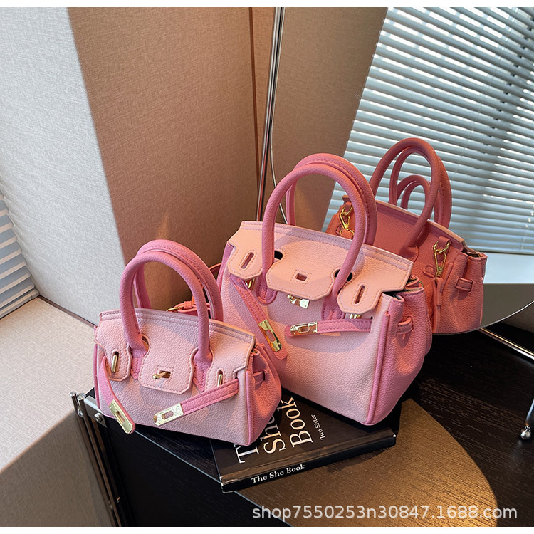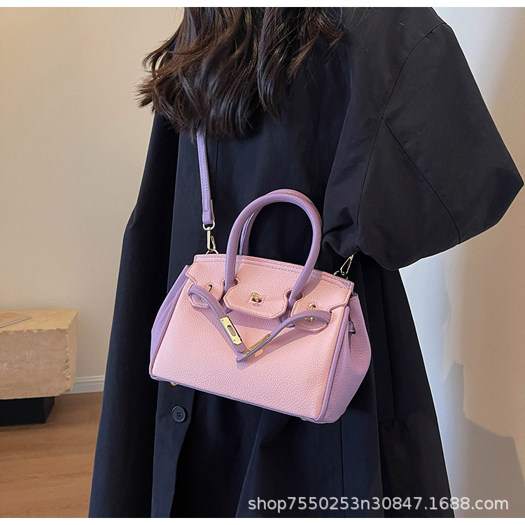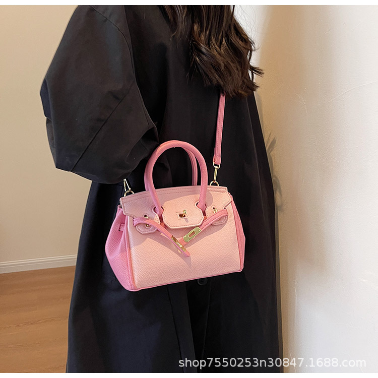 하이 엔드 컬러 콘트라스트 휴대용 플래티넘 작은 스퀘어 가방 여자 2024 여름 새로운 올 매치 통근 어깨 크로스 바디 켈리 백