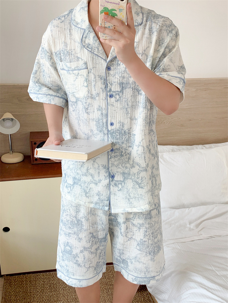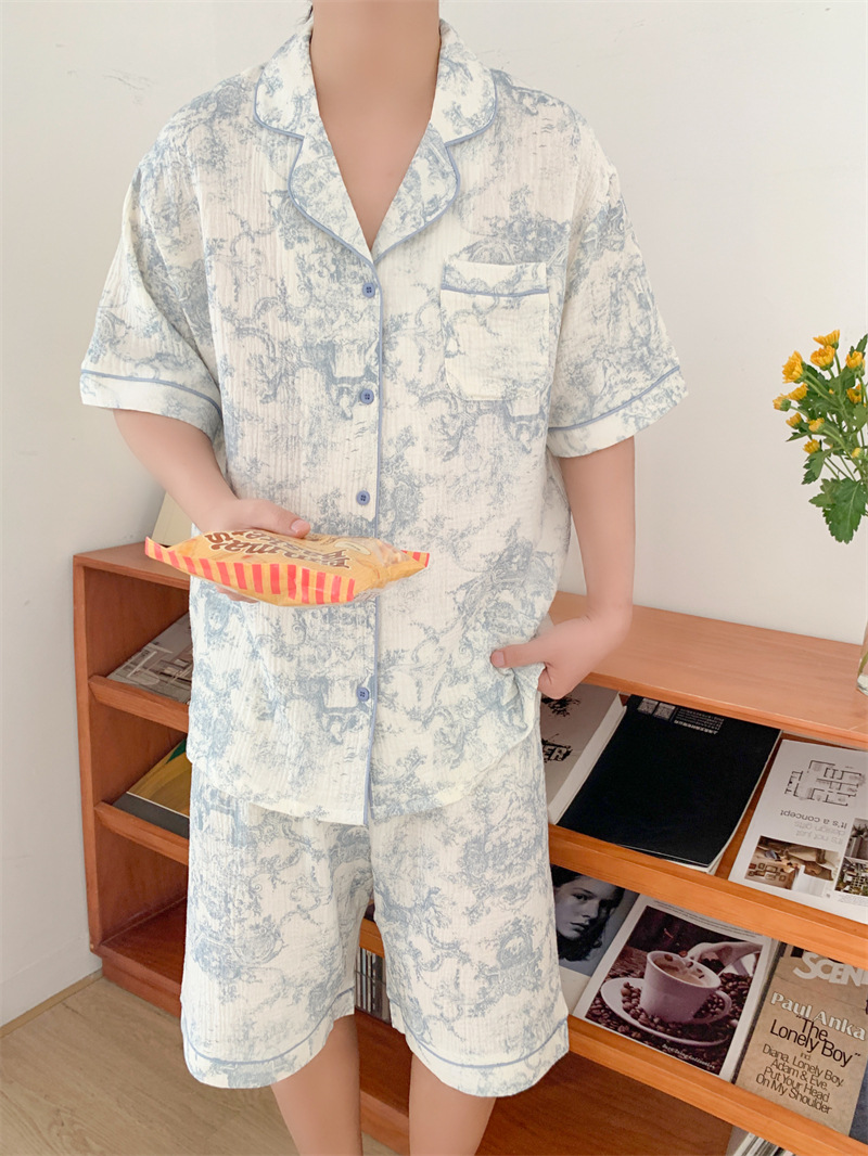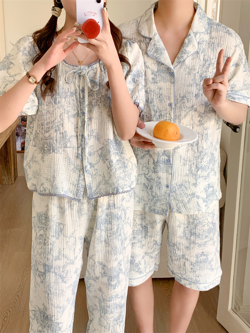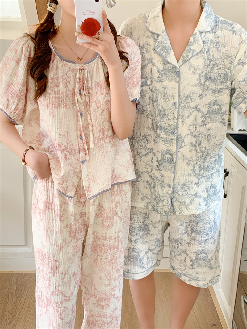 리얼 샷 2025 여름 새로운 캐주얼 느슨한 연인은 여성 한국 남성 홈 의류 도매 대외 무역을 착용