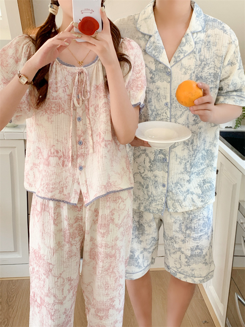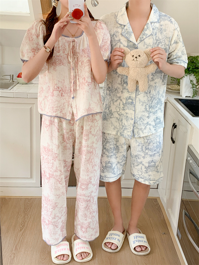 리얼 샷 2025 여름 새로운 캐주얼 느슨한 연인은 여성 한국 남성 홈 의류 도매 대외 무역을 착용스토어 가기