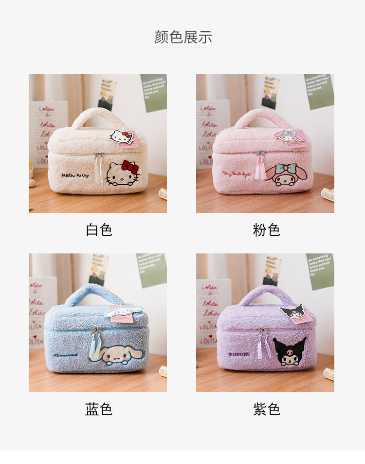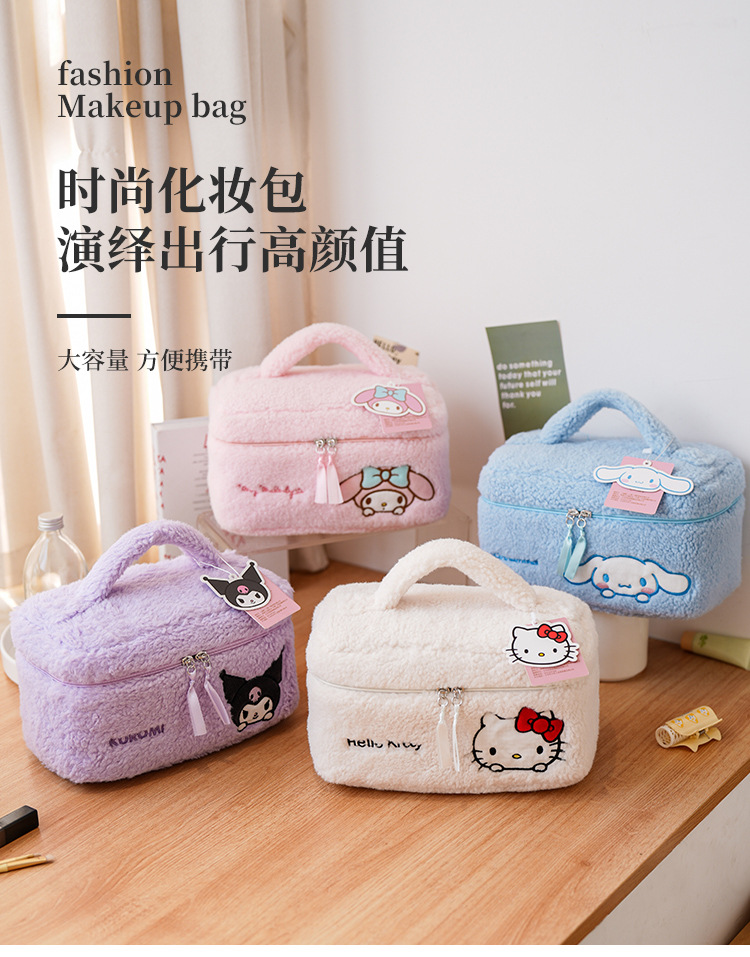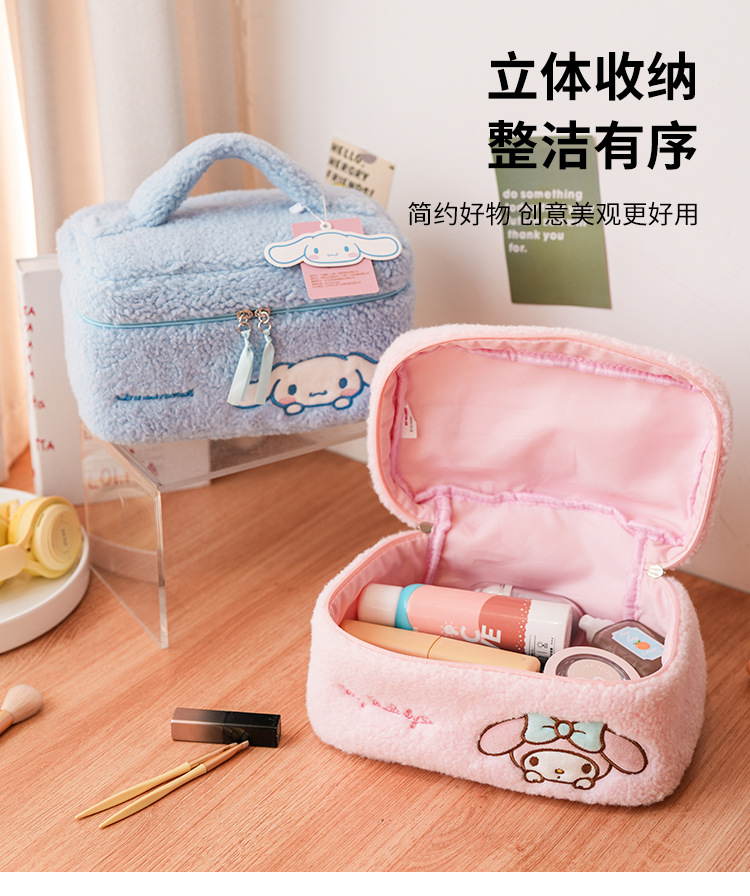 산리오 테디 벨벳 자수 화장품 가방 만화 대용량 가을 겨울 플러시 수납 가방 플러시 화장품 가방스토어 가기