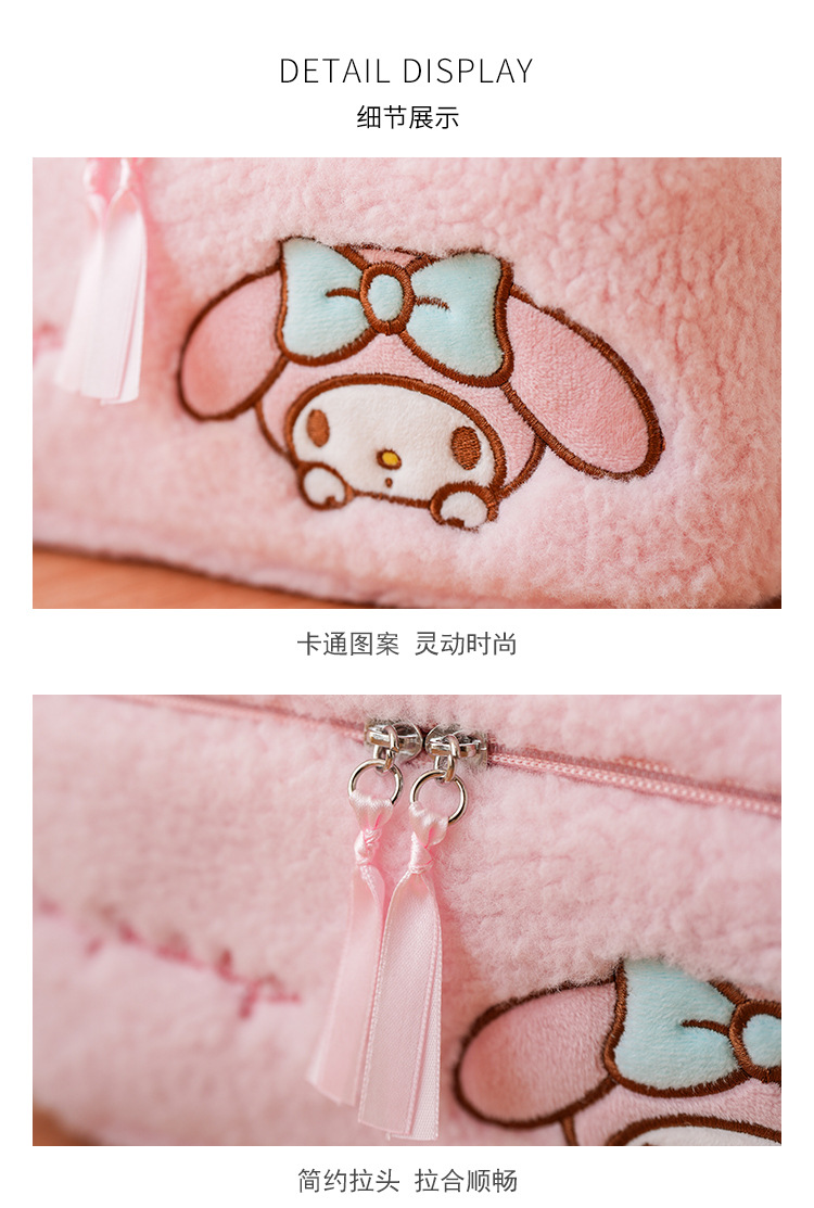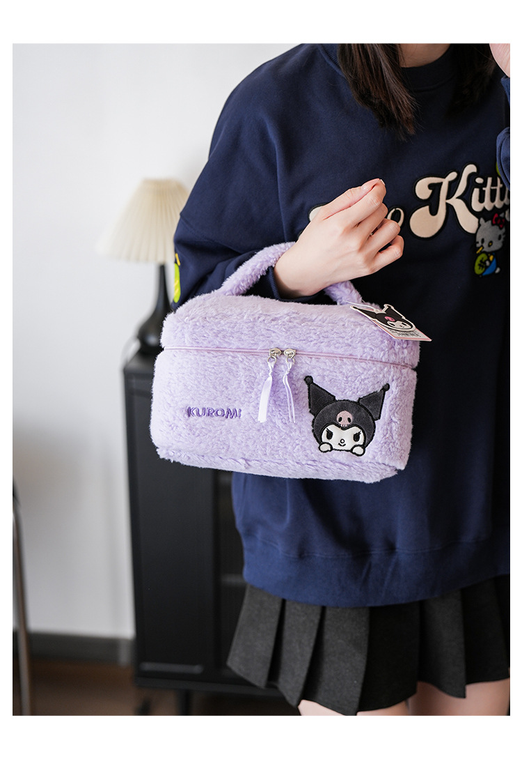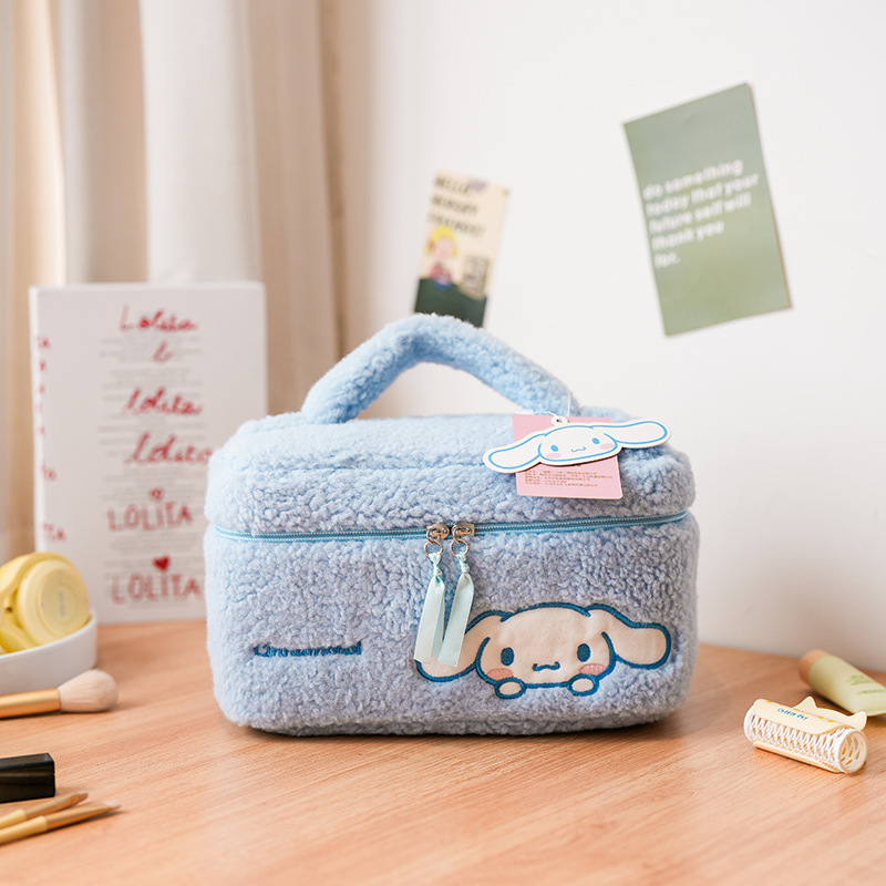 산리오 테디 벨벳 자수 화장품 가방 만화 대용량 가을 겨울 플러시 수납 가방 플러시 화장품 가방