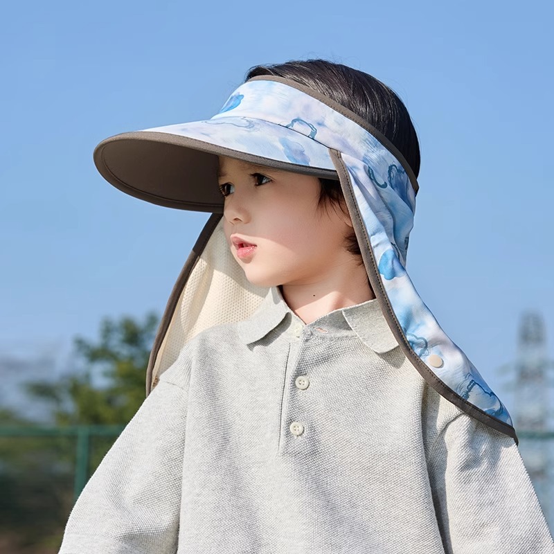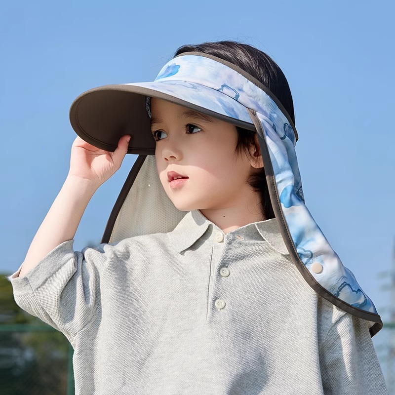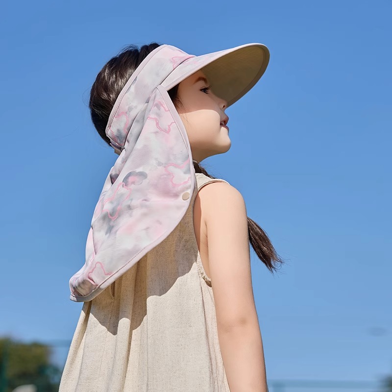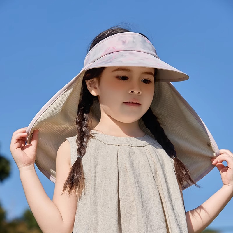 어린이 빈 탑 선 스크린 모자 소년 여름 안티-UV 빅 햇 브림 햇빛 목도리 목 보호 태양 모자 소녀