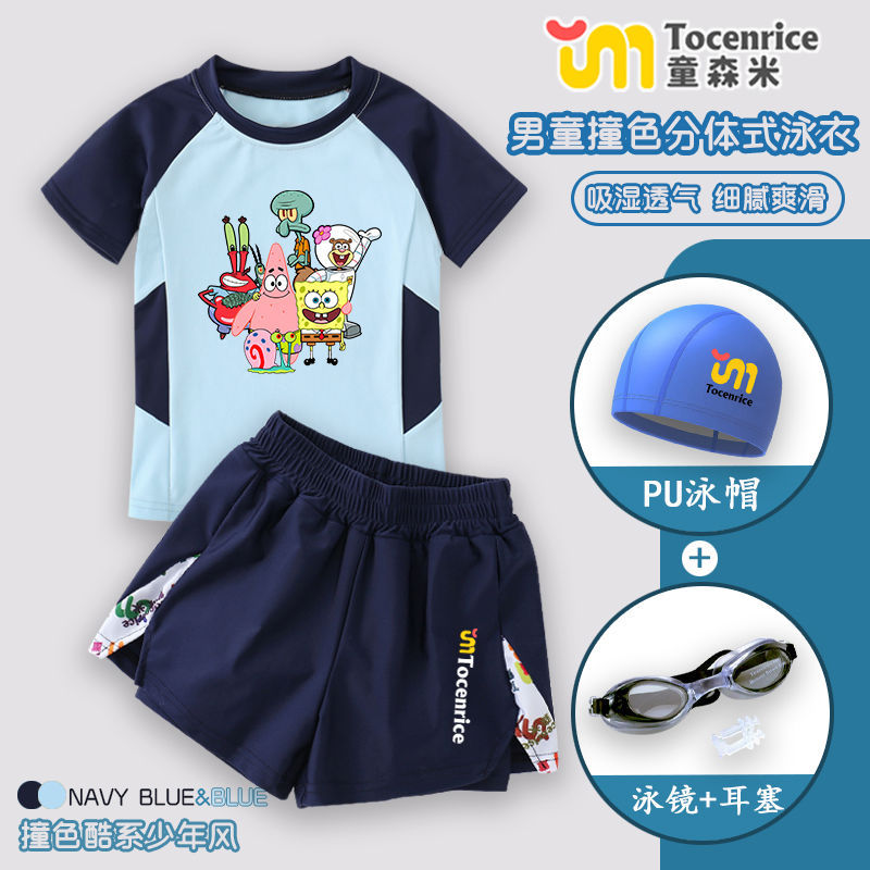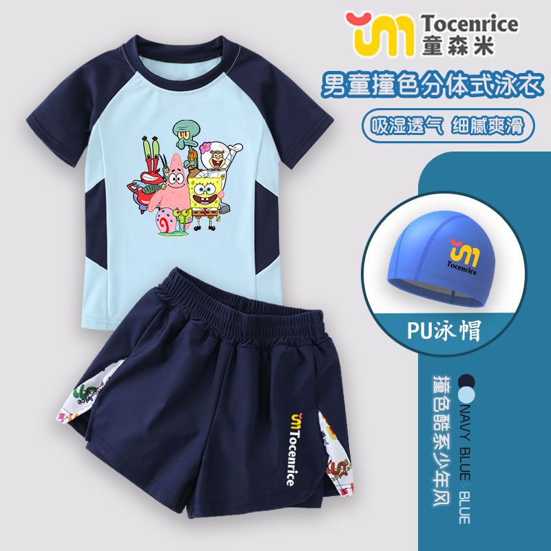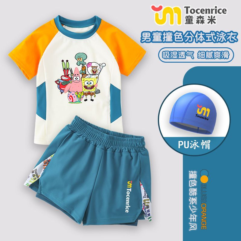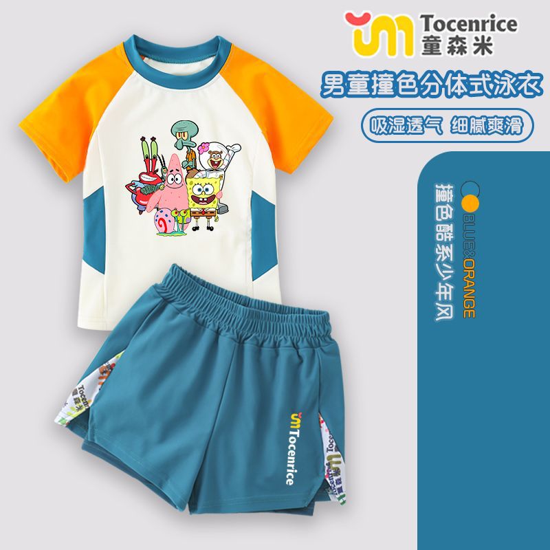 스폰지 밥 아기 어린이 수영복 소년 분할 큰 아이 아기 빠른 건조 소년 수영복 수영복 세트